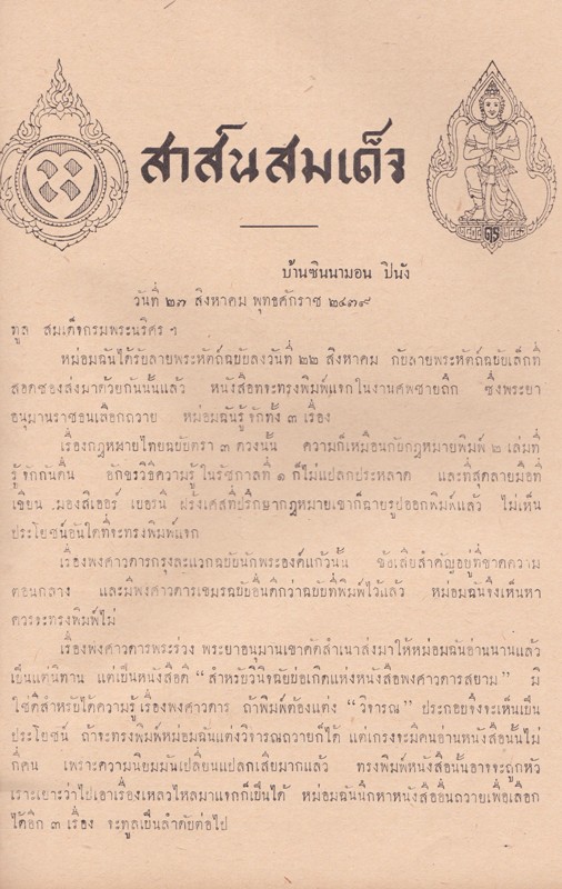 - ภายในเล่มเป็นเรื่องของ สุภาษิตานุสรณ์ สาส์นสมเด็จ สมเด็จเจ้าฟ้ากรมพระยานริศรฯ กับสมเด็จกรมพระยาดำรงฯ สุริยพันธุ์ นิทานเรื่องสุริยันจันทรา จินตนาการของสุนทรภู่ คำสวรสมุทร