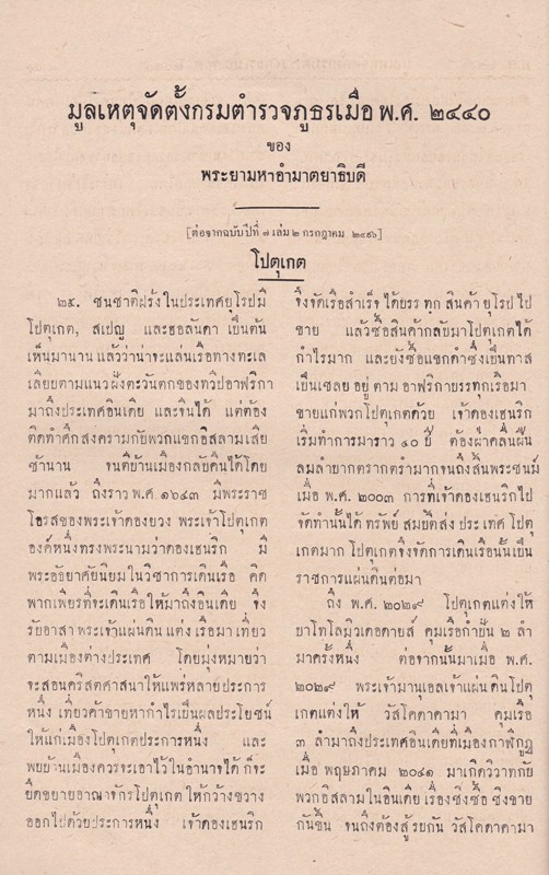 ศิลปสงเคราะห์ มูลเหตุจัดตั้งกรมตำรวจภูธรเมื่อ พ.ศ. 2440