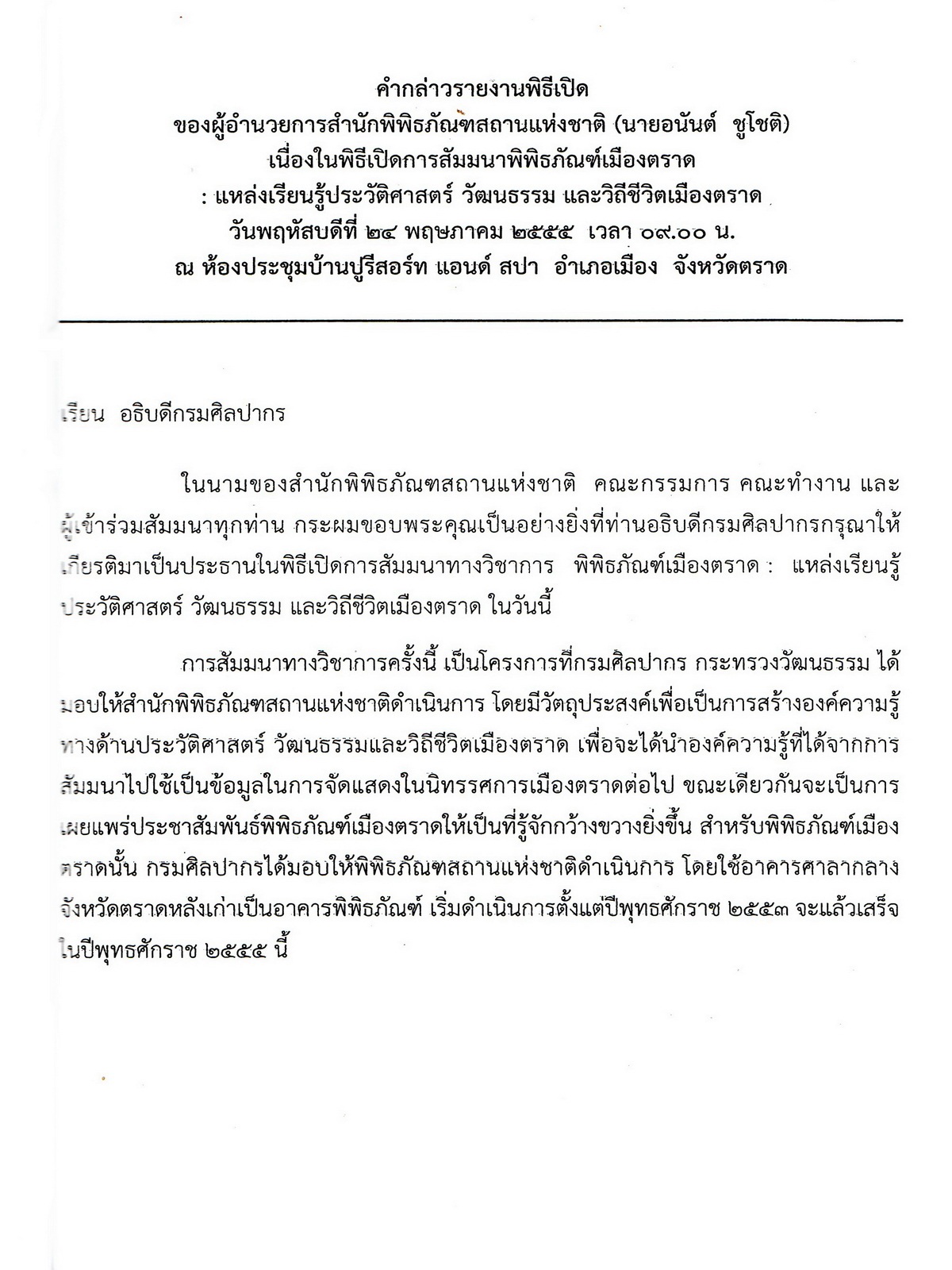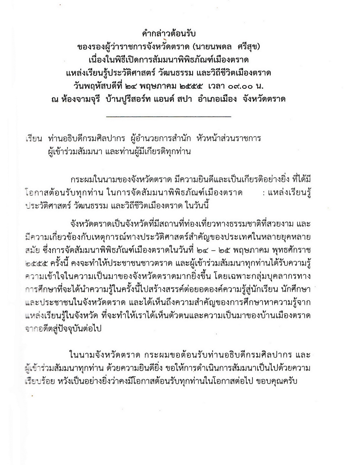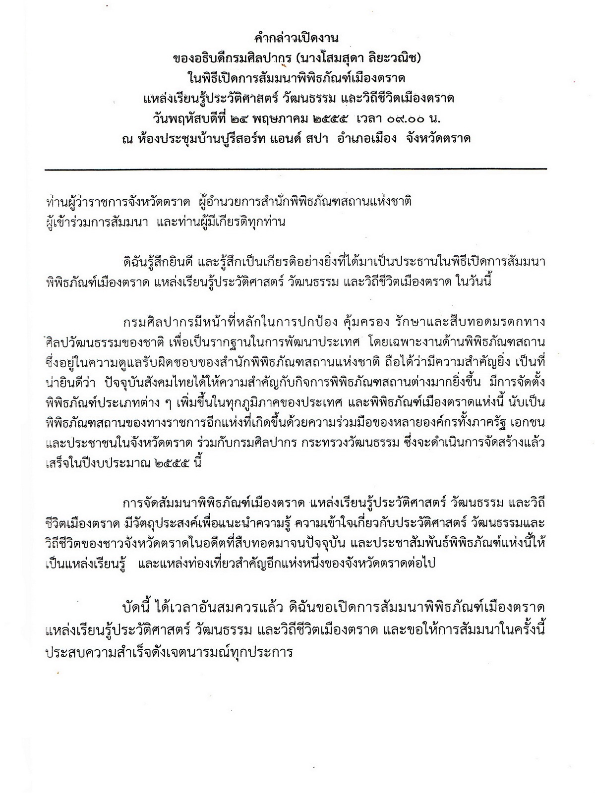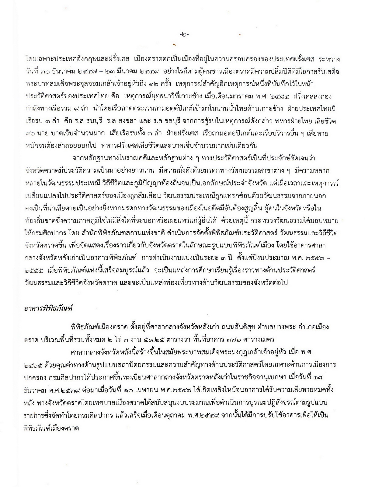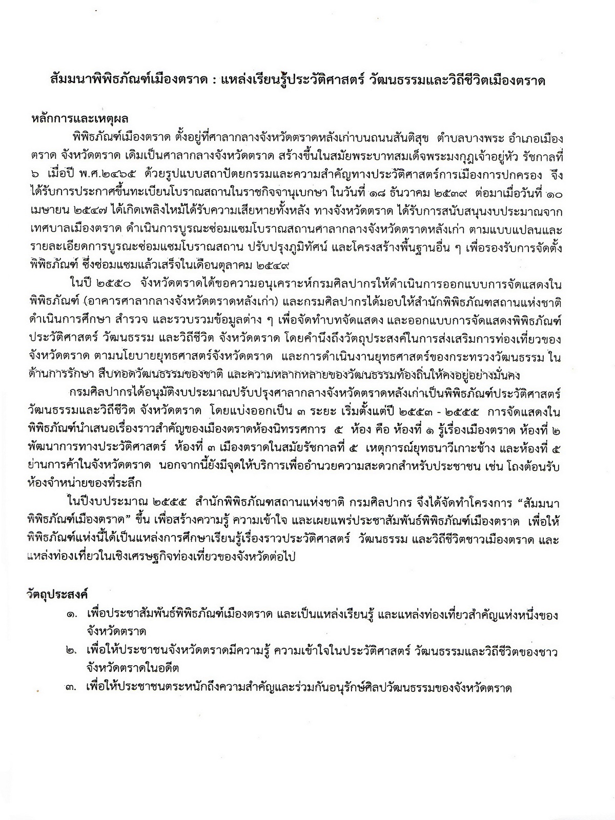 เอกสารประกอบการสัมมนา พิพิธภัณฑ์เมืองตราด : แหล่งเรียนรู้ประวัติศาสตร์ วัฒนธรรมและวิถีชีวิตเมืองตราด