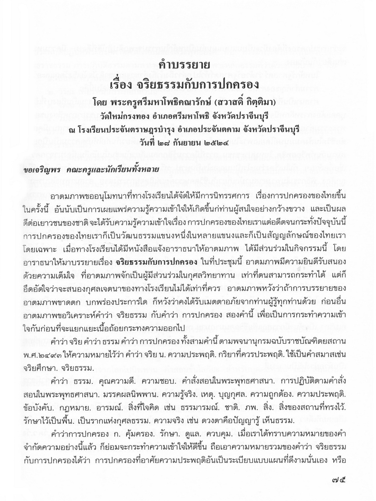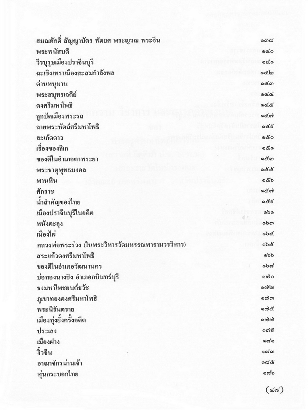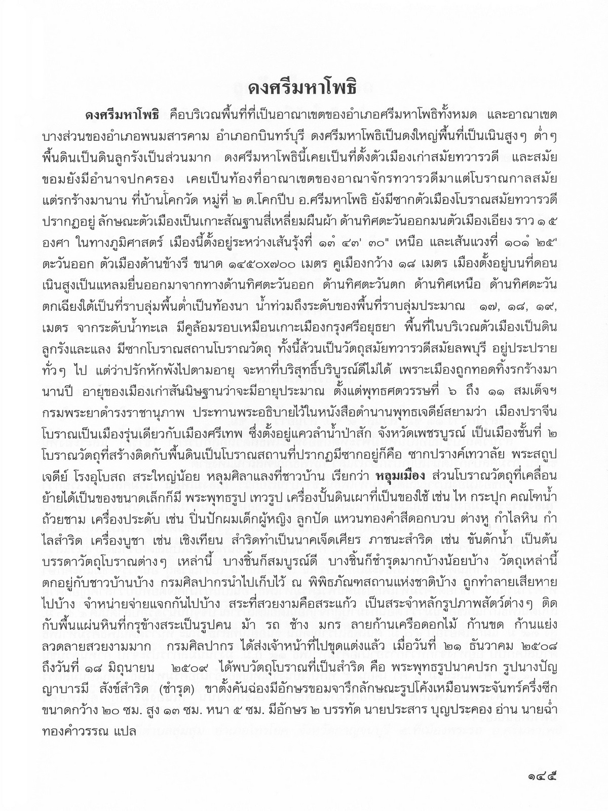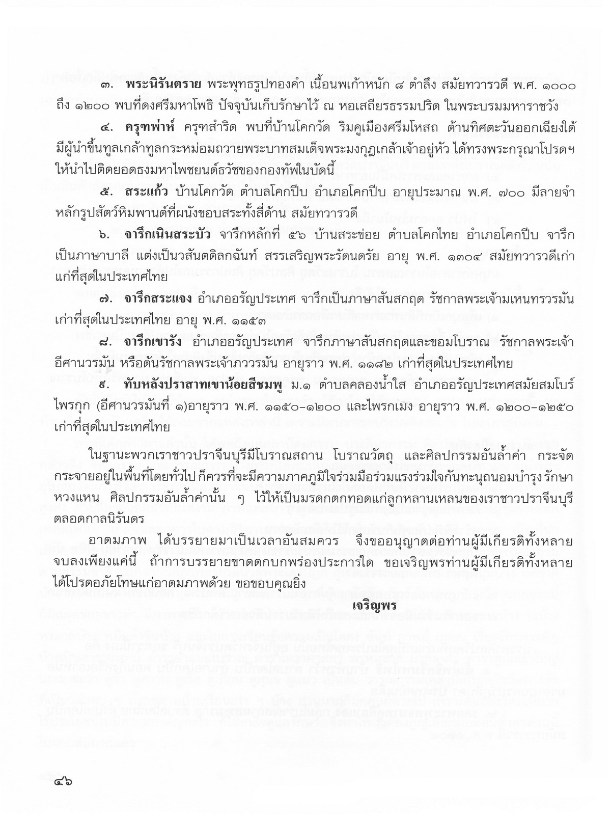 - เป็นหนังสือที่รวบรวมบทความวิชาการและสารคดีท้องถิ่นของพระครูศรีมหาโพธิคณารักษ์(สวาสดิ์ กิต.ติมา) ได้แต่งบทร้องกล่อมเด็กการละเล่นในวันตรุษสงกรานต์ สุภาษิตสอนใจ นเรศวรมหาราชสดุดี พระราชประวัติสมเด็จพระนเรศวรมหาราช คุณค่าของศิลปกรรมในท้องถิ่น ความสำคัญของมรดกไทย และแนวทางการอนุรักษ์ส่งเสริมสนับสนุนและเผยแพร่ของจังหวัดปราจีนบุรี.