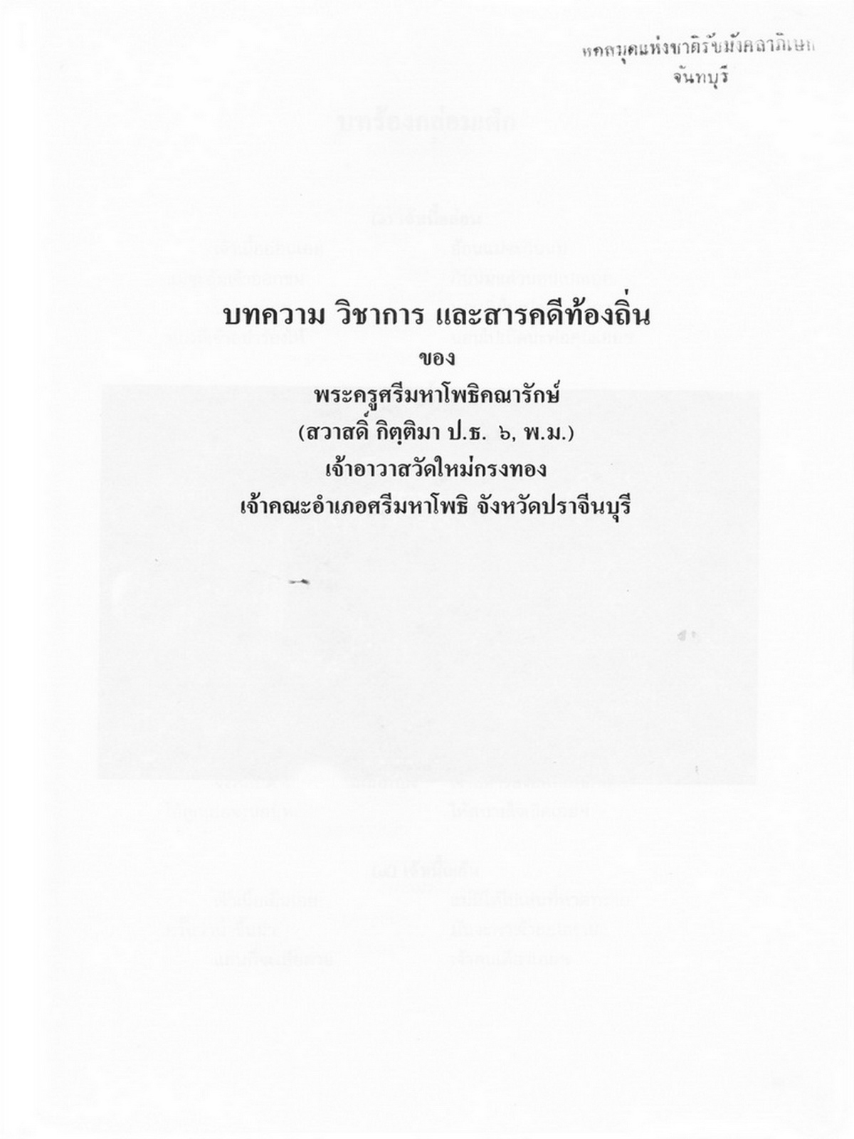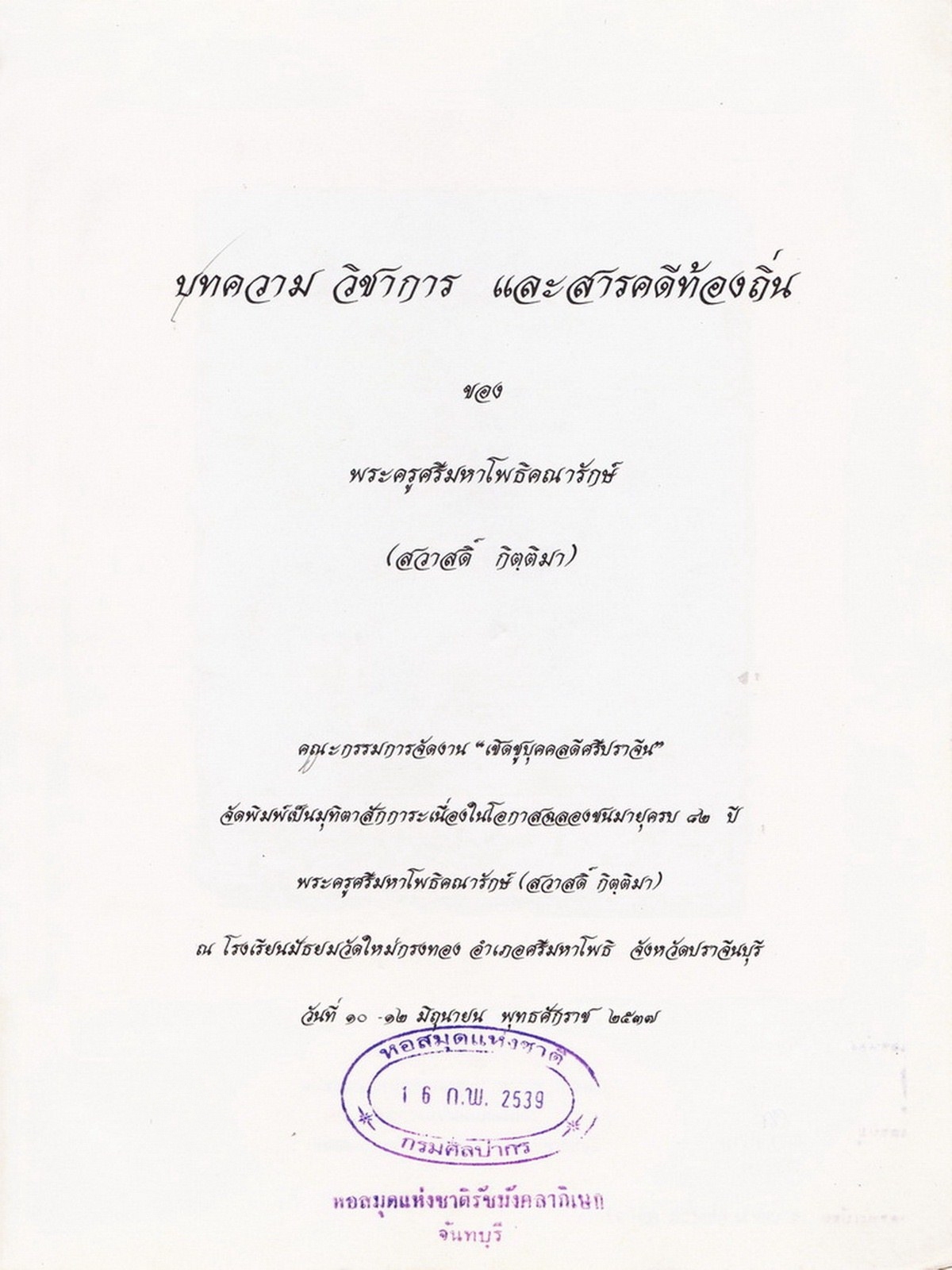 พระครูศรีมหาโพธิคณารักษ์ (สวาสดิ์ กิต.ติมา), “บทความ วิชาการ และสารคดีท้องถิ่น,” D-Library | National Library of Thailand, accessed April 2, 2026, http://164.115.27.97/digital2024/items/show/6217.