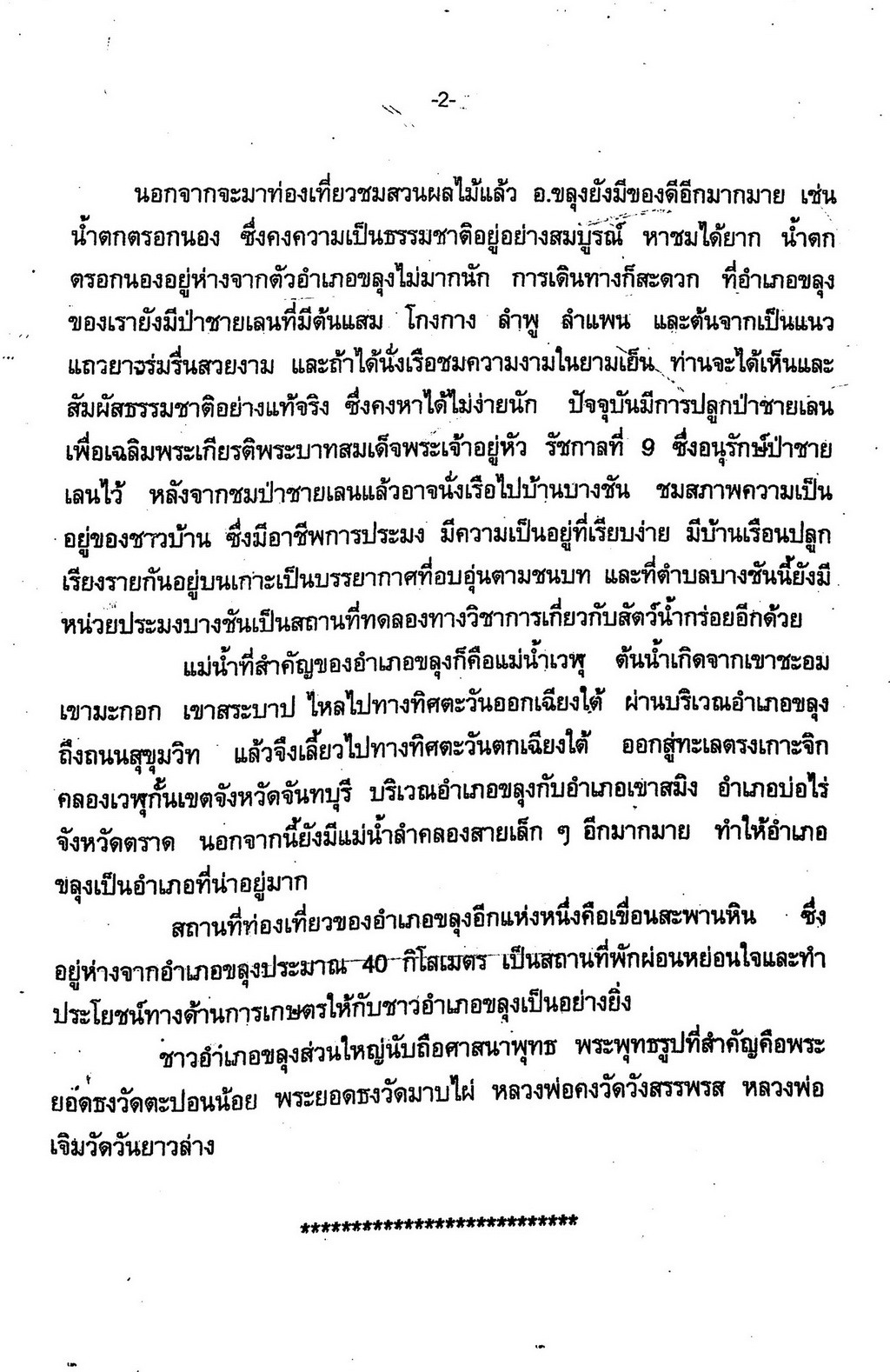 - ให้ข้อมูลในเรื่องต่างๆของอำเภอขลุงได้แก่เล่าเรื่องเมืองขลุง ประวัติผลไม้ทุเรียน ตำนานวัดมรคา(วัดวันยาวบน) หมู่บ้านตะปอนน้อย คานรูด