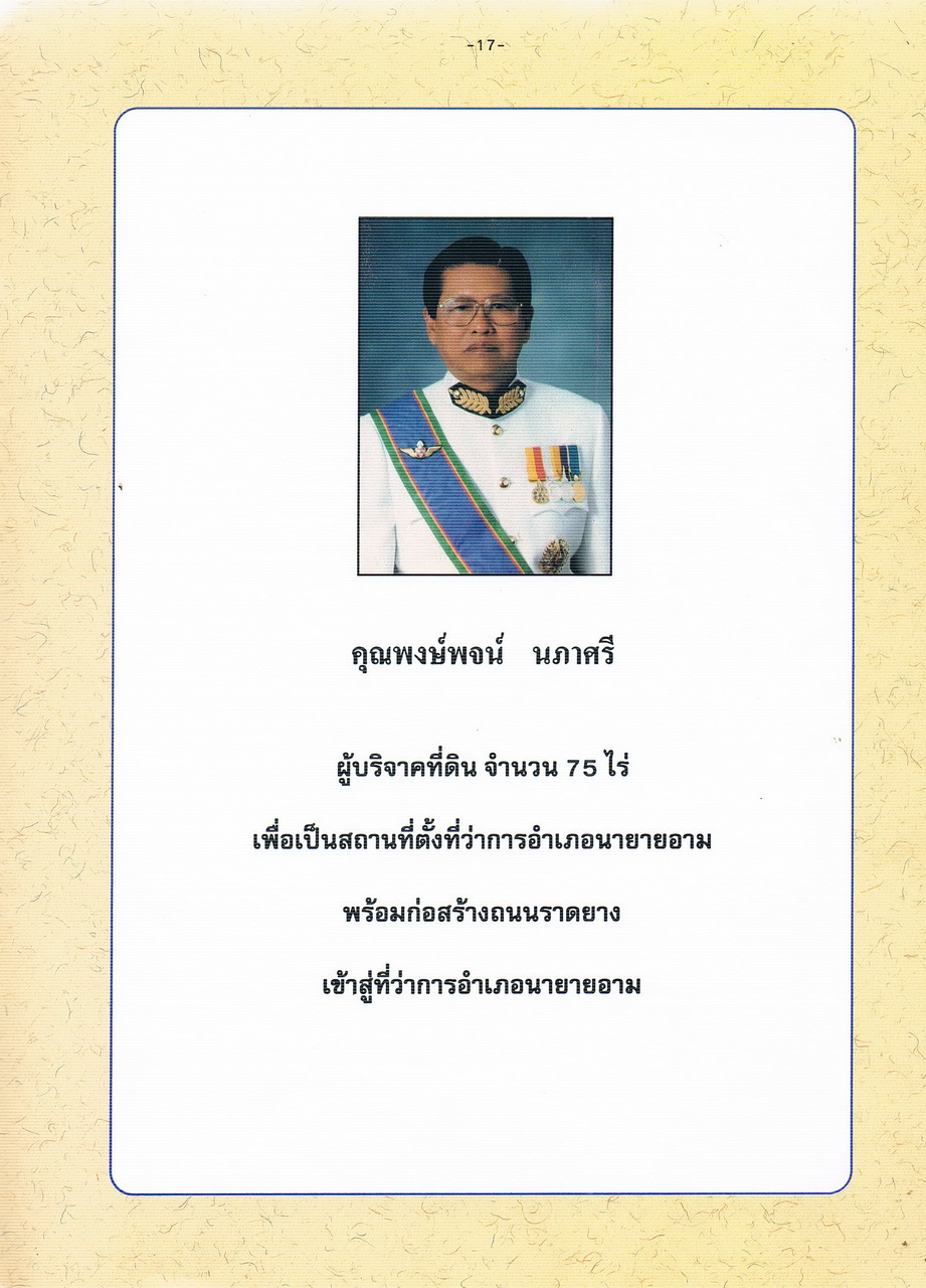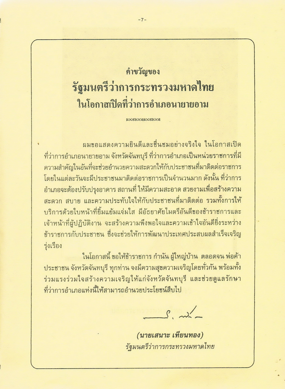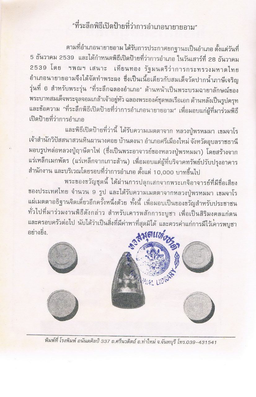 - จัดพิมพ์เป็นที่ระลึกพิธีเปิดที่ว่าการอำเภอนายายอาม 28 ธันวาคม 2539