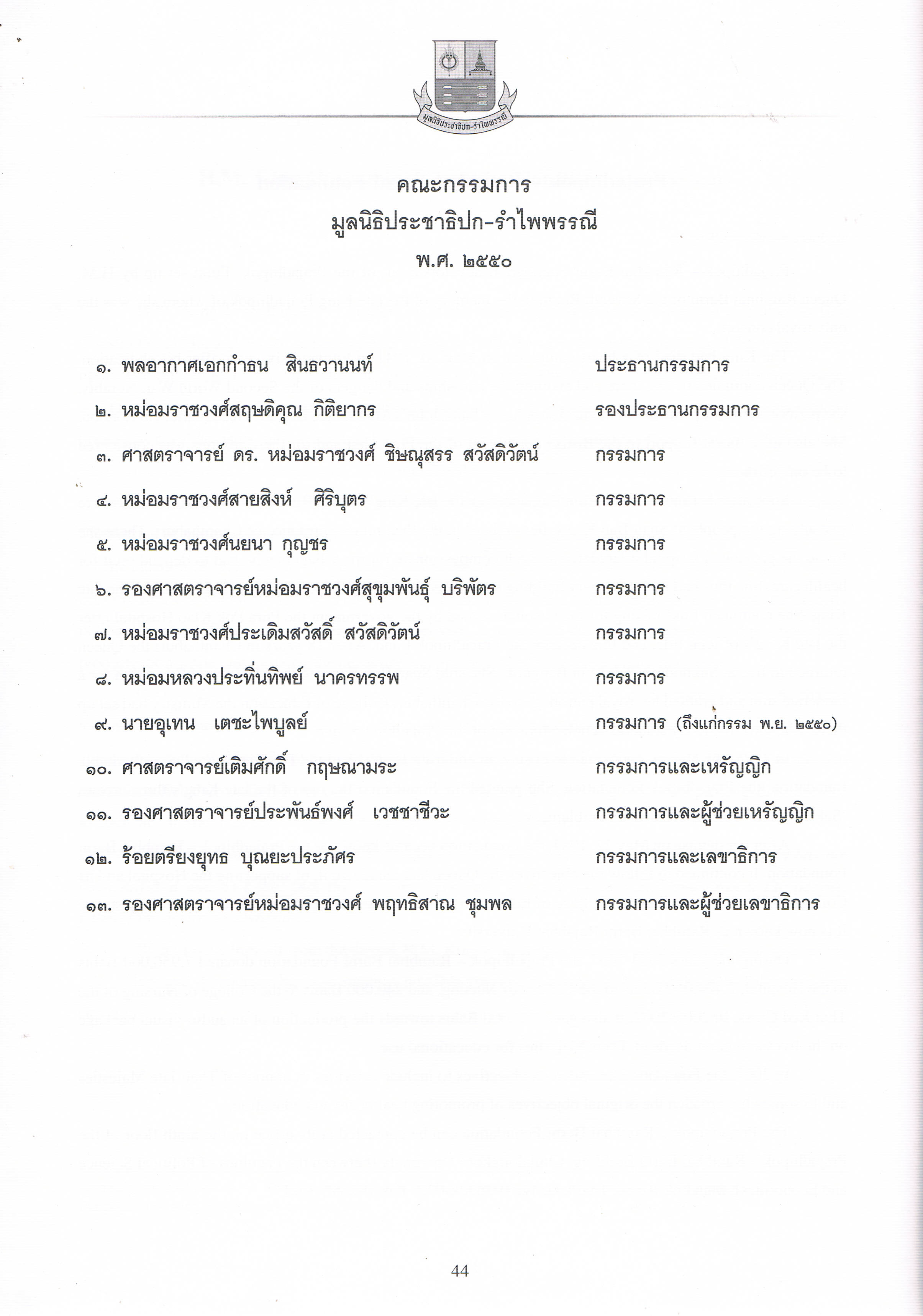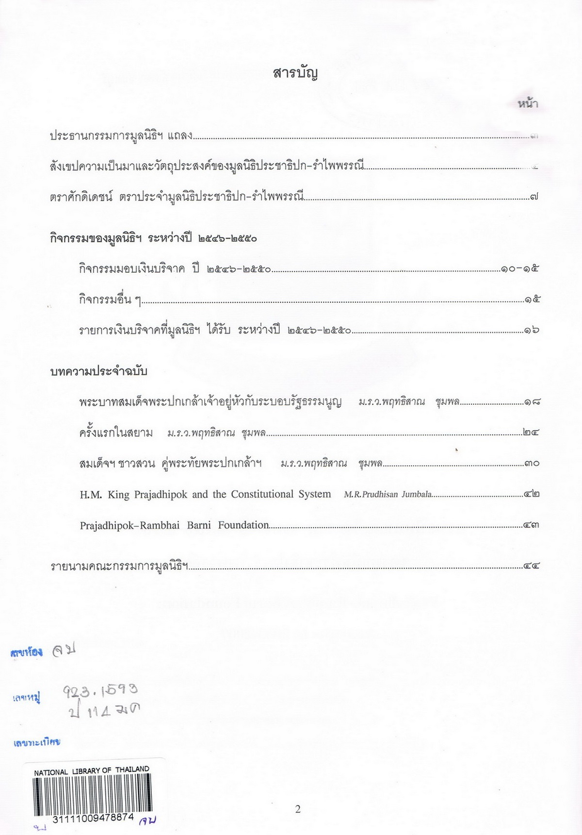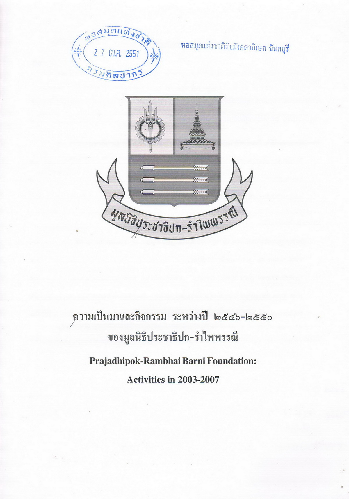มูลนิธิประชาธิปก-รำไพพรรณี, “ความเป็นมาและกิจกรรมระหว่างปี 2546 - 2550 ของมูลนิธิประชาธิปก-รำไพพรรณี,” D-Library | National Library of Thailand, accessed April 2, 2026, http://164.115.27.97/digital2024/items/show/7010.