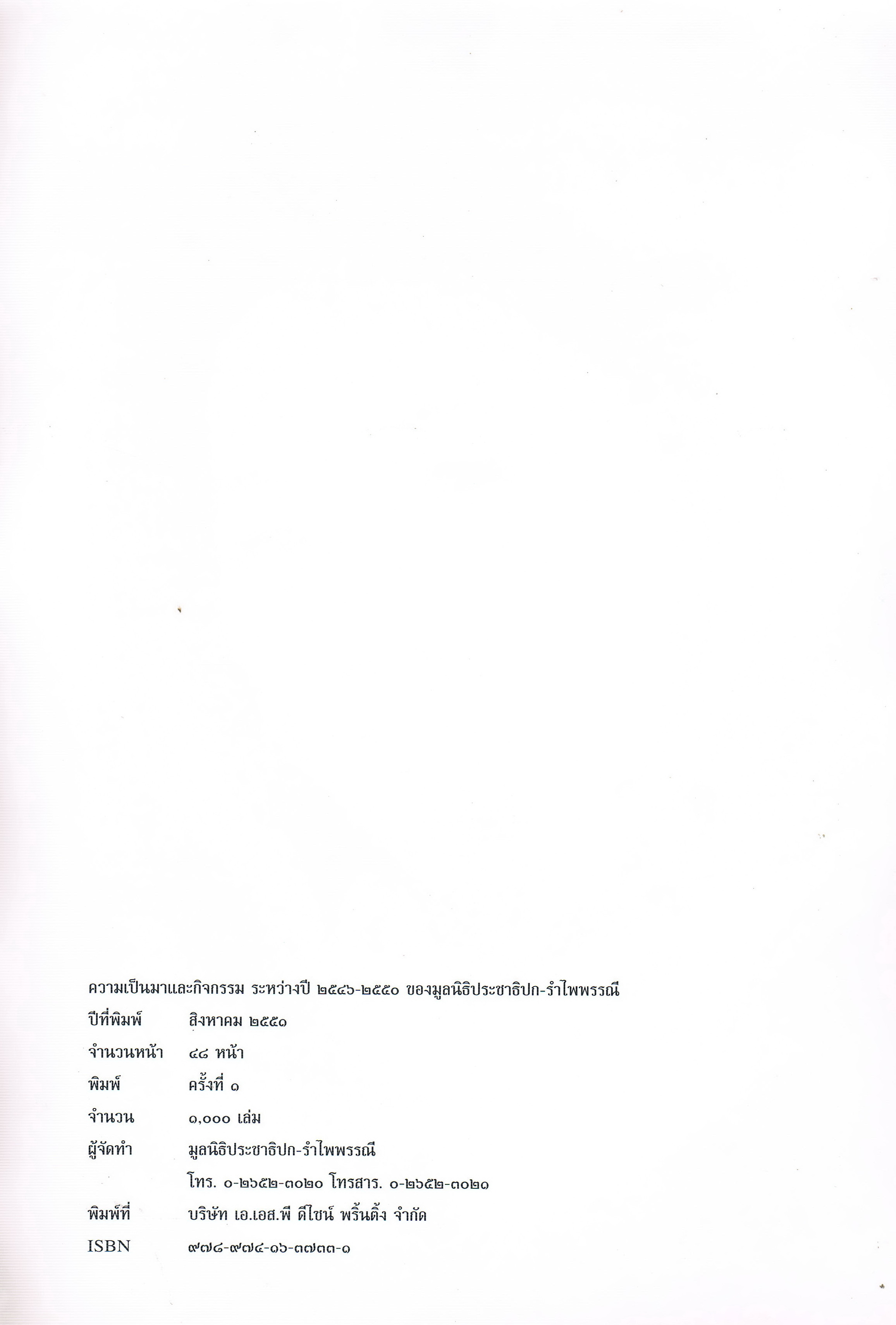 - ความเป็นมาและกิจกรรมระหว่างปี 2546 - 2550 ของมูลนิธิประชาธิปก-รำไพพรรณี