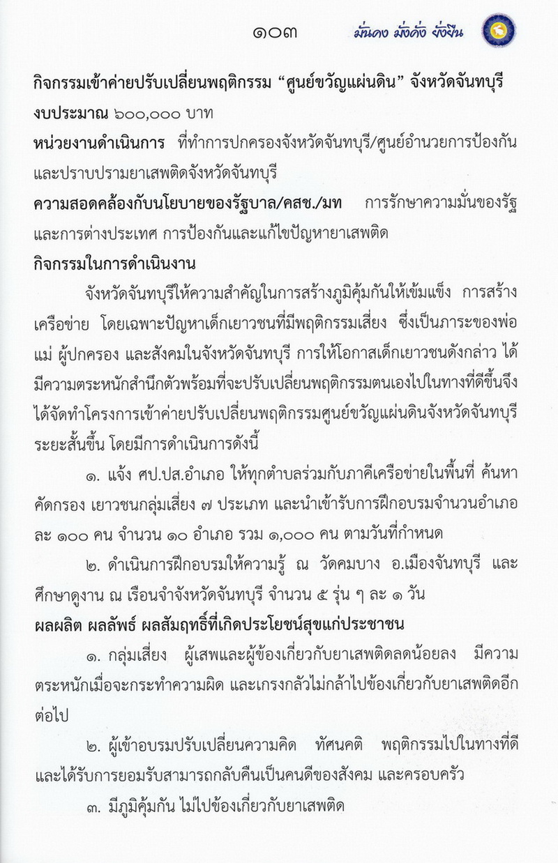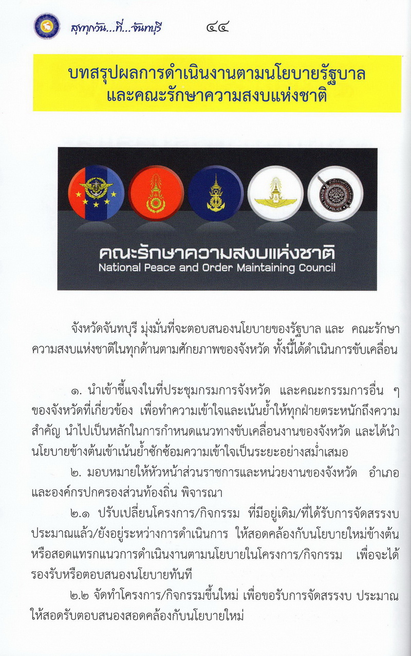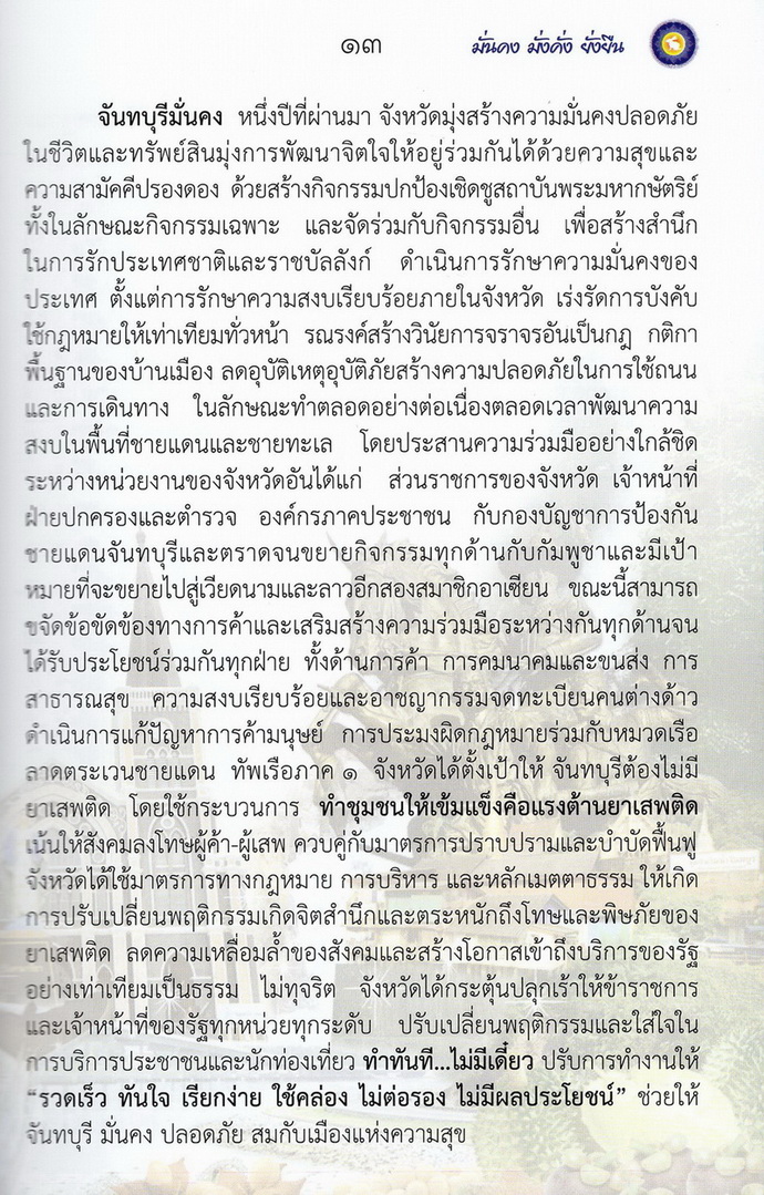 - มั่นคง มั่งคั่ง ยั่งยืน คืนความสุขให้คนในจังหวัดจันทบุรี