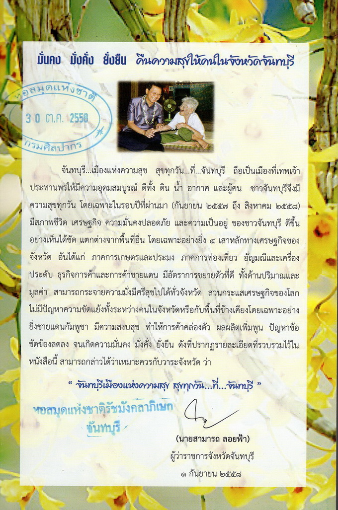 “มั่นคง มั่งคั่ง ยั่งยืน คืนความสุขให้คนในจังหวัดจันทบุรี,” D-Library | National Library of Thailand, accessed April 2, 2026, http://164.115.27.97/digital2024/items/show/7132.