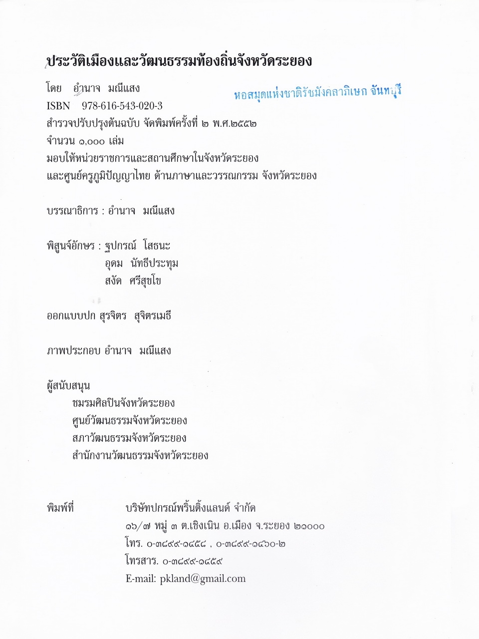อำนาจ มณีแสง, “ประวัติเมืองและวัฒนธรรมท้องถิ่นจังหวัดระยอง,” D-Library | National Library of Thailand, accessed April 2, 2026, http://164.115.27.97/digital2024/items/show/7135.