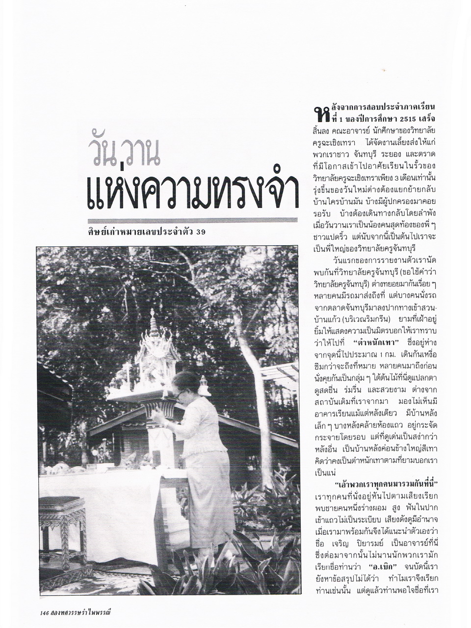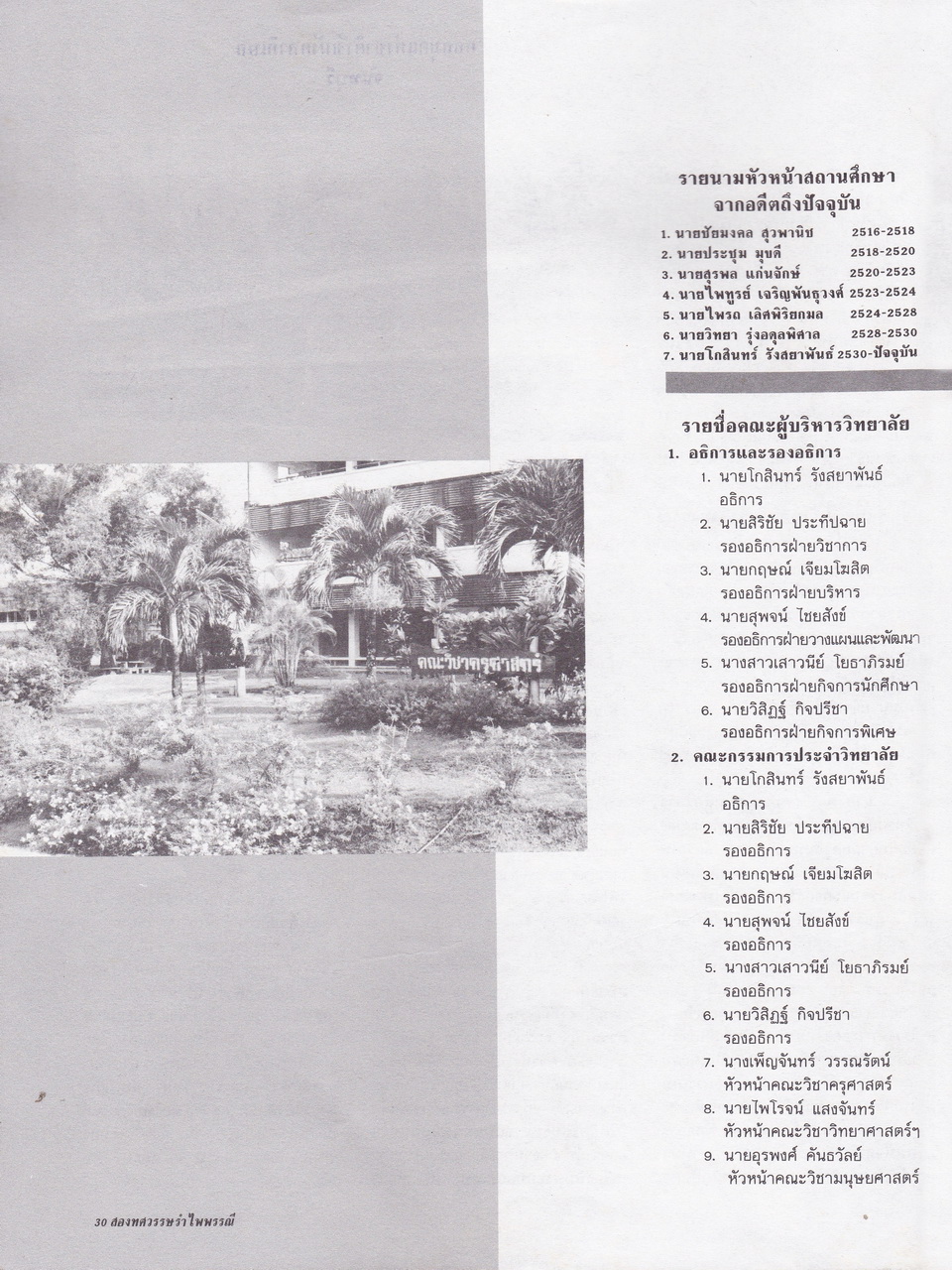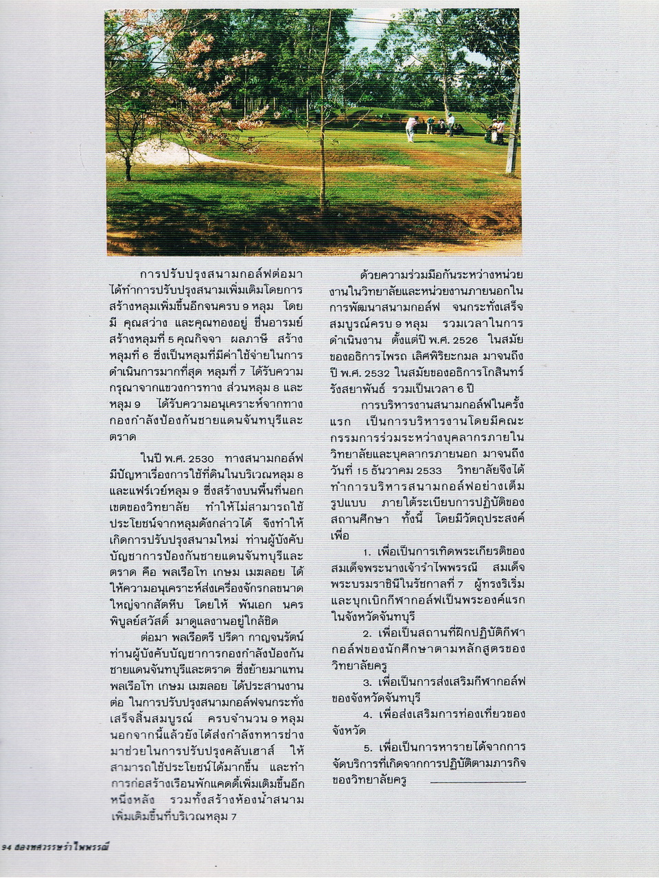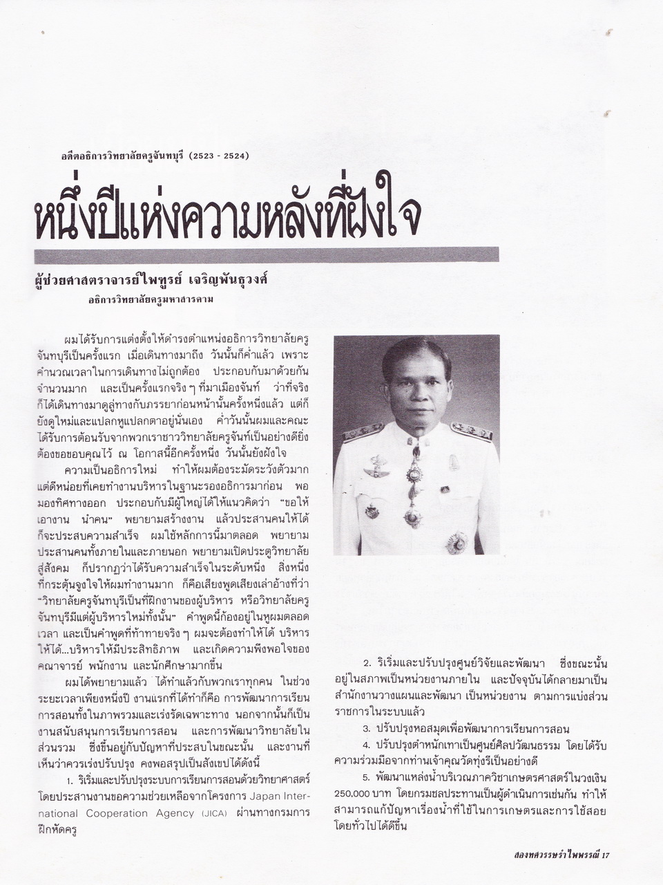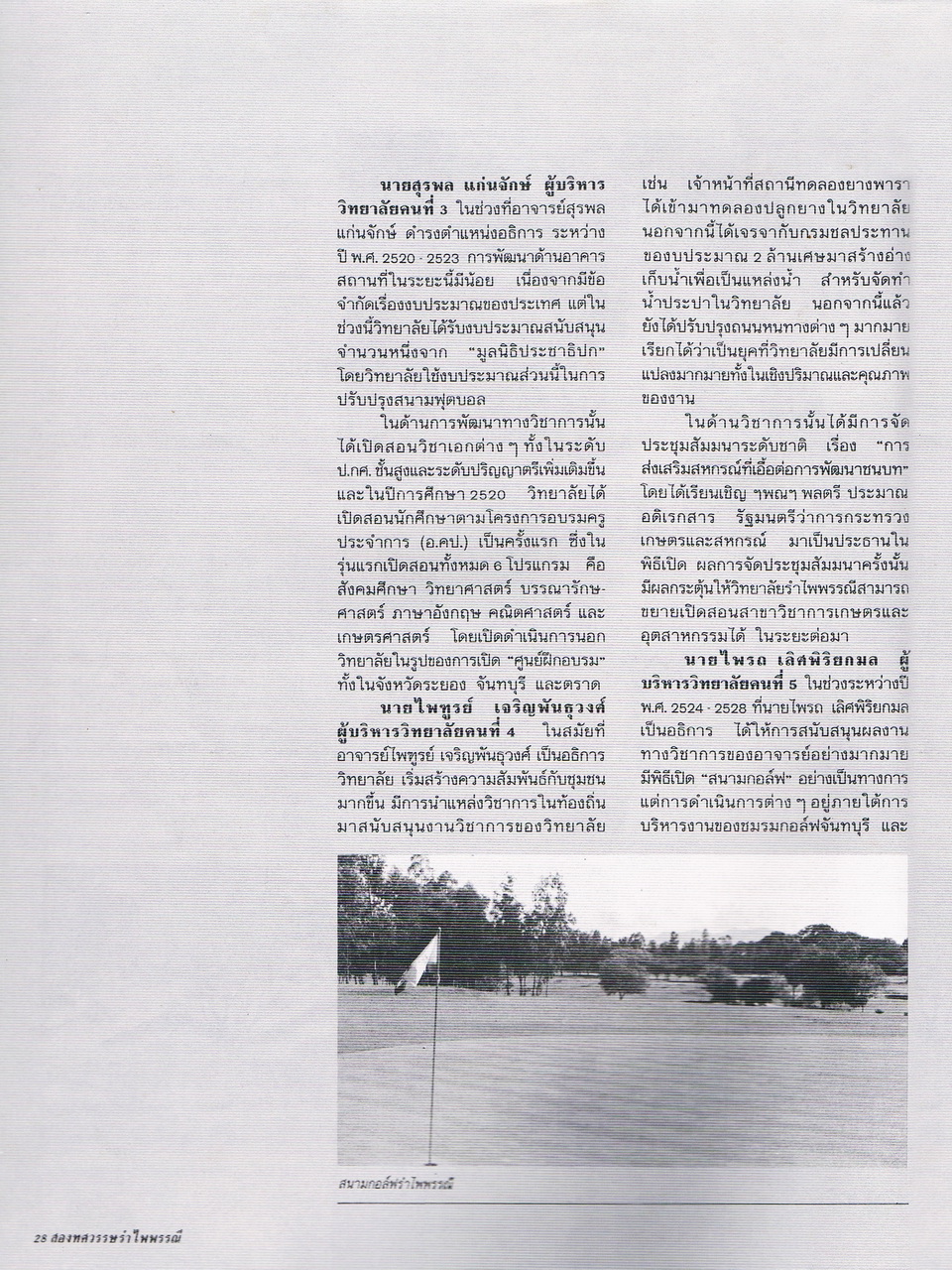 - มีเนื้อหาหลากหลายได้แก่สารจากอธิบดีกรมการฝึกหัดครู จากใจชาวรำไพพรรณี บันทึกของนายชัยมงคล สุวพานิช วิทยาลัยครูจันทบุรี ปีการศึกษา2518-2520 ข้อคิดจากนายสุรพล แก่นจักษ์ หนึ่งปีแห่งความหลังที่ฝั่งใจ เมื่อผมเป็นอธิการบดีรำไพพรรณีคนที่5(2524-2528) ผมมีแต่ความประทับใจอย่างไม่มีวันลืม ประวัติวิทยาลัยรำไพพรรณี หลักสูตรการเรียนการสอน ผลงานทางวิชาการของคณาจารย์วิทยาลัยรำไพพรรณี คณะวิชาเกษตรและอุตสาหกรรม คณะวิทยาศาสตร์ คณะมนุษยศาสตร์และสังคมศาสตร์ คณะวิชาวิทยาการจัดการ คณะวิทยาศาสตร์และเทคโนโลยี ศูนย์ศิลปวัฒนธรรมและศูนย์วัฒนธรรมจังหวัดจันทบุรี งานวิจัยของวิทยาลัยรำไพพรรณี โครงการคุรุทายาท โครงการสนามกอล์ฟรำไพพรรณี โครงการอาคารริมกรีน โครงการศูนย์วิทยบริการ โครงการพัฒนาการเรียนการสอนวิทยาศาสตร์ ทุนมูลนิธิประชาธิปก-รำไพพรรณี มูลนิธิรำไพพรรณี โรงเรียนสาธิตวิทยาลัยรำไพพรรณี หอพัก บัณฑิตกิตติมศักดิ์ สถาบันราชภัฏรำไพพรรณีี นับแต่วันนี้ไปข้างหน้า ก่อนหน้าสถาบันราชภัฏรำไพพรรณี ไม้ดอกไม้ประดับในสวนบ้านแก้ว 20ปีแห่งความหลัง ย้อนอดีต20ปี สมเด็จพระนางเจ้ารำไพพรรณีกับวิทยาลัย วันวานแห่งความทรงจำ ความทรงจำของรุ่นบุกเบิก.