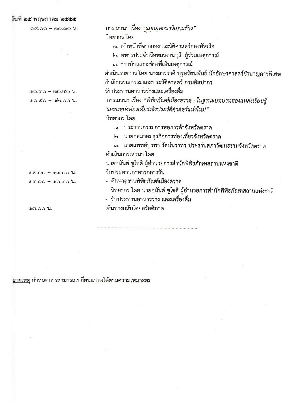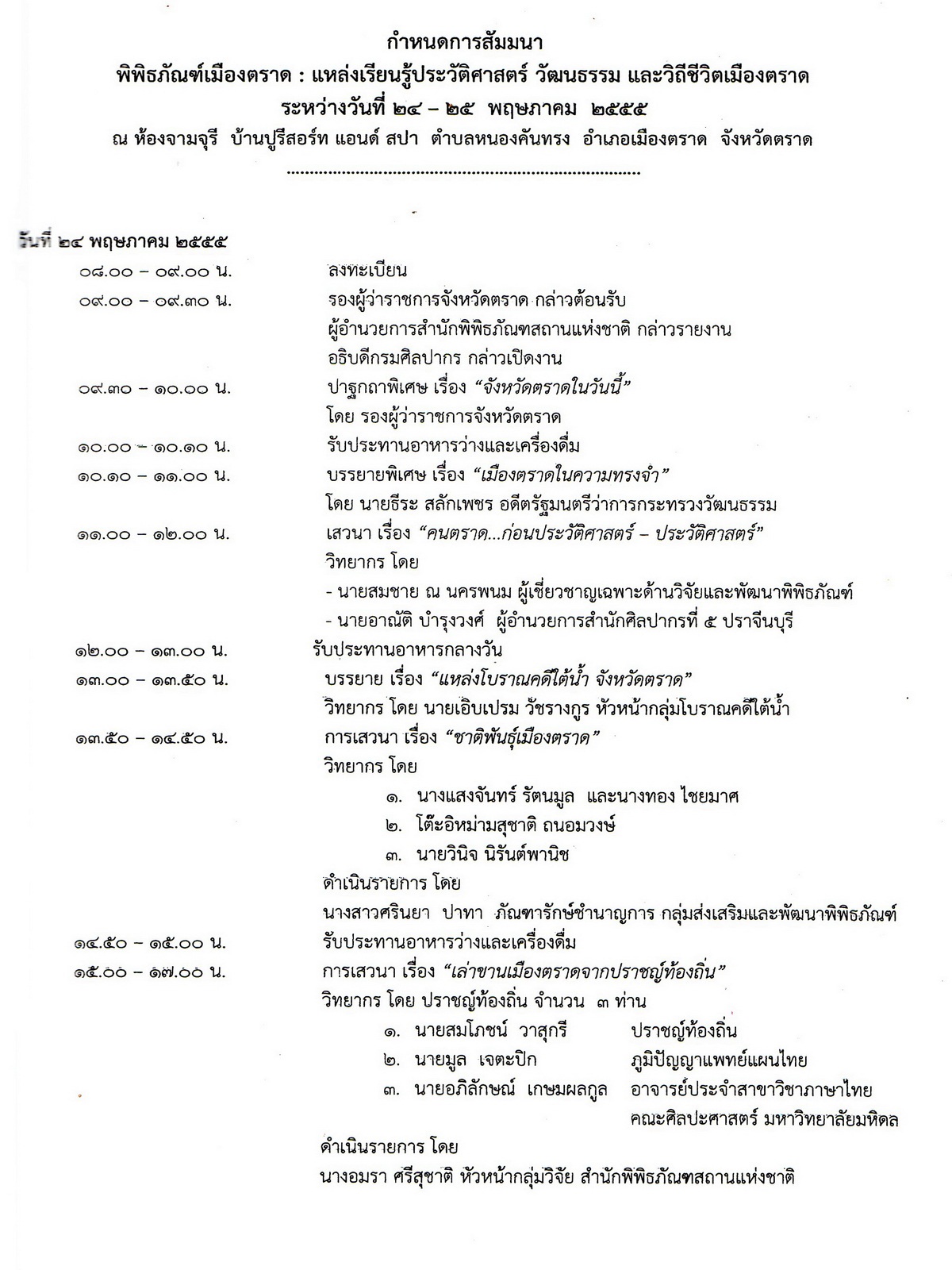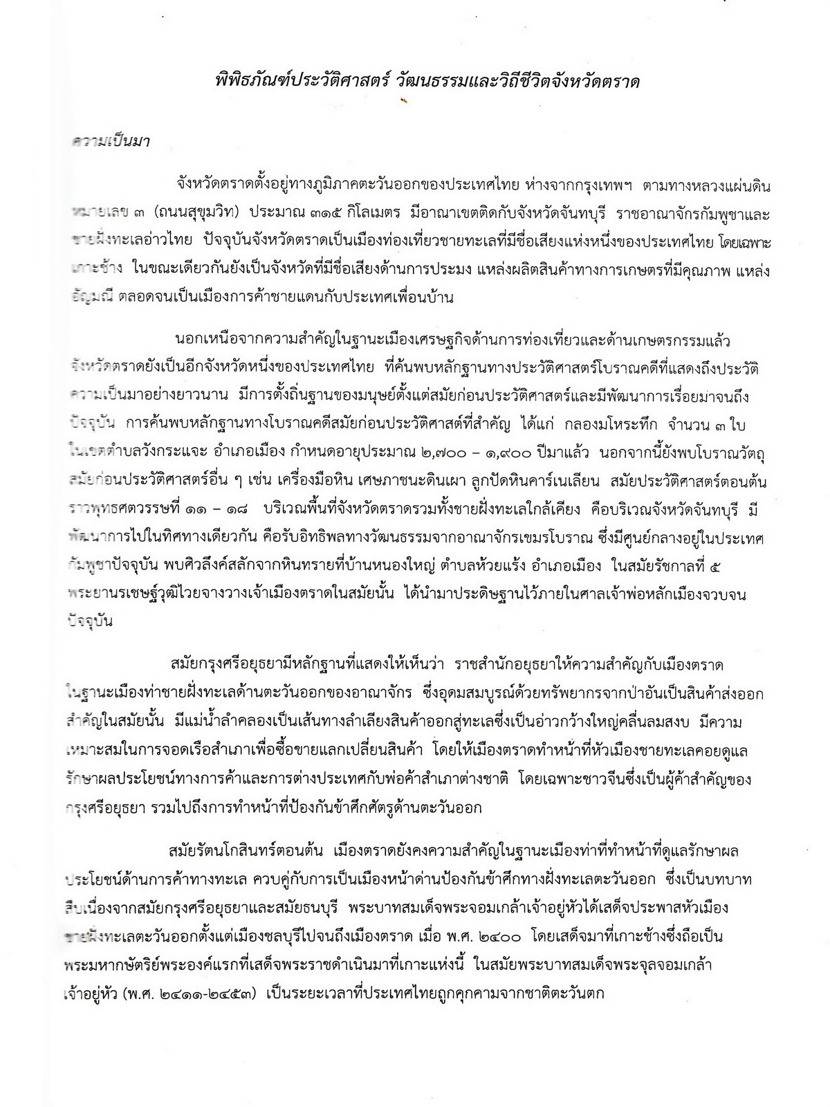 เอกสารประกอบการสัมมนา พิพิธภัณฑ์เมืองตราด : แหล่งเรียนรู้ประวัติศาสตร์ วัฒนธรรม และวิถีชีวิต