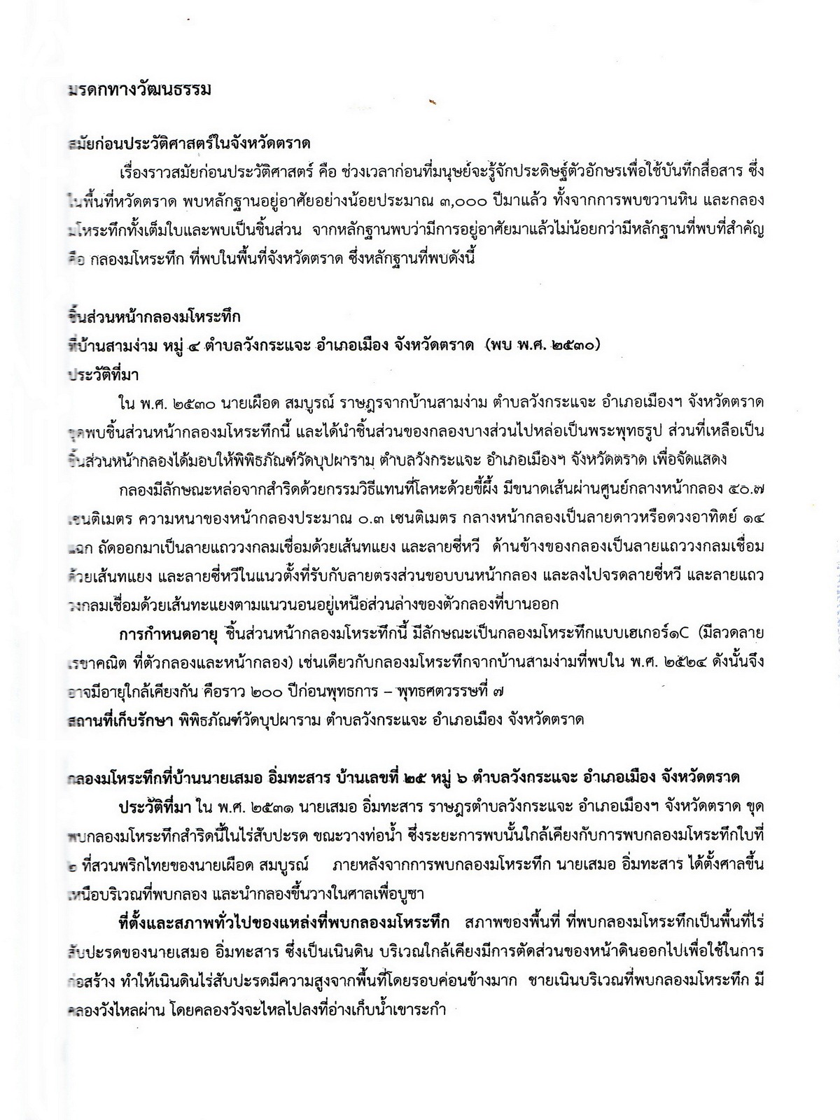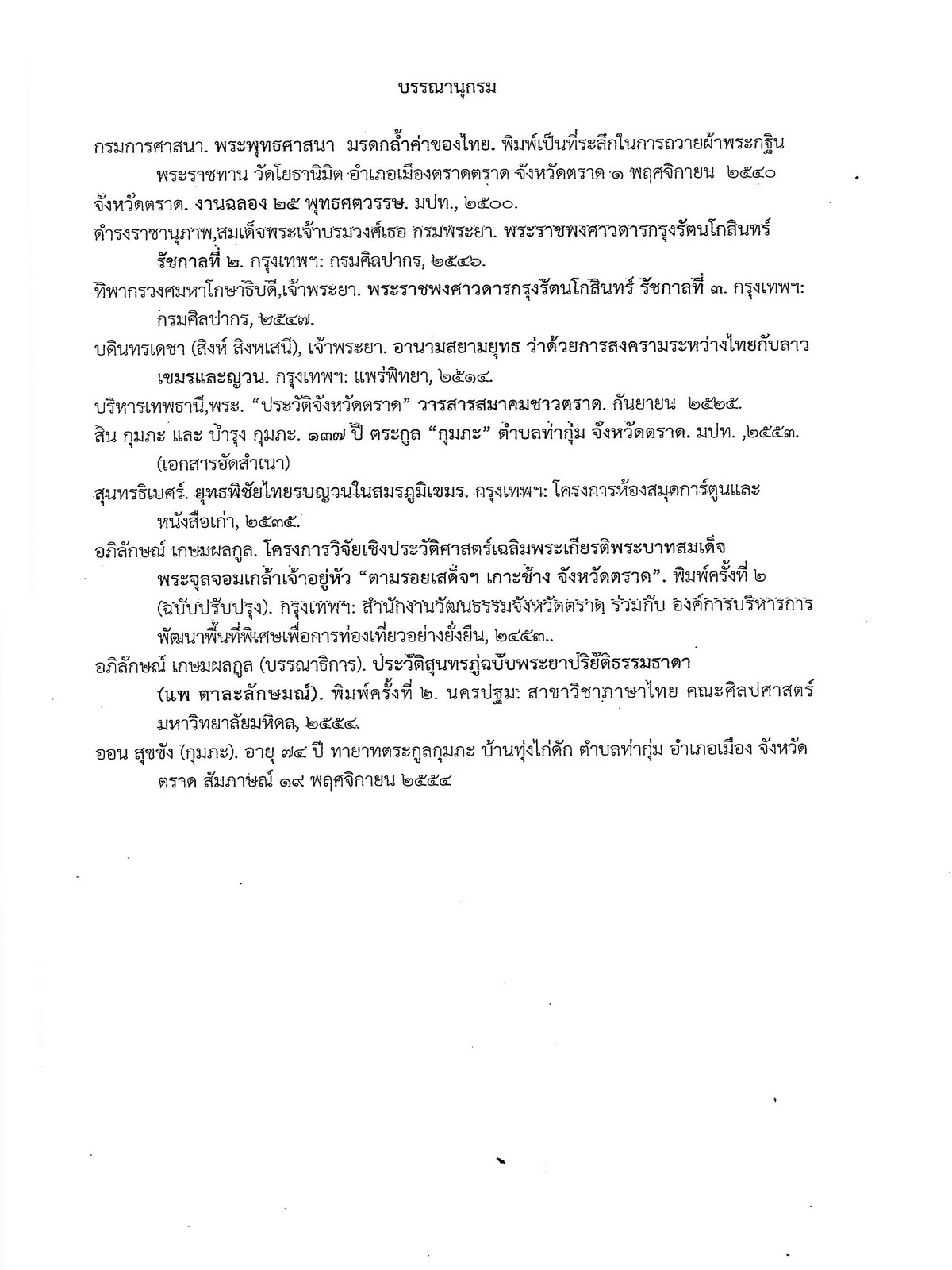 - เป็นเอกสารประกอบการสัมมนาของหน่วยงานต่างๆสถานศึกษา พิพิธภัณฑ์ และแหล่งเรียนรู้ในจังหวัดตราด ซึ่งจัดโดยสำนักพิพิธภัณฑสถานแห่งชาติ กรมศิลปากร