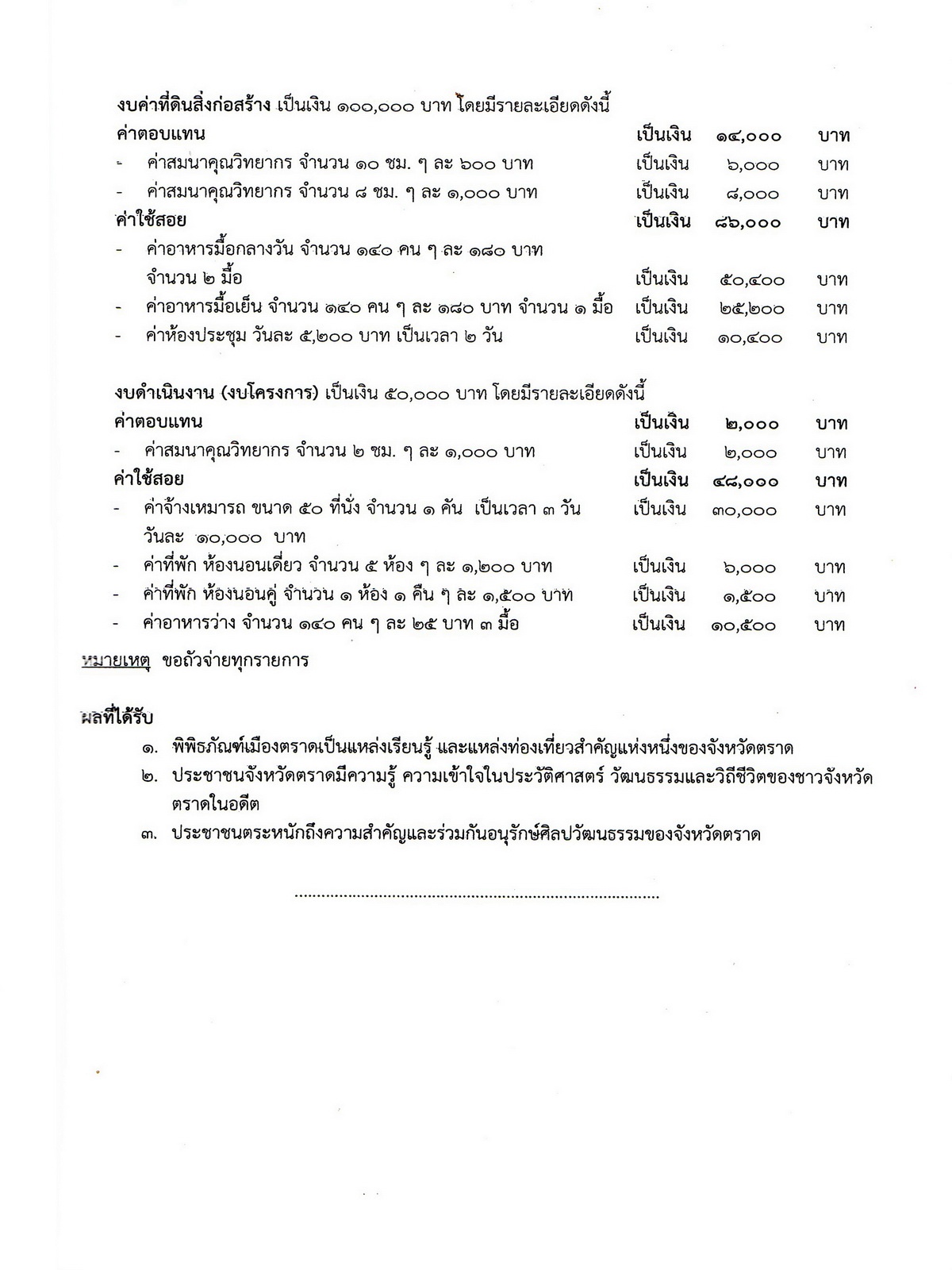 - เป็นเอกสารประกอบการสัมมนา สำหรับหน่วยงานต่างๆ ที่ให้ข้อมูลเกี่ยวกับพิพิธภัณฑ์ประวัติศาสตร์ วัฒนธรรมและวิถีชีวิตจังหวัดตราด ข้อมูลพื้นฐานจังหวัดตราด มรดกวัฒนธรรม กลุ่มชาติพันธ์ุ ศาสนา ความเชื่อ ประเพณี พิธีกรรม ภาษา โบราณสถาน.
