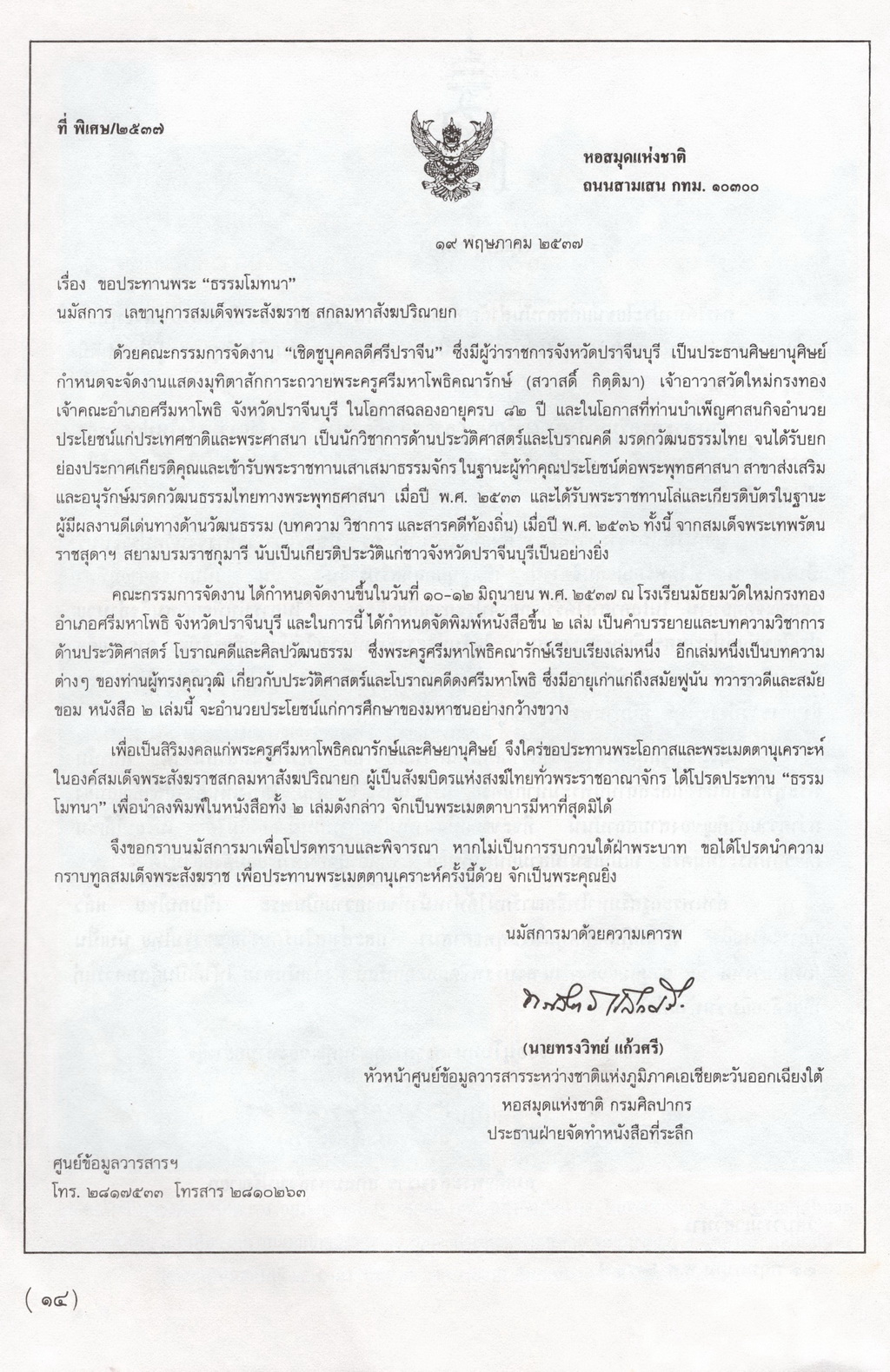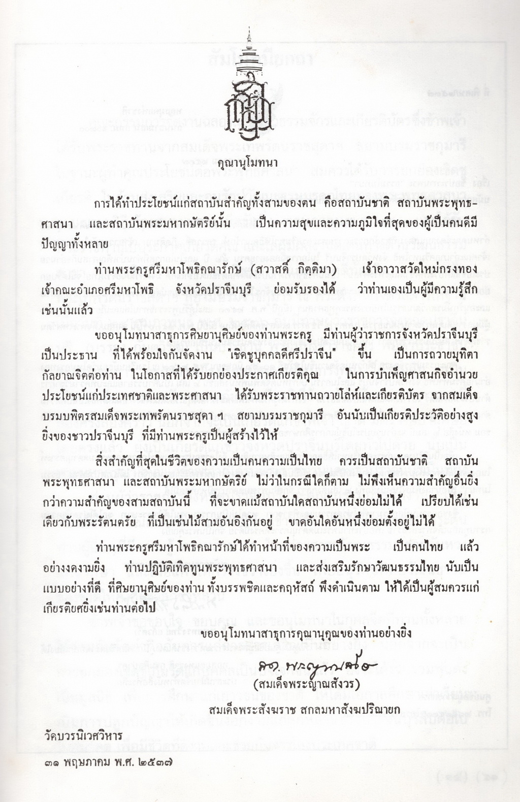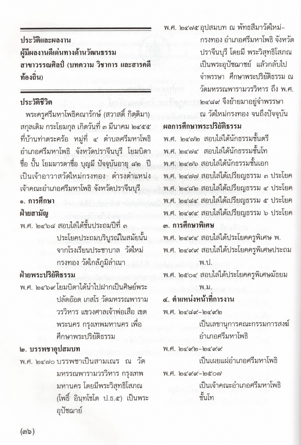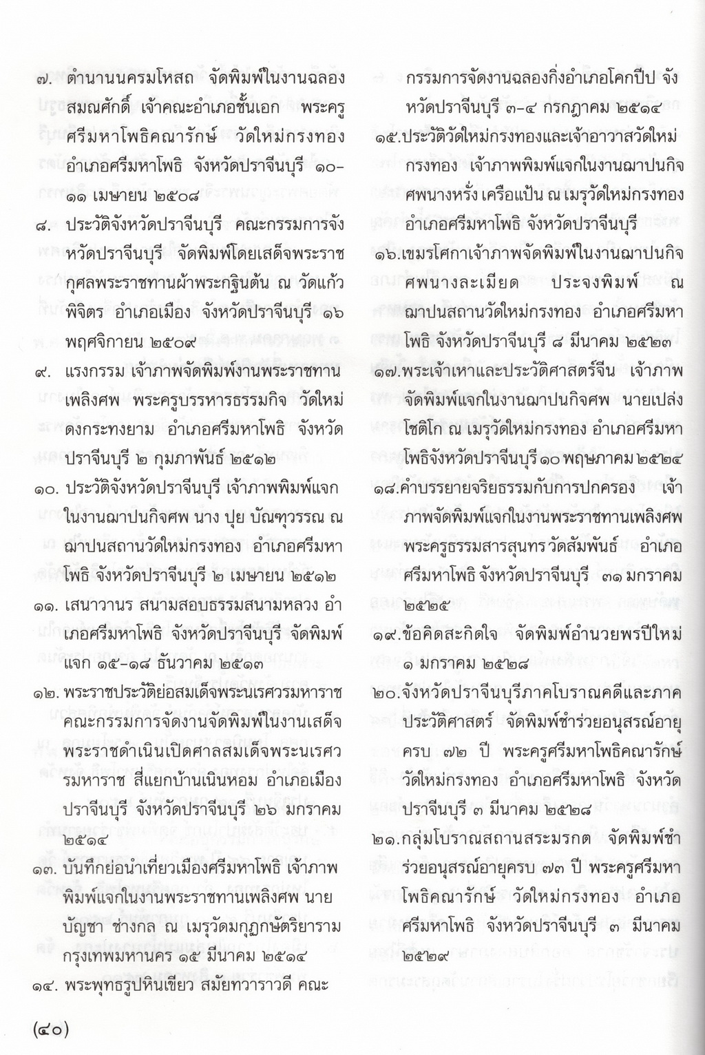 - จัดพิมพ์เป็นมุทิตาสักการะ เนื่องในโอกาสฉลองชนมายุครบ 82 ปี พระครูศรีมหาโพธิคณารักษ์ (สวาสดิ์ กิตติมา) ณ โรงเรียนมัธยมวัดใหม่กรงทอง อำเภอศรีมหาโพธิ จังหวัดปราจีนบุรี วันที่ 10-20 มิถุนายน พุทธศักราช 2537