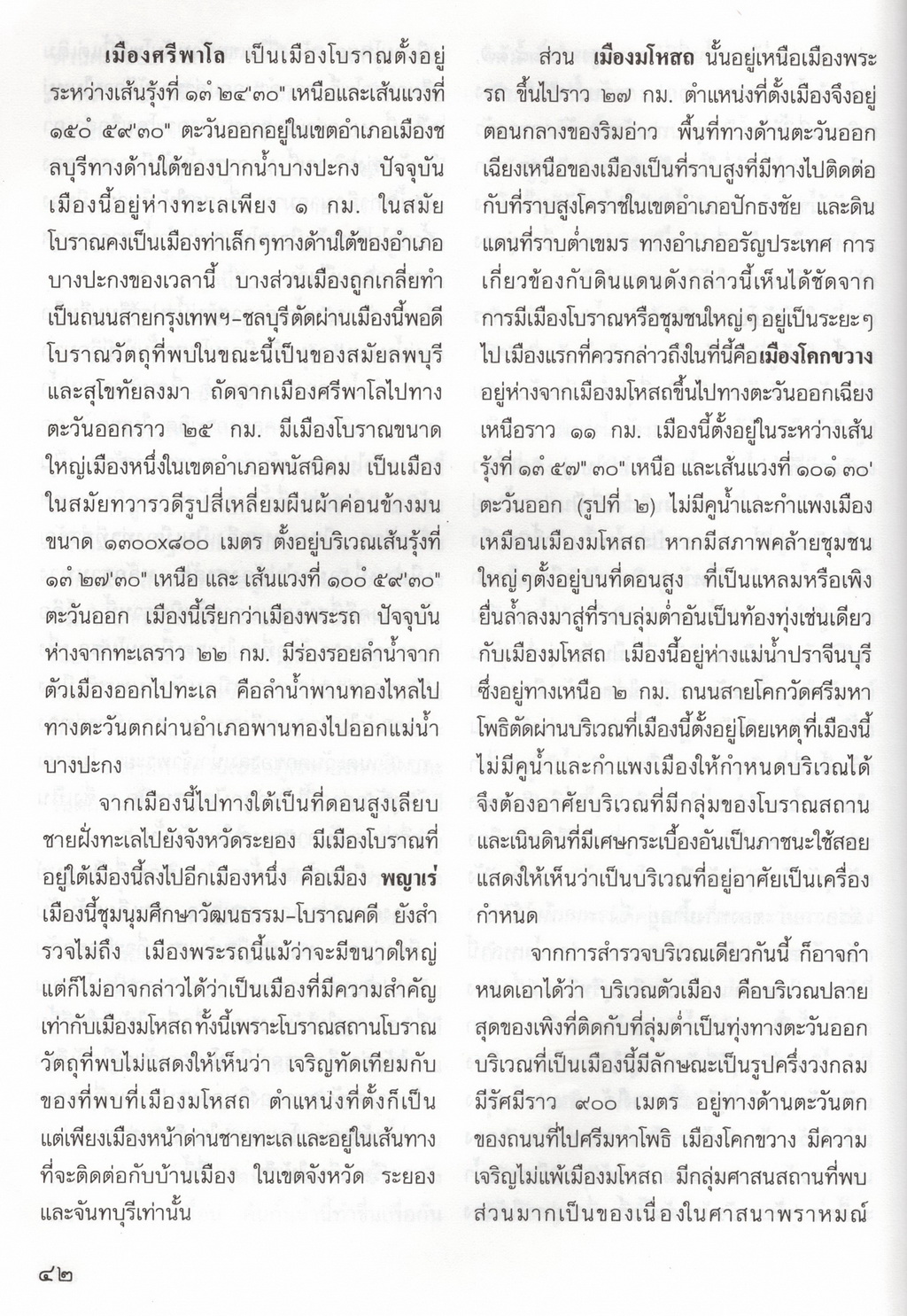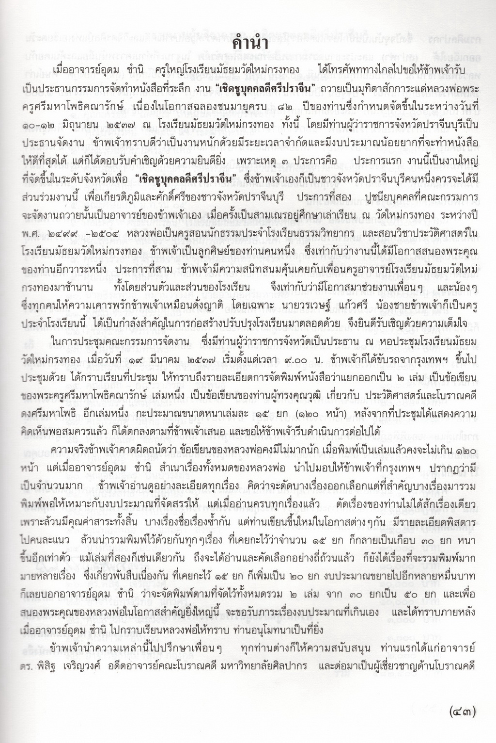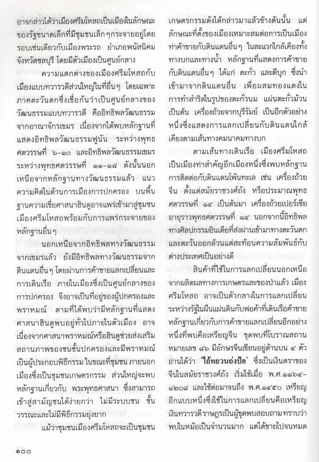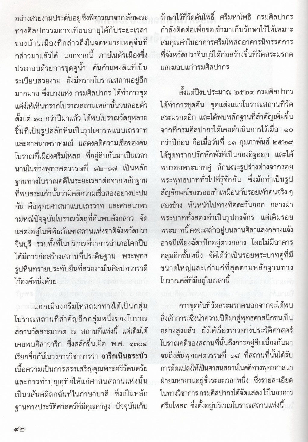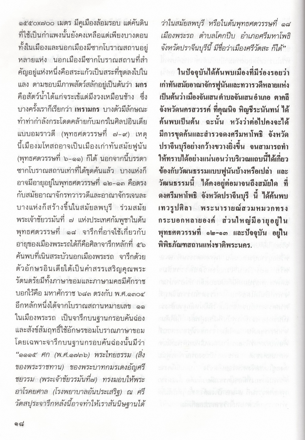 - เป็นหนังสือที่รวบรวมข้อมูลเกี่ยวกับประวัติศาสตร์และโบราณคดีดงศรีมหาโพธิ ได้แก่ พระราชหัตถเลขา ฉบับที่ 2 เรื่อง เสด็จประพาสมณฑลปราจีน อาณาจักรฟูนัน อำเภอศรีมหาโพธิ ในด้านโบราณคดี รายงานเบื้องต้นการปฏิบัติงานภาคสนามของคณะโบราณคดี มหาวิทยาลัยศิลปากร ประจำปีการศึกษา 2509 ดงศรีมหาโพธิกับการดำเนินงานโบราณคดี เมืองโบราณในจังหวัดปราจีนบุรี การสำรวจและขุดต่งโบราณสถาน เมืองเก่าพระรถ ดงศรีมหาโพธิ อำเภอศรีมหาโพธิ จังหวัดปราจีนบุรี เมืองศรีมโหสถ และสระมรกตปราจีนบุรี ประวัติศาสตร์ และโบราณคดี เมืองศรีมดหสถ ลักษณะโบราณสถานสระมรกต ท้ายเล่มเป็นโครงการเชิดชูบุคคลดีศรีปราจีน