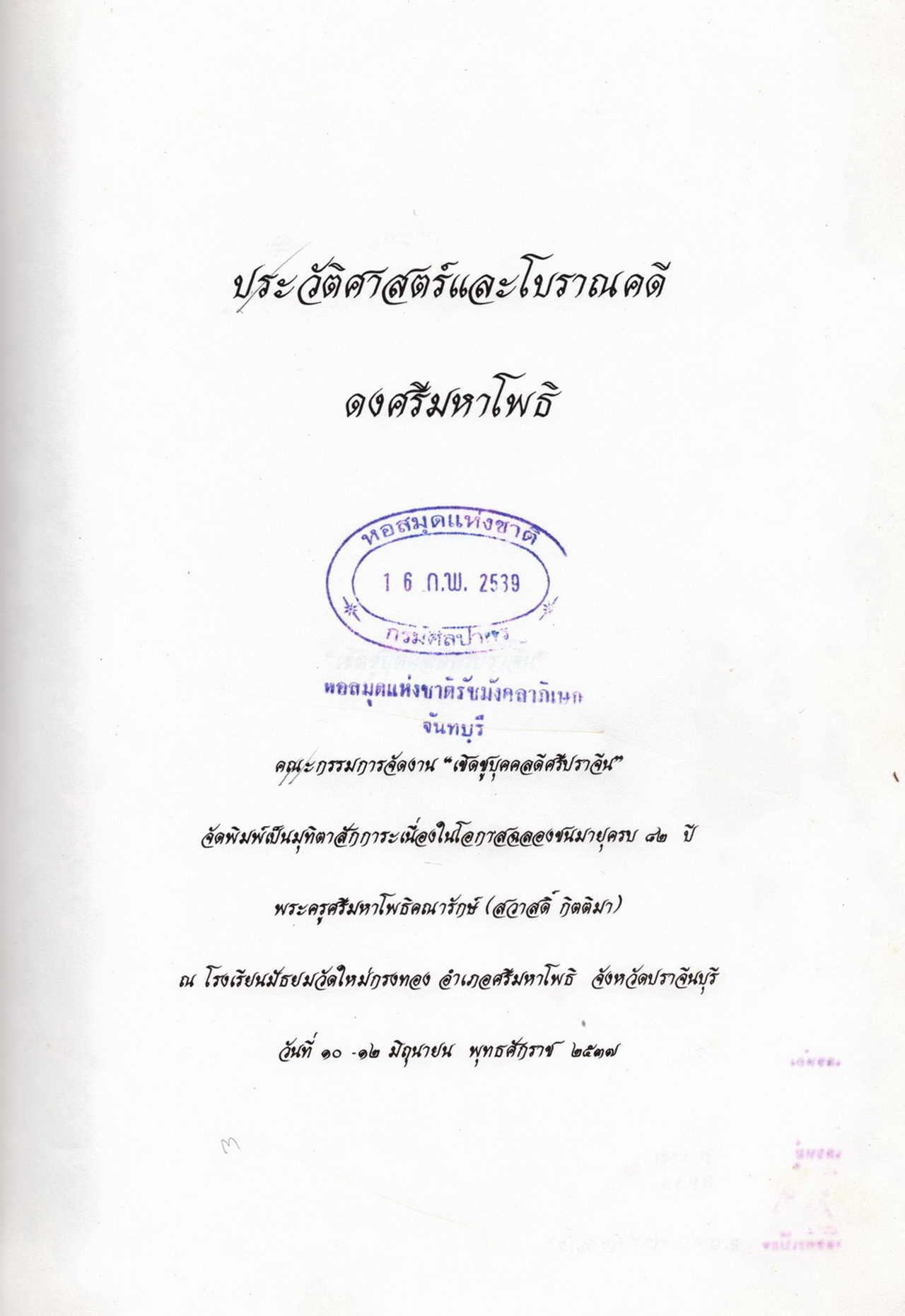 คณะกรรมการจัดงาน " เชิดชูบุคคลดีศรีปราจีน ", “ประวัติศาสตร์และโบราณคดีดงศรีมหาโพธิ,” D-Library | National Library of Thailand, accessed April 2, 2026, http://164.115.27.97/digital2024/items/show/7166.