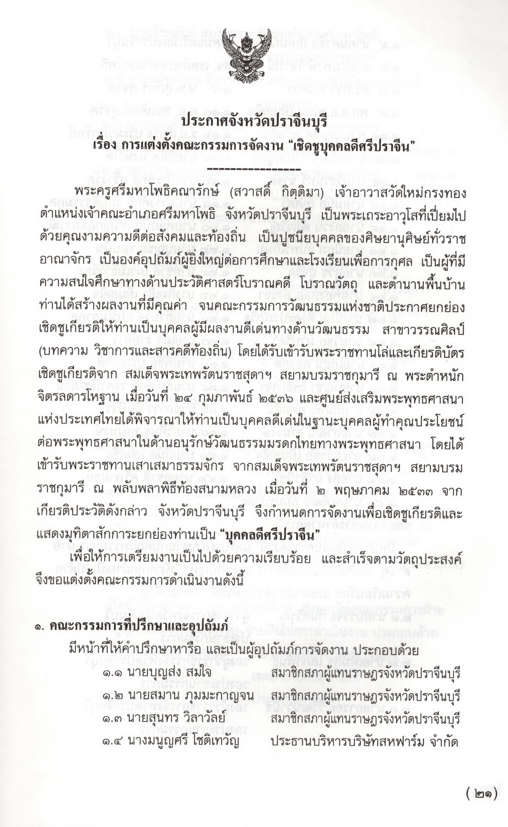 - คณะกรรมการจัดงาน " เชิดชูบุคคลดีศรีปราจีน "