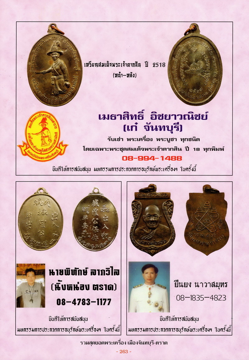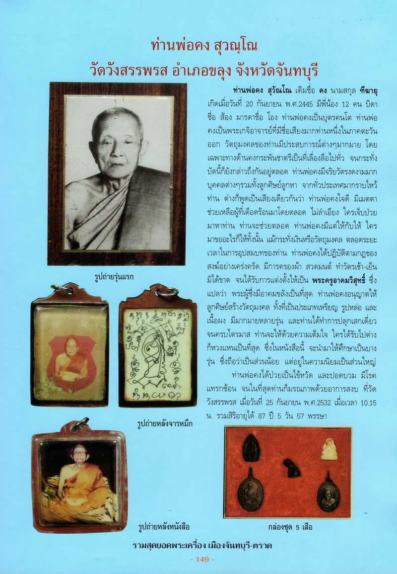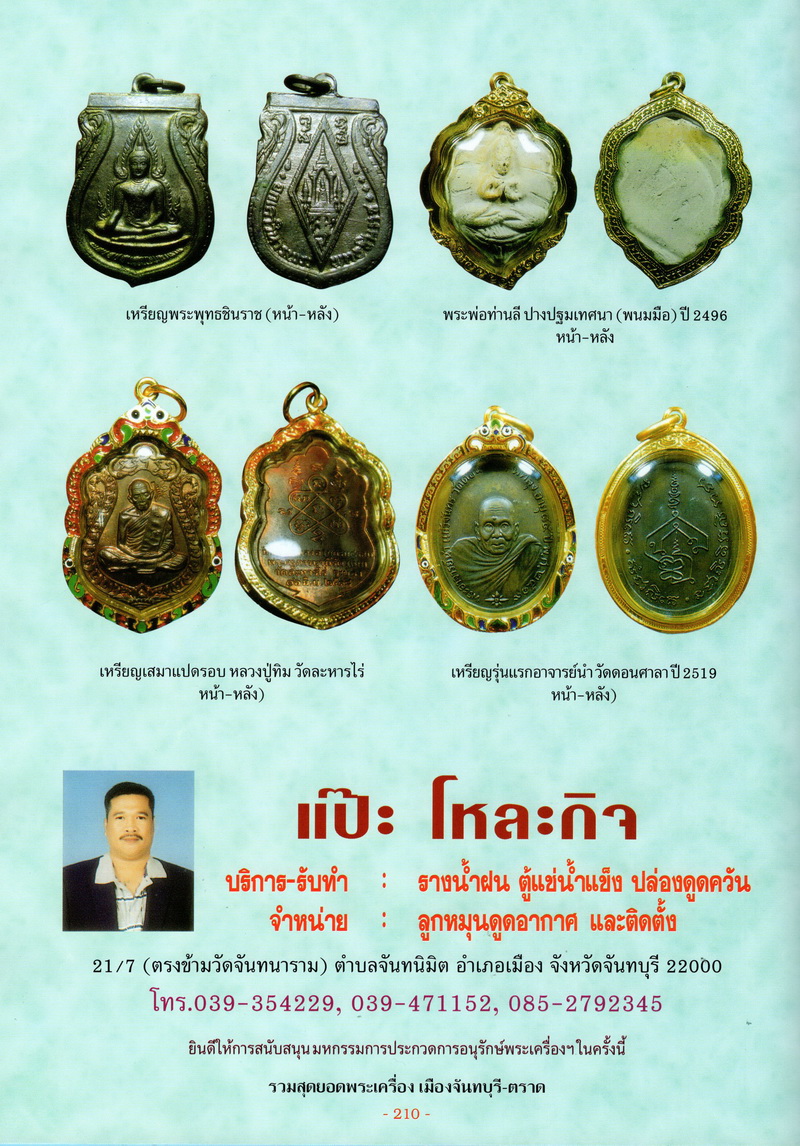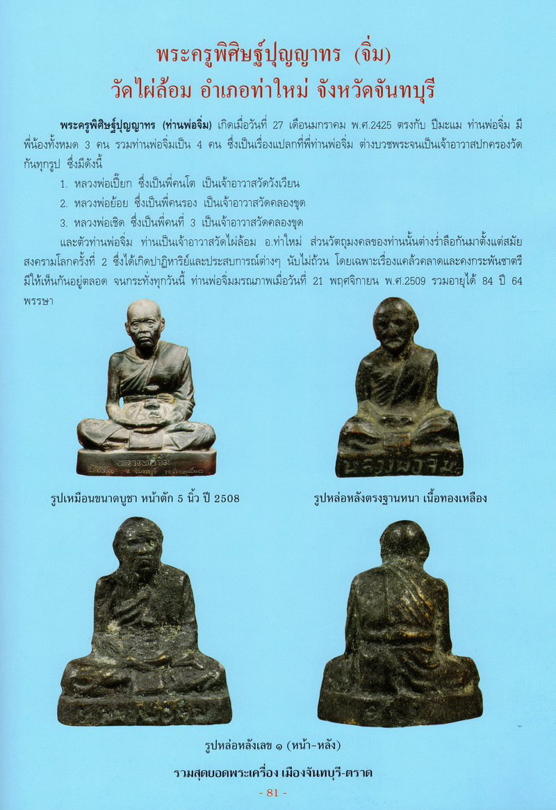 - มีเนื้อหาเกี่ยวกับประวัติจังหวัดจันทบุรี ประวัติวัดพลับ ตำบลบางกะจะ อำเภอเมือง จังหวัดจันทบุรี เหรียญสมเด็จพระเจ้าตากสินมหาราช ปี 2517 ค่ายตากสิน จันทบุรี ปี 2518 ค่ายตากสิน จันทบุรี ปี 2531 พระวิสุทธิธรรมรังสีคัมภีรเมธาจารย์ (ลี ธมมฺธโร) พระยอดธงวัดโบสถืเมืองจันทบุรี ท่านพ่อผุด วัดวังเวียน ท่านพ่อเชย อมโร วัดเขาเจ้าหลาว อำเภอท่าใหม่ จังหวัดจันทบุรี พระครุพิศิษฐ์ ปุญญาทร (จิ่ม) วัดไผ่ล้อม อำเภอท่าใหม่ จังหวัดจันทบุรี พระครุญาณวรกิจ(กล้วย) วัดหมูดุด อำเภอท่าใหม่ จังหวัดจันทบุรี ท่านพ่อใย สุวัฑฒิโก วัดมะขาม อำเภอมะขาม จังหวัดจันทบุรี ท่านพ่อสุ่น วัดแหลมสิงห์ อำเภอแหลมสิงห์ จังหวัดจันทบุรี ท่านพ่คง สุวณโณ วัดวังสรรพรส อำเภอขลุง จังหวัดจันทบุรี ประวัติจังหวัดตราด