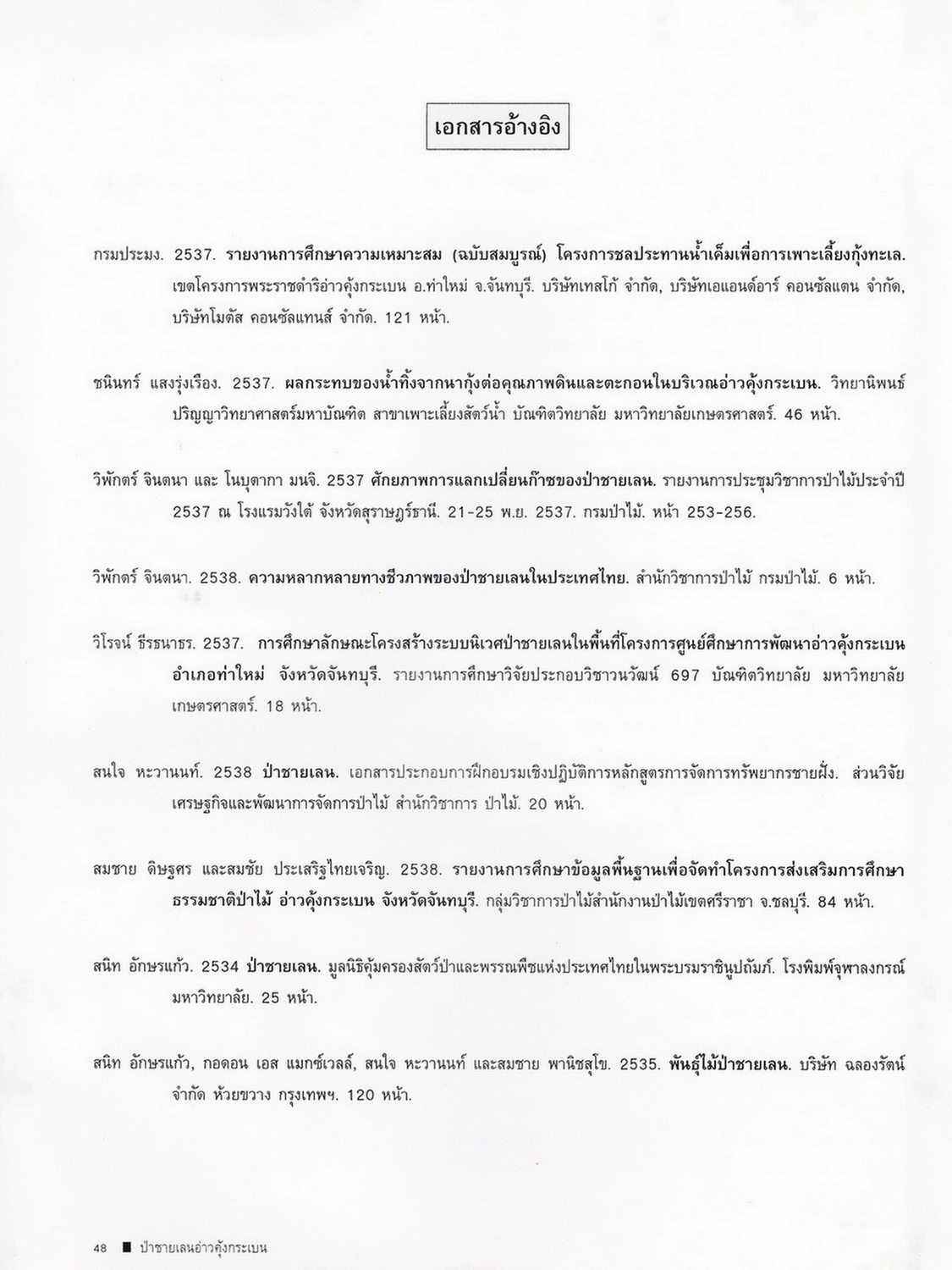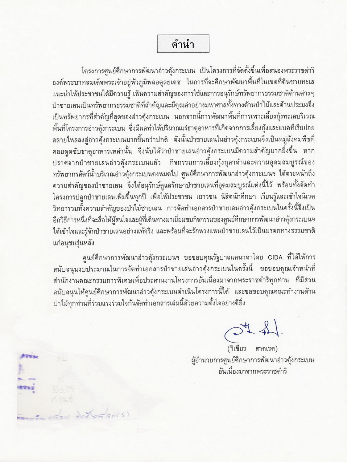 ศูนย์ศึกษาการพัฒนาอ่าวคุ้งกระเบนอันเนื่องมาจากพระราชดำริ, “ป่าชายเลนอ่าวคุ้งกระเบน,” D-Library | National Library of Thailand, accessed April 2, 2026, http://164.115.27.97/digital2024/items/show/7212.