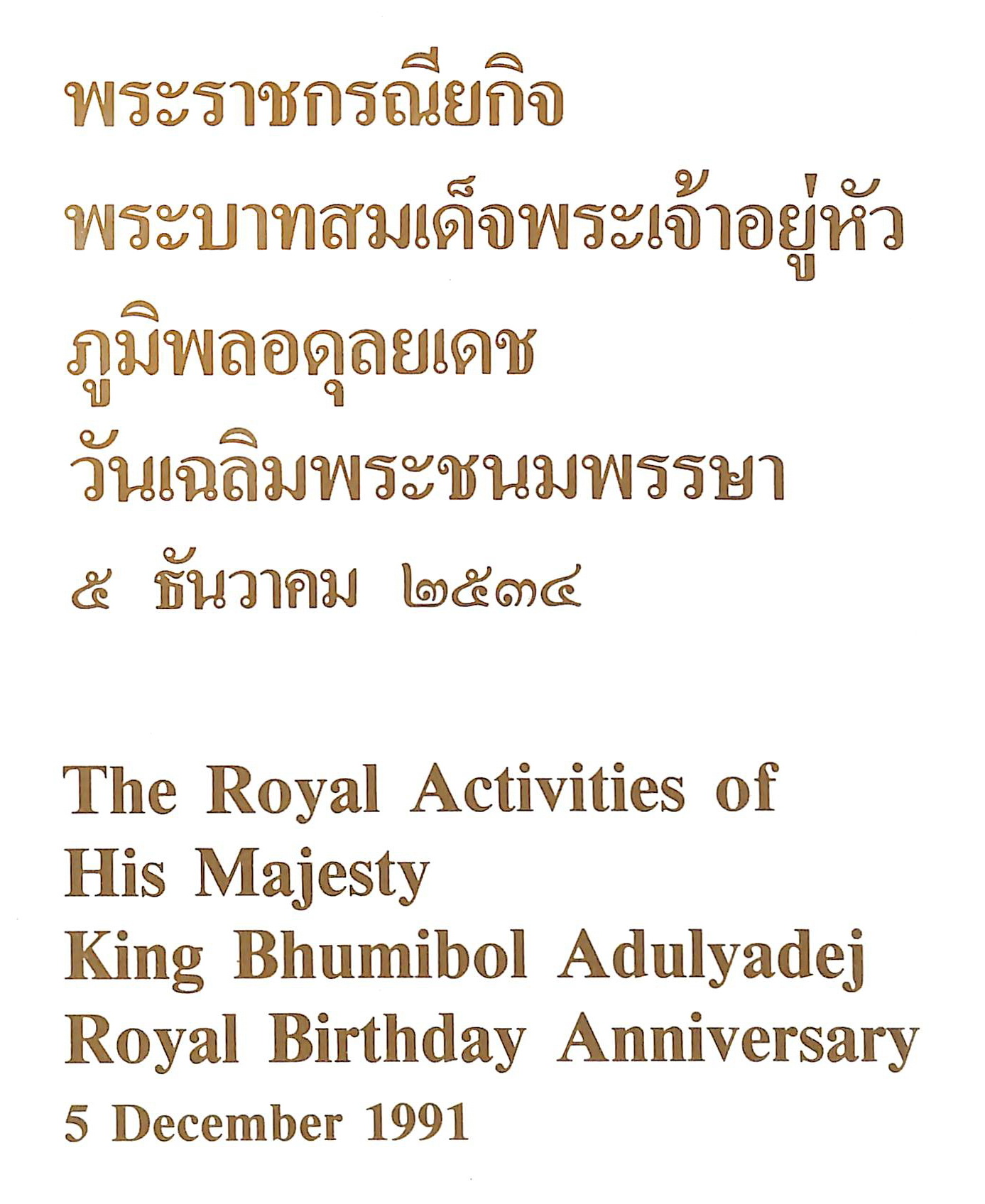 สำนักงานเสริมสร้างเอกลักษณ์ของชาติ สำนักเลขาธิการนายกรัฐมนตรี, “พระราชกรณียกิจ พระบาทสมเด็จพระเจ้าอยู่หัว ภูมิพลอดุลยเดช วันเฉลิมพระชนมพรรษา ๕ ธันวาคม ๒๕๓๔,” D-Library | National Library of Thailand, accessed April 2, 2026, http://164.115.27.97/digital2024/items/show/7242.