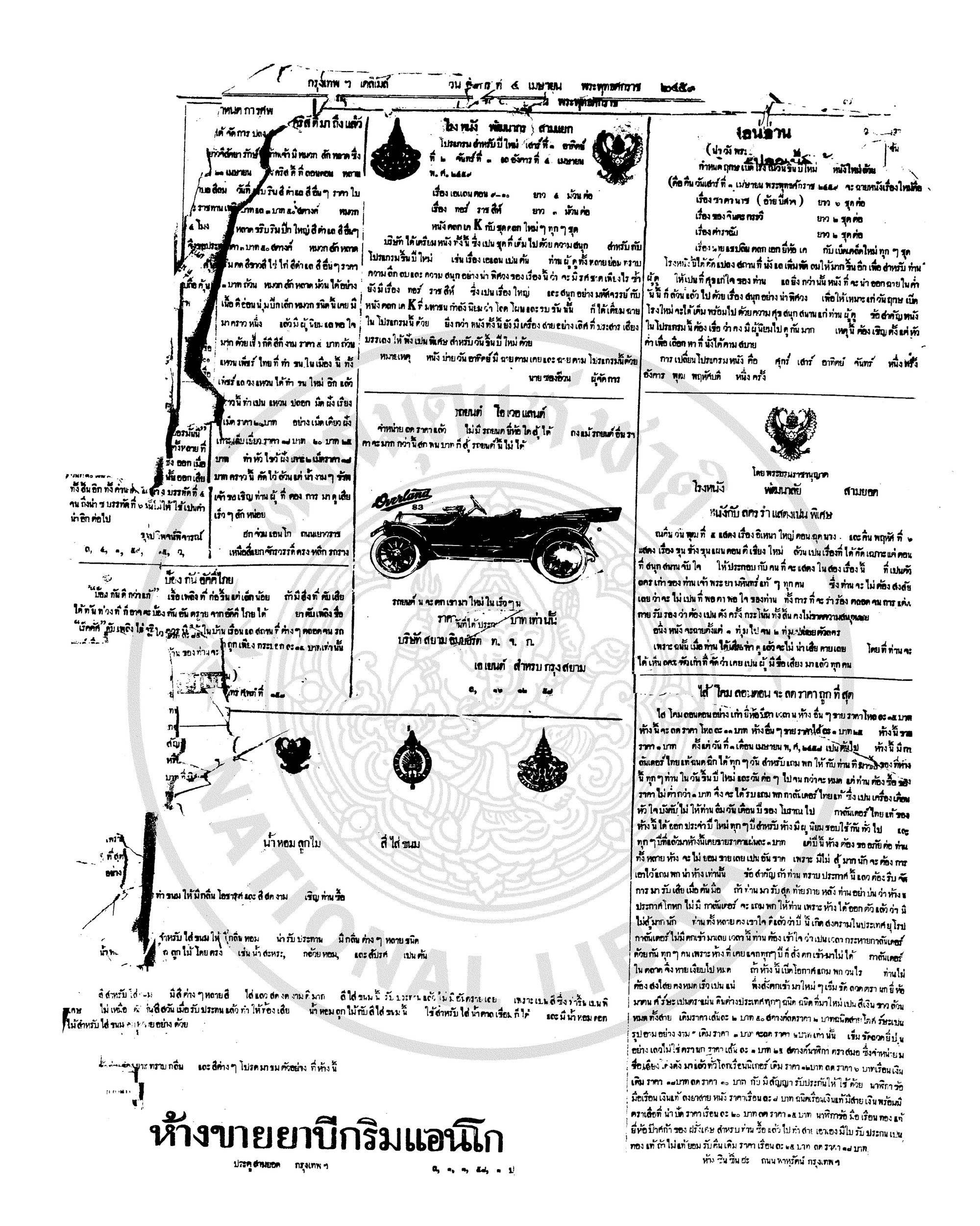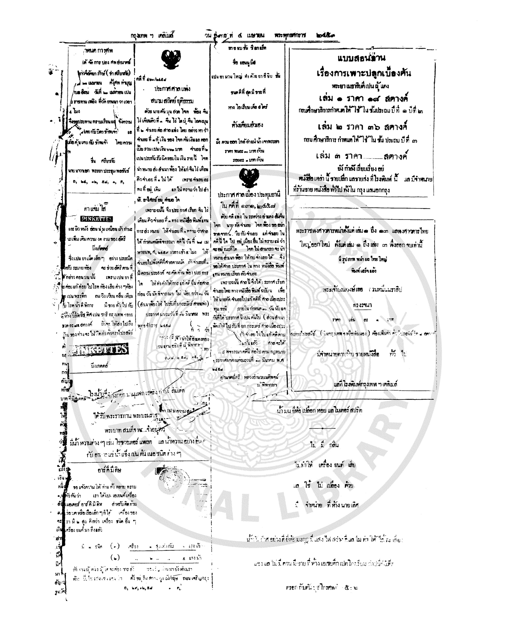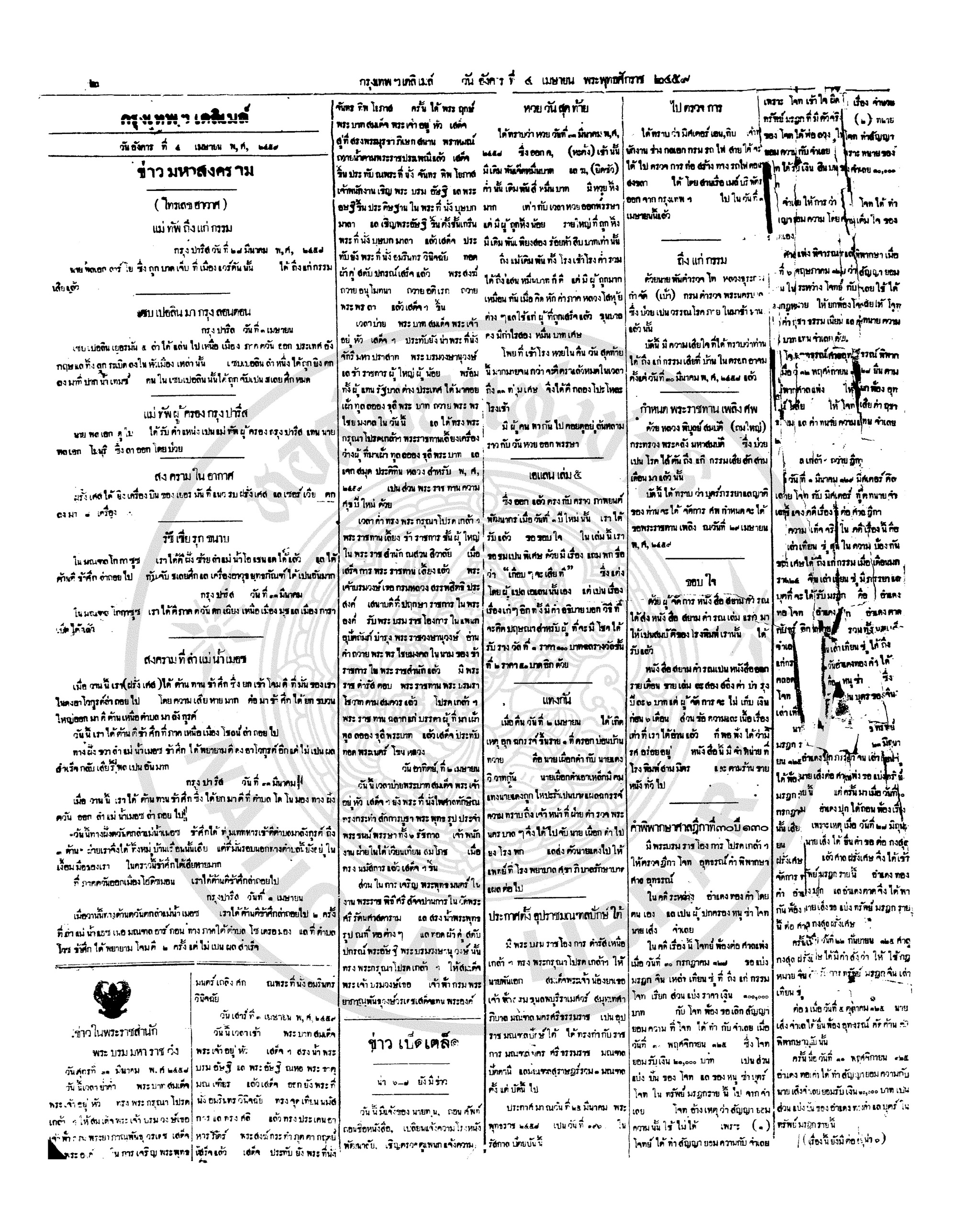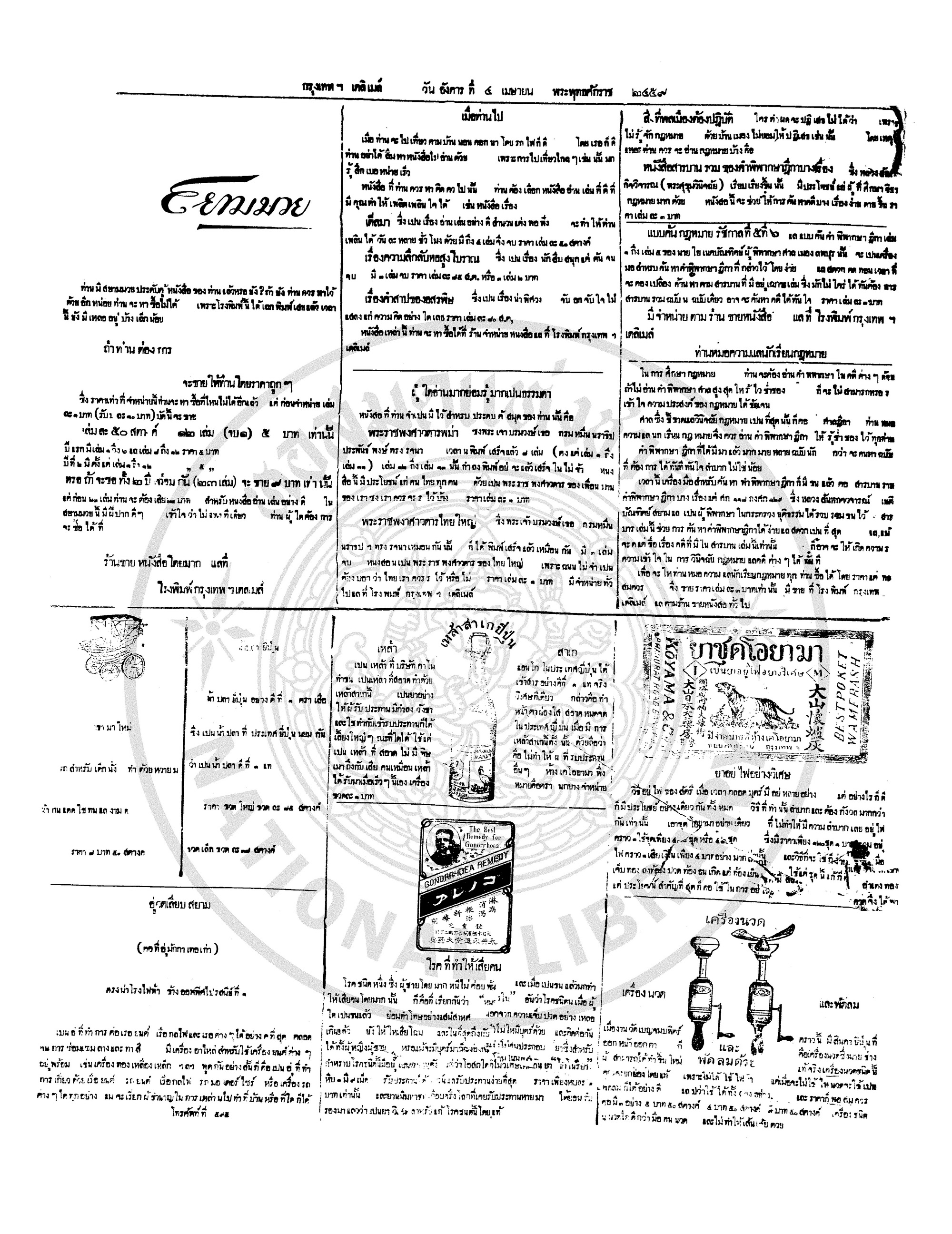 กรุงเทพเดลิเมล์, “หนังสือพิมพ์กรุงเทพเดลิเมล์ ปีที่ 7 ฉบับที่ 1849 วันที่ 4 เมษายน 2458,” D-Library | National Library of Thailand, accessed April 2, 2026, http://164.115.27.97/digital2024/items/show/7257.