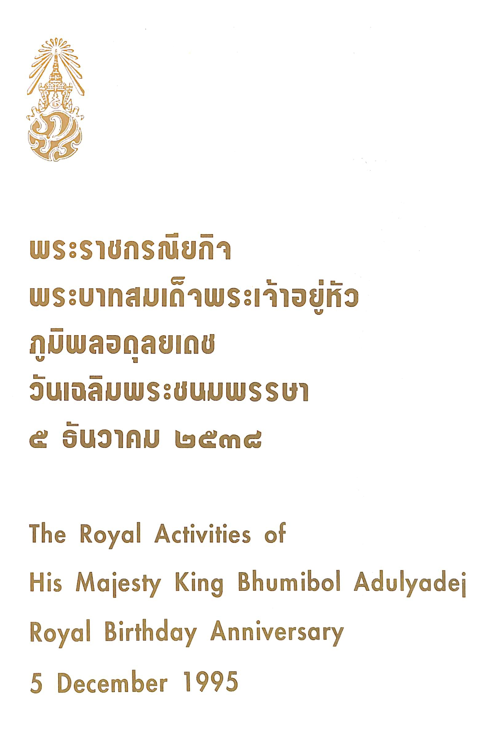 สำนักงานเสริมสร้างเอกลักษณ์ของชาติ สำนักเลขาธิการนายกรัฐมนตรี, “พระราชกรณียกิจ พระบาทสมเด็จพระเจ้าอยู่หัว ภูมิพลอดุลยเดช วันเฉลิมพระชนมพรรษา ๕ ธันวาคม ๒๕๓๘,” D-Library | National Library of Thailand, accessed April 2, 2026, http://164.115.27.97/digital2024/items/show/7294.