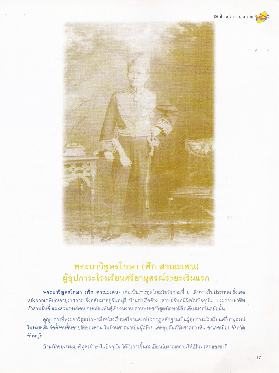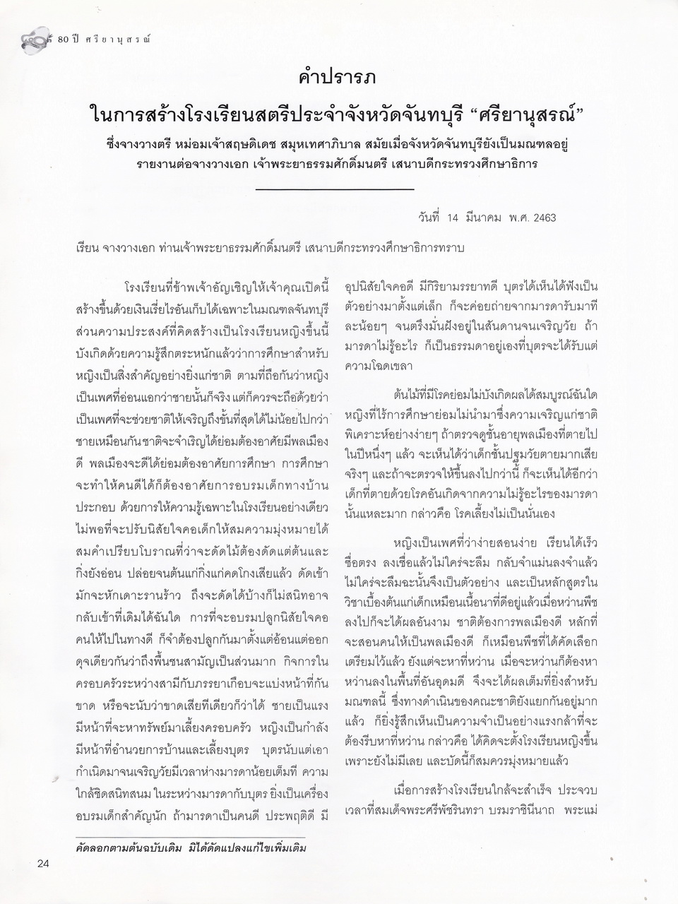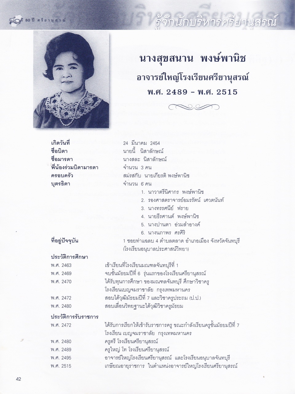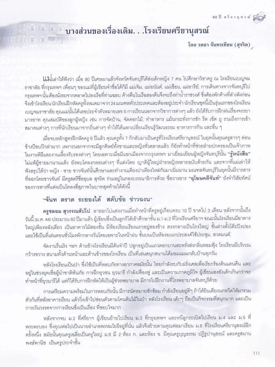 ศรียานุสรณ์, โรงเรียน, “ครบรอบการสถาปนา 80 ปี โรงเรียนศรียานุสรณ์ จันทบุรี,” D-Library | National Library of Thailand, accessed April 2, 2026, http://164.115.27.97/digital2024/items/show/7319.