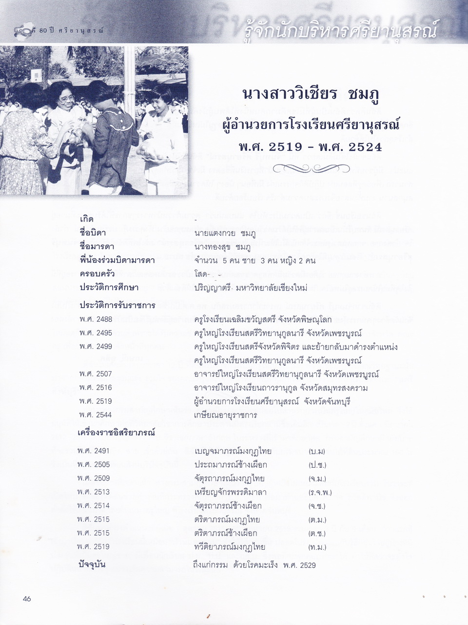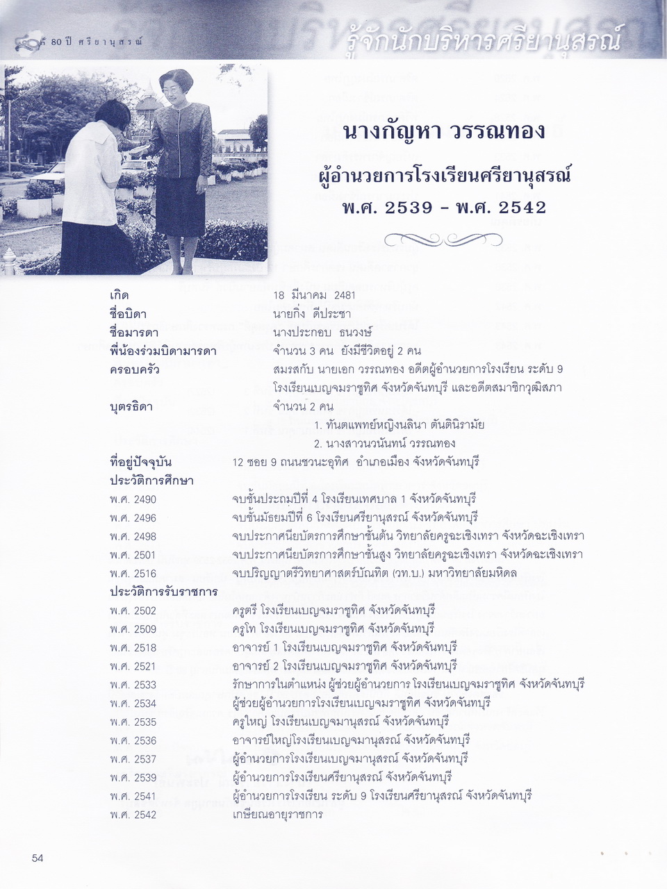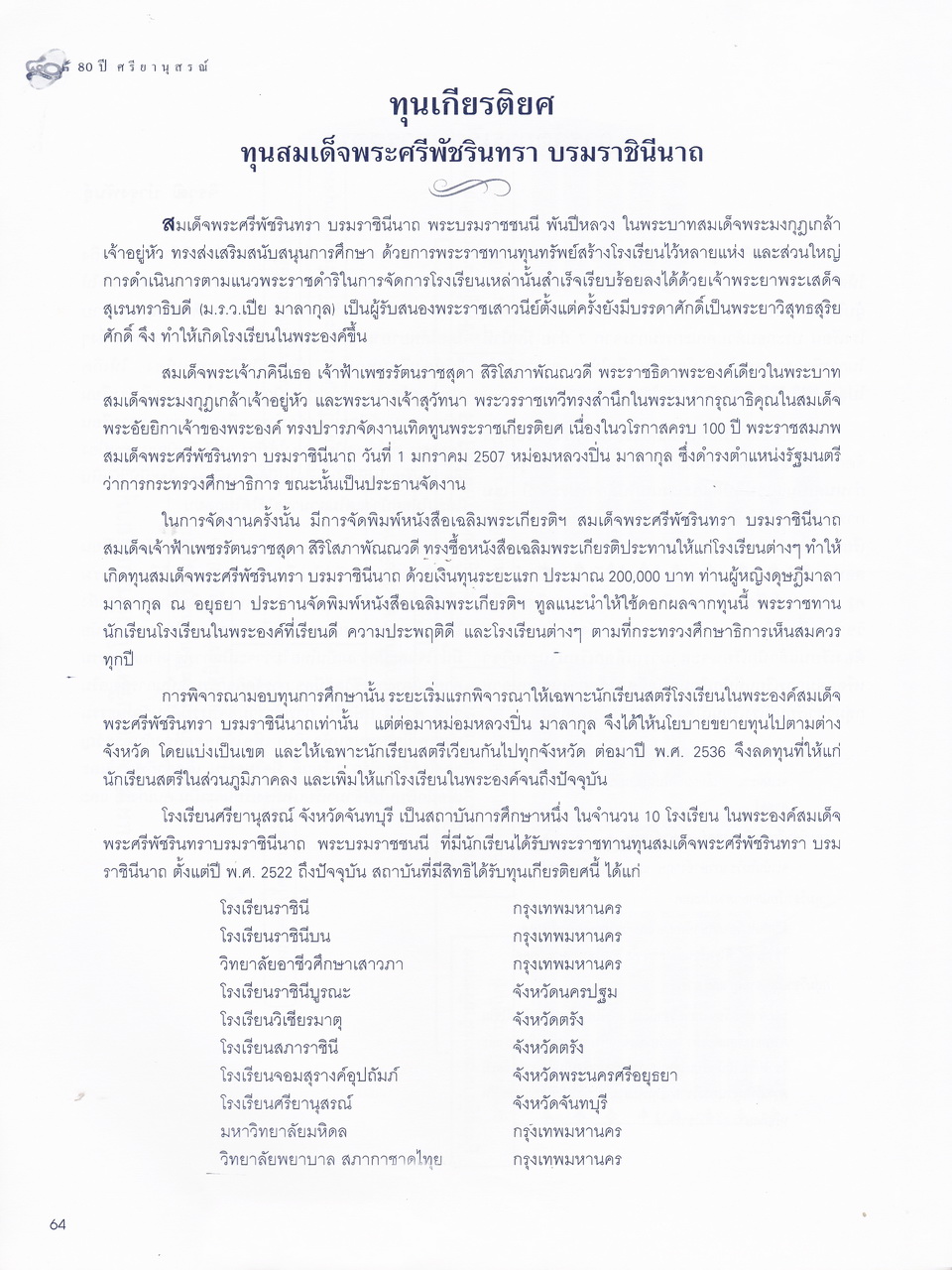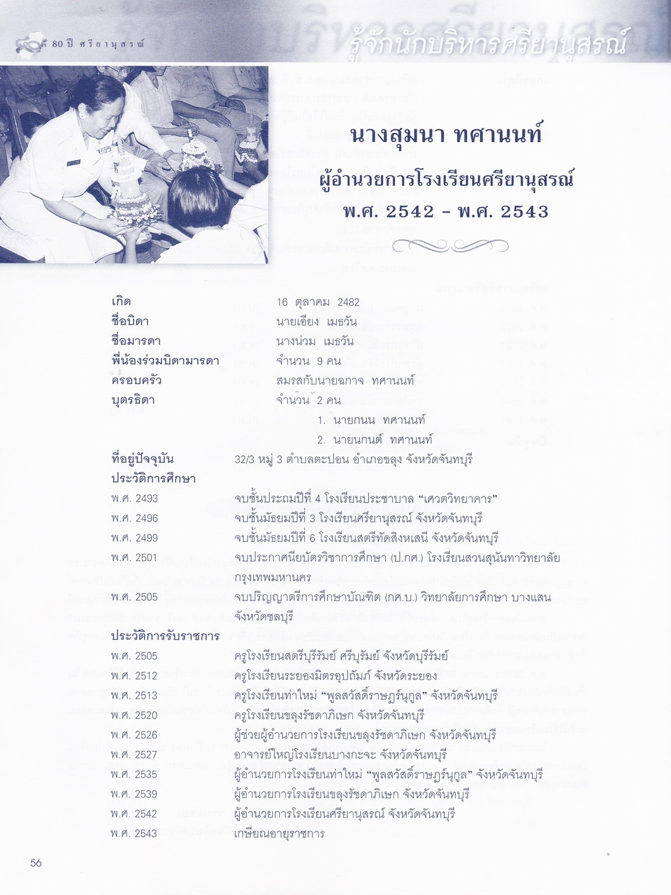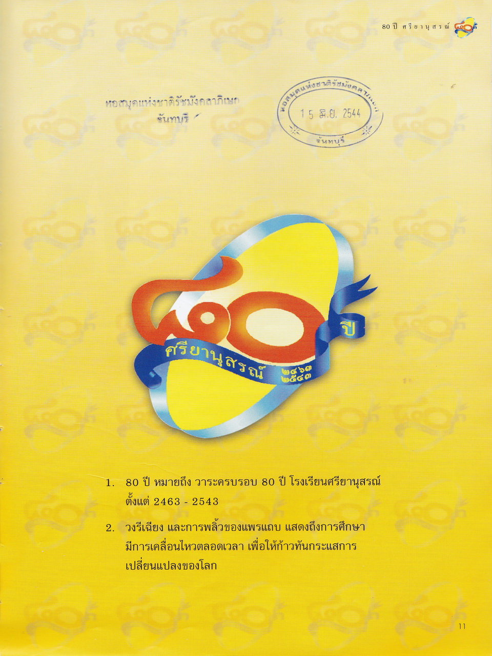 ศรียานุสรณ์, โรงเรียน, “ครบรอบการสถาปนา 80 ปี โรงเรียนศรียานุสรณ์ จันทบุรี,” D-Library | National Library of Thailand, accessed April 2, 2026, http://164.115.27.97/digital2024/items/show/7319.