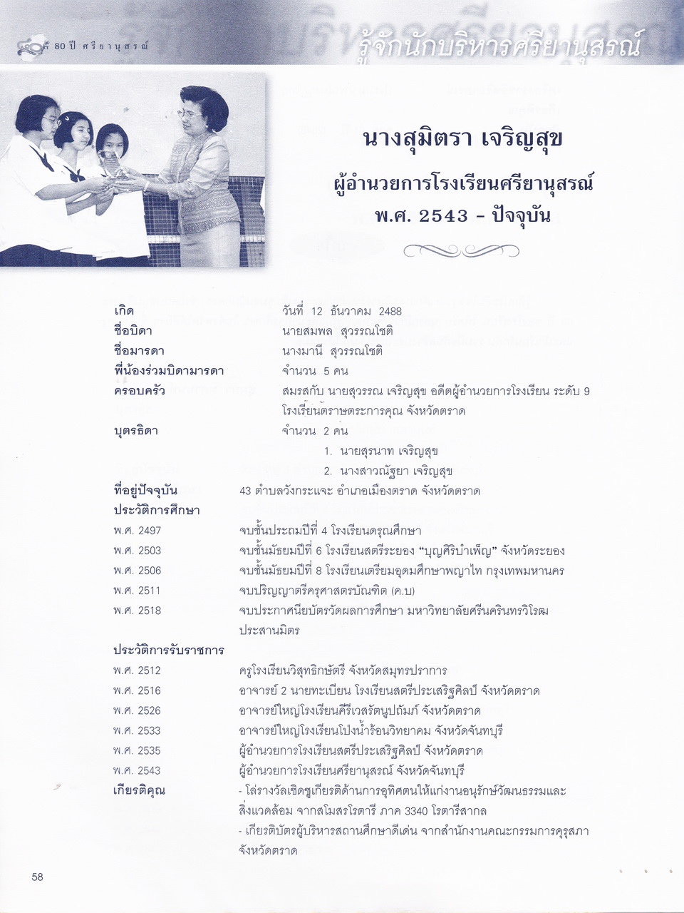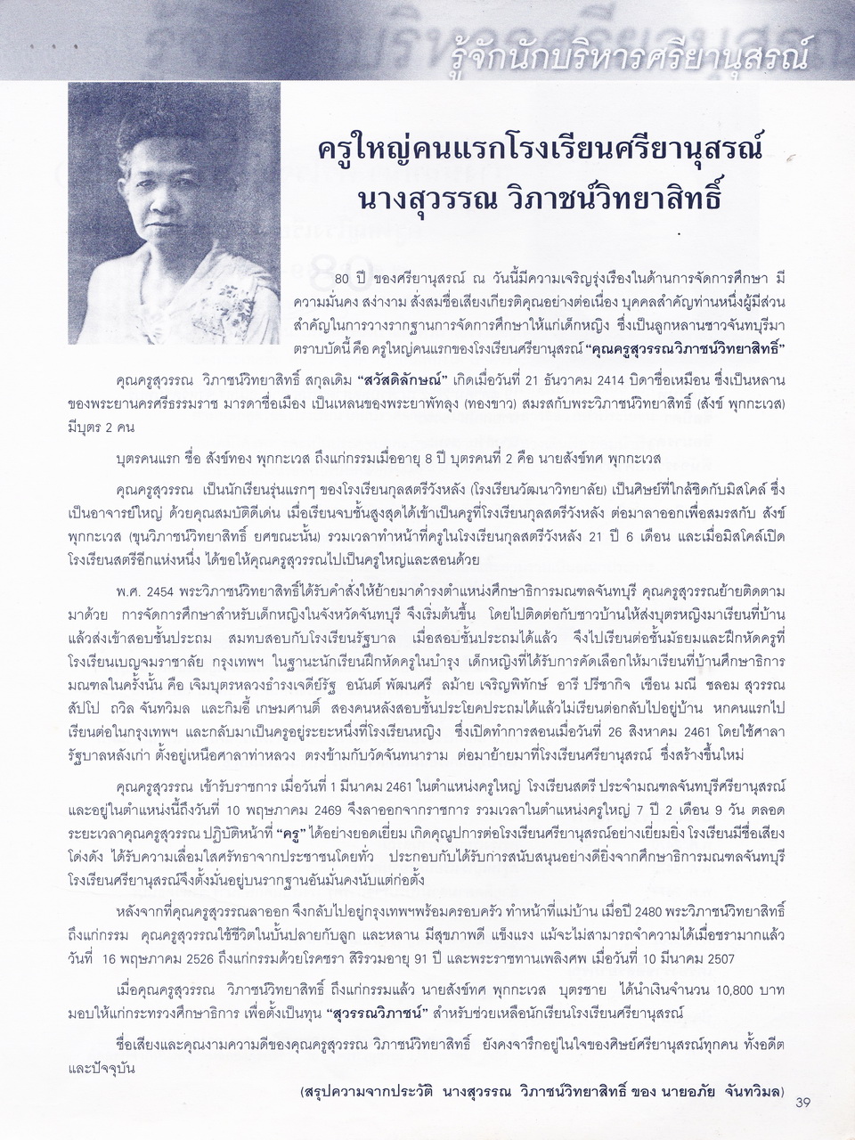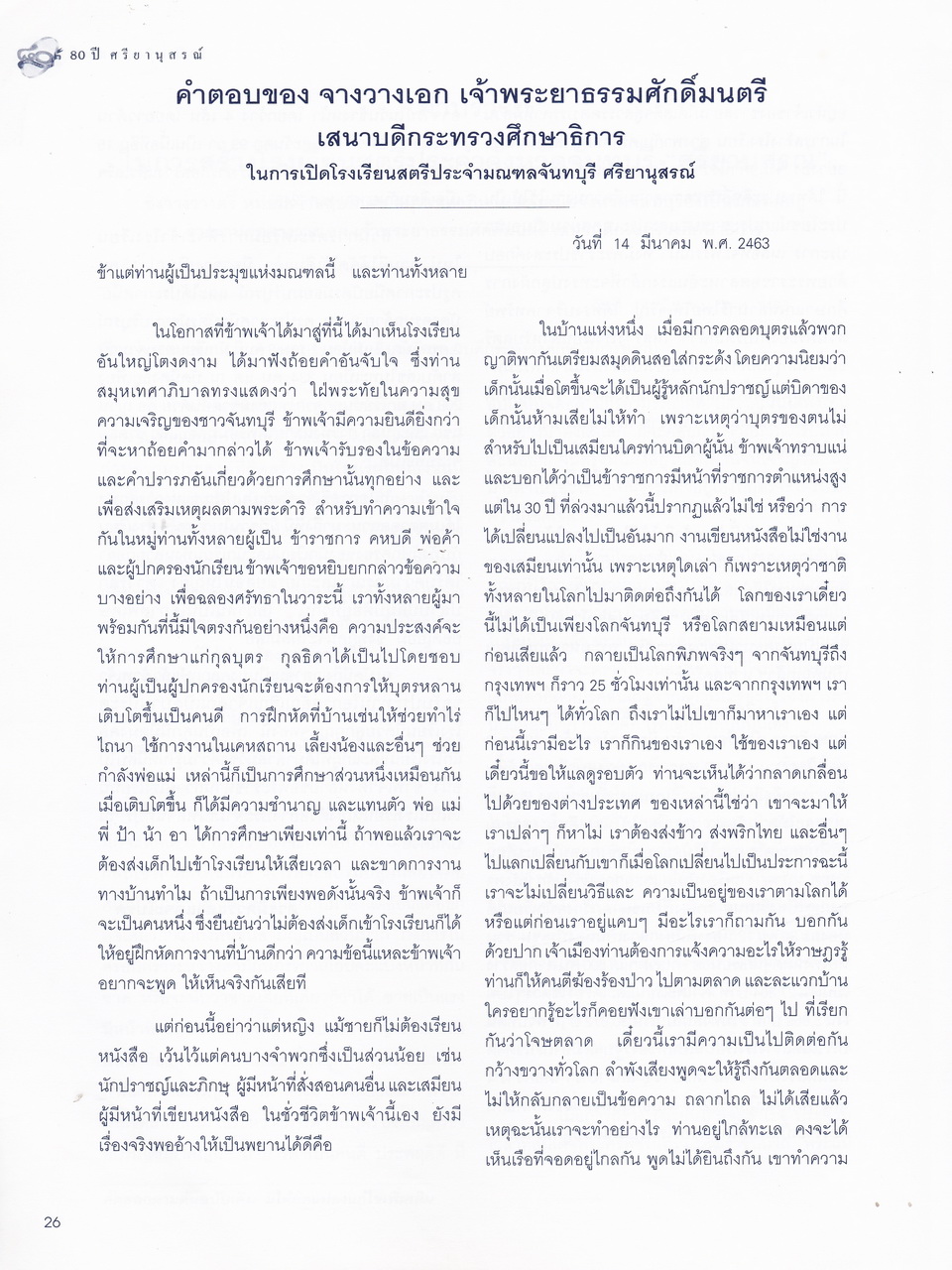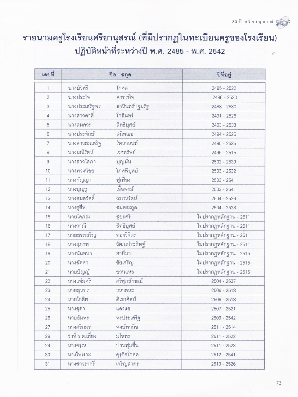 ศรียานุสรณ์, โรงเรียน, “ครบรอบการสถาปนา 80 ปี โรงเรียนศรียานุสรณ์ จันทบุรี,” D-Library | National Library of Thailand, accessed April 2, 2026, http://164.115.27.97/digital2024/items/show/7319.