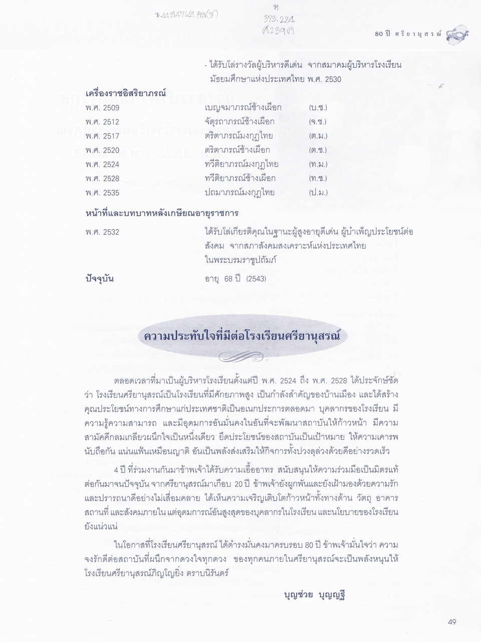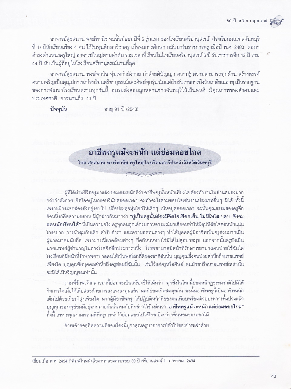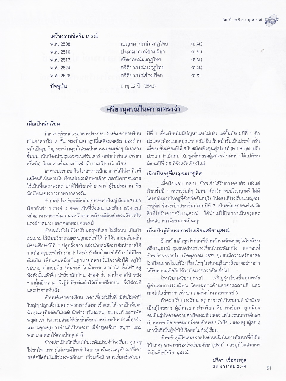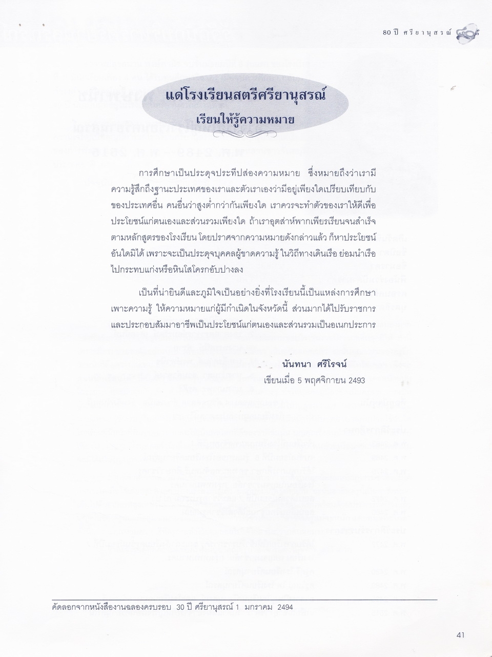 ศรียานุสรณ์, โรงเรียน, “ครบรอบการสถาปนา 80 ปี โรงเรียนศรียานุสรณ์ จันทบุรี,” D-Library | National Library of Thailand, accessed April 2, 2026, http://164.115.27.97/digital2024/items/show/7319.
