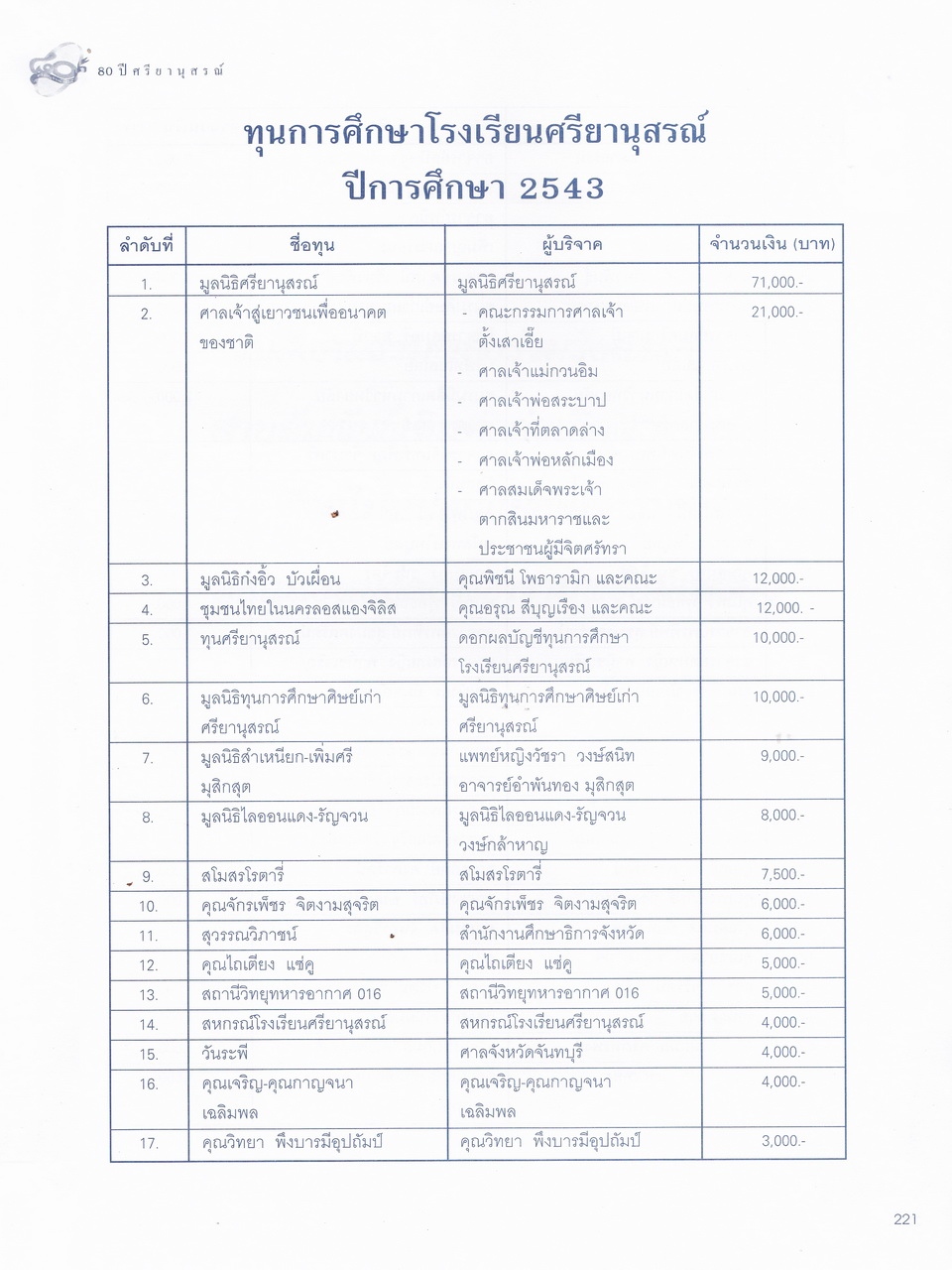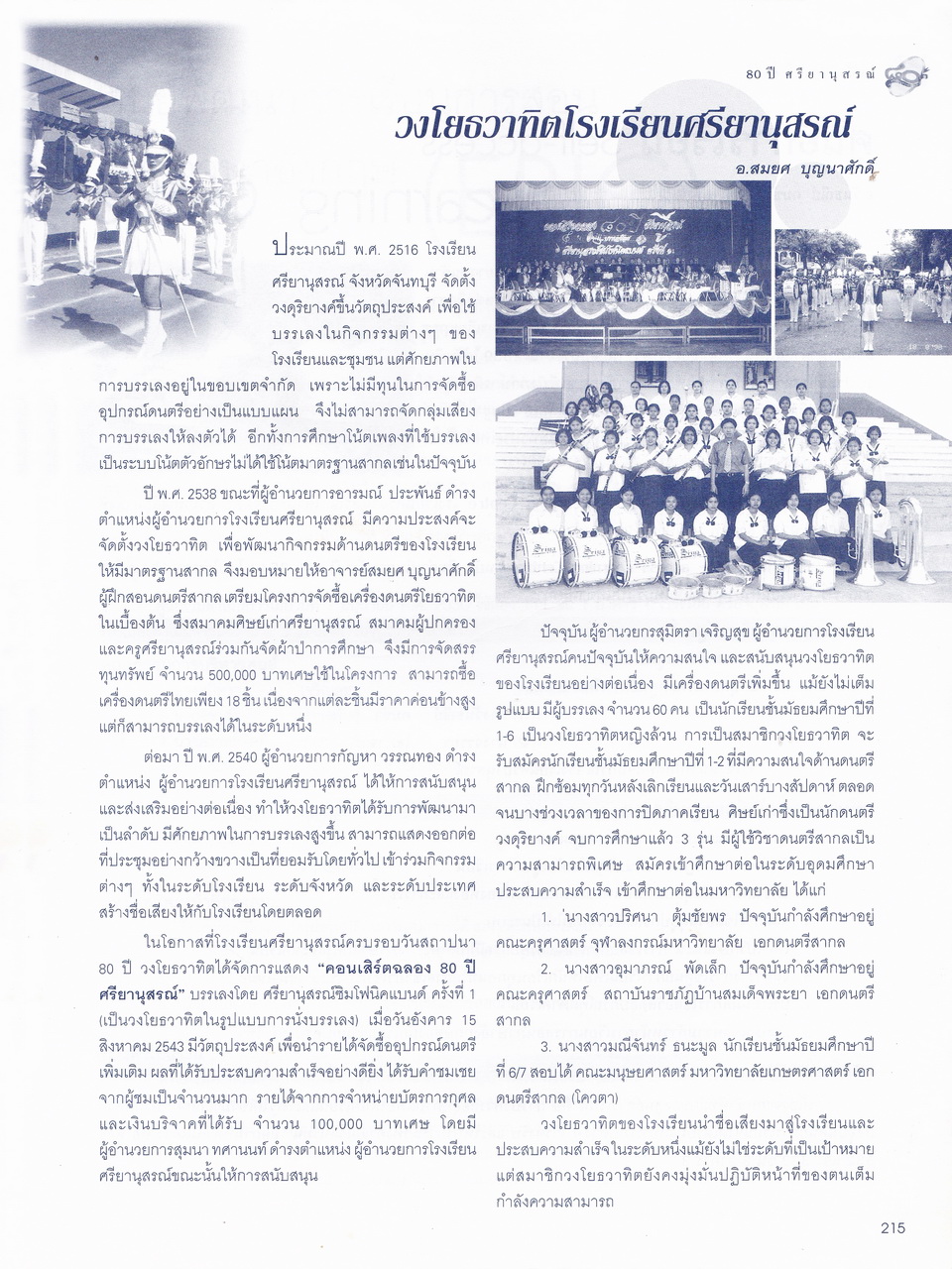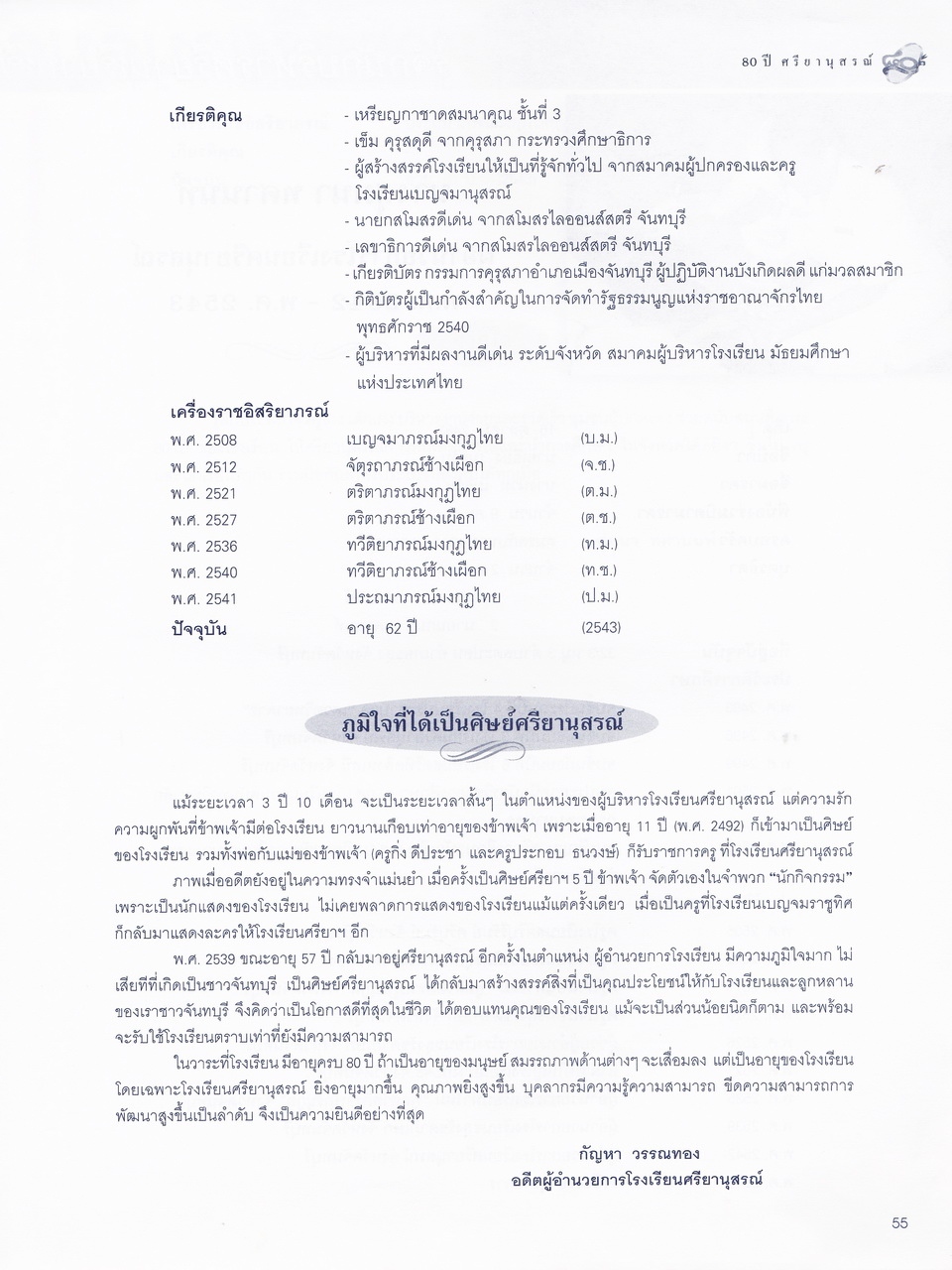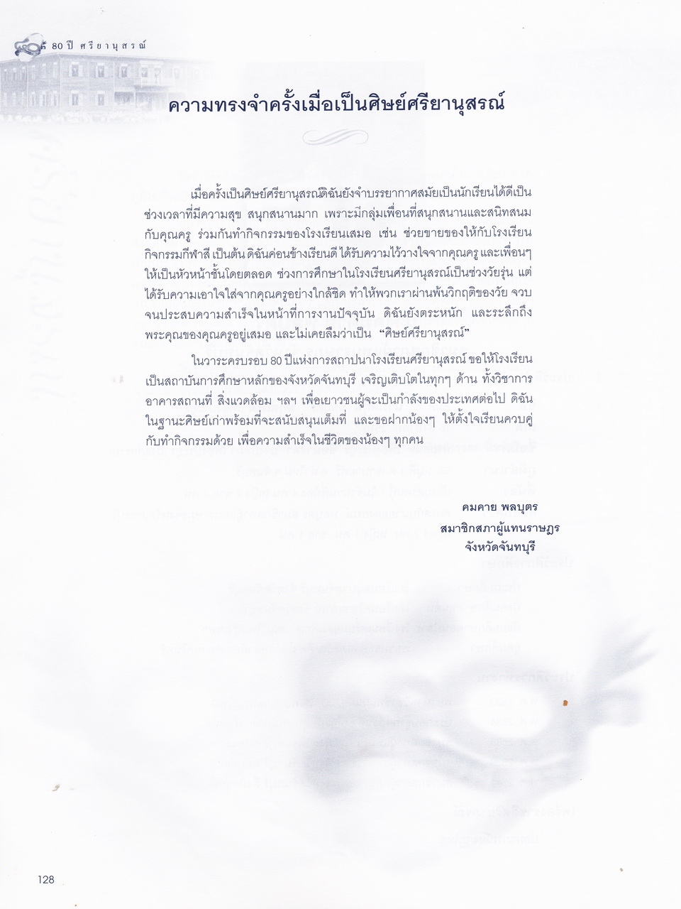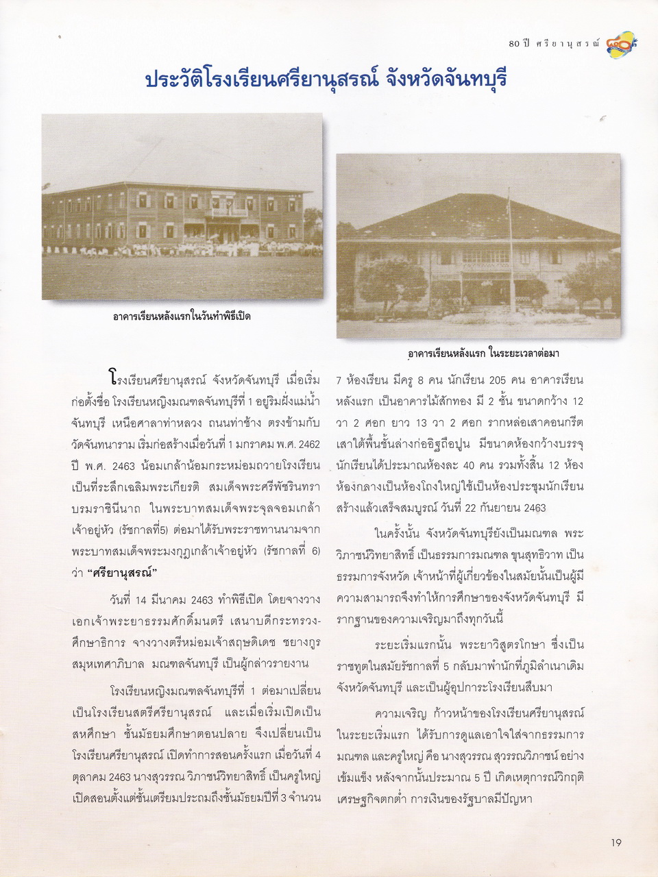 - ครบรอบการสถาปนา 80 ปี โรงเรียนศรียานุสรณ์ จันทบุรี