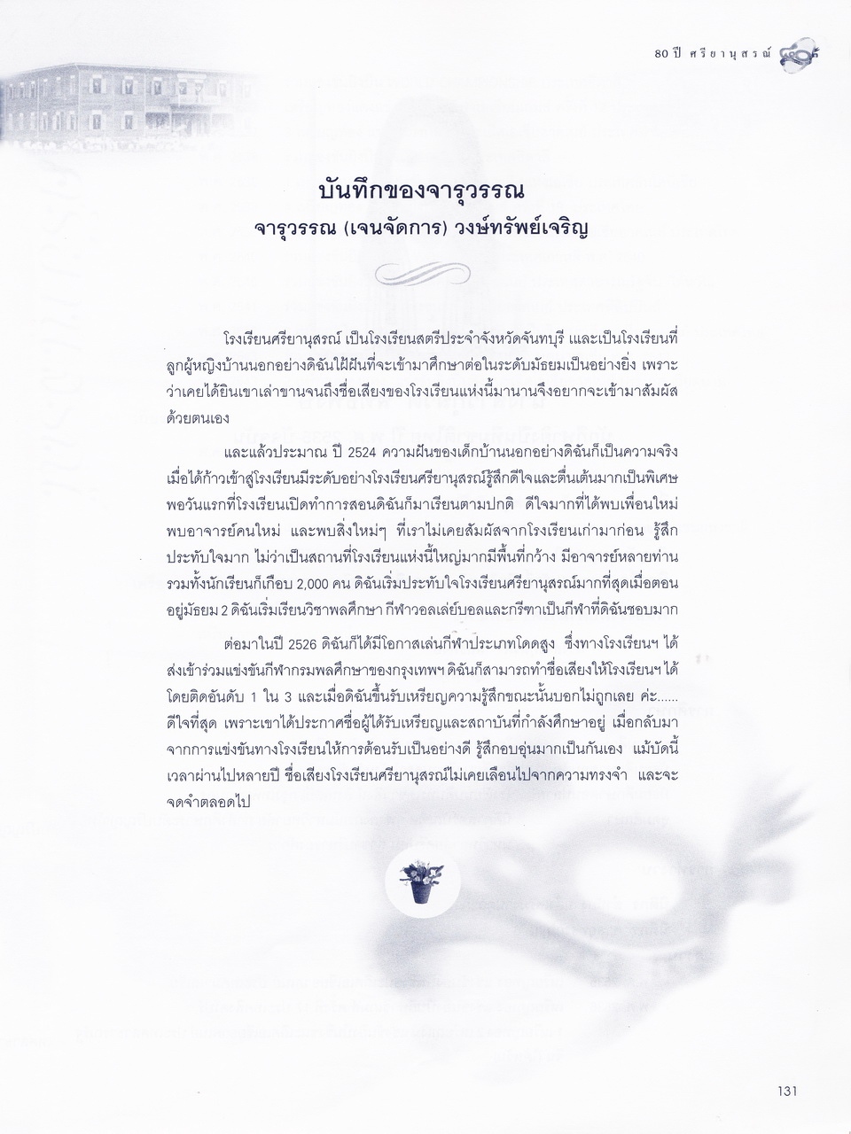 ครบรอบการสถาปนา 80 ปี โรงเรียนศรียานุสรณ์ จันทบุรี