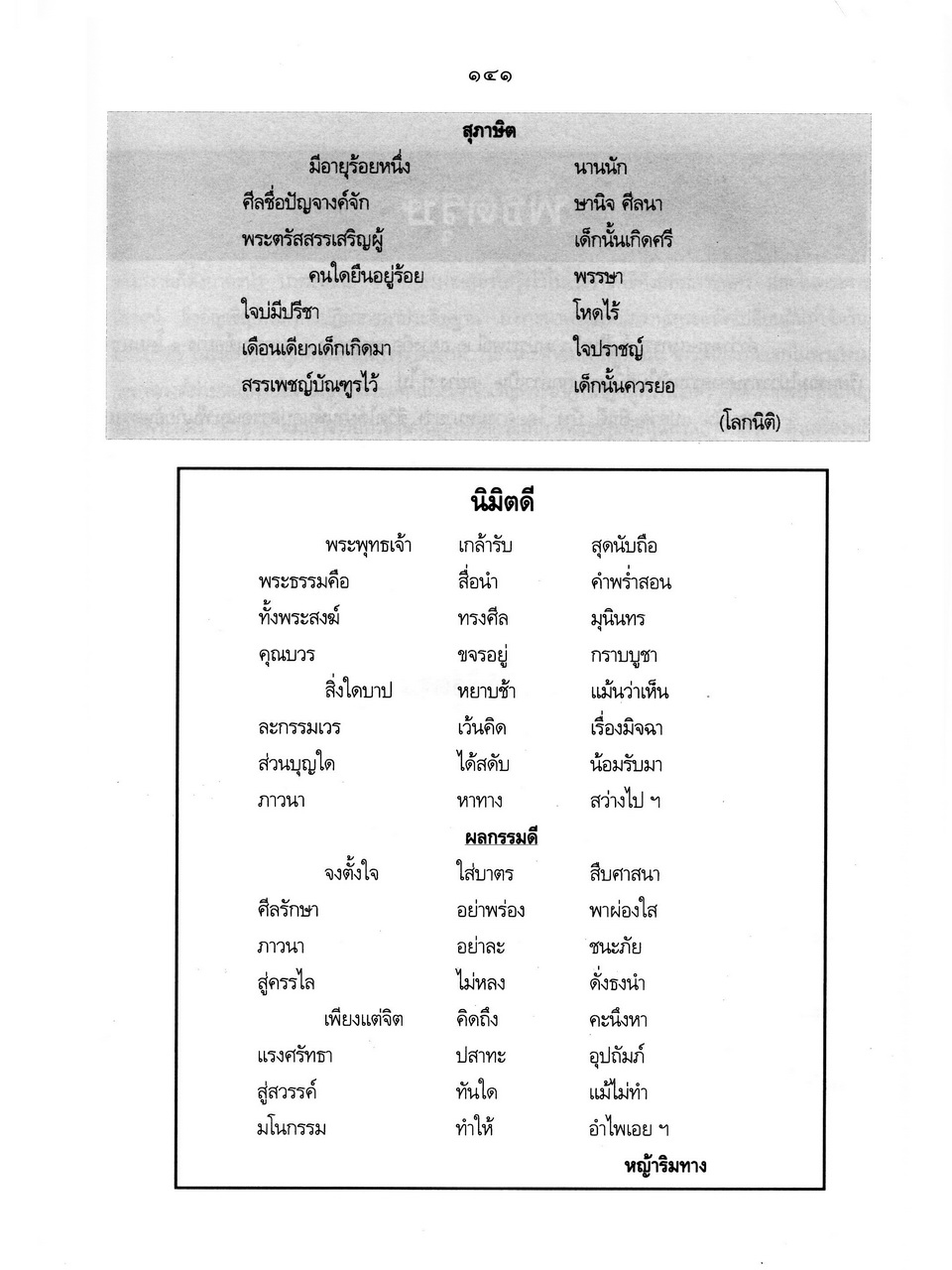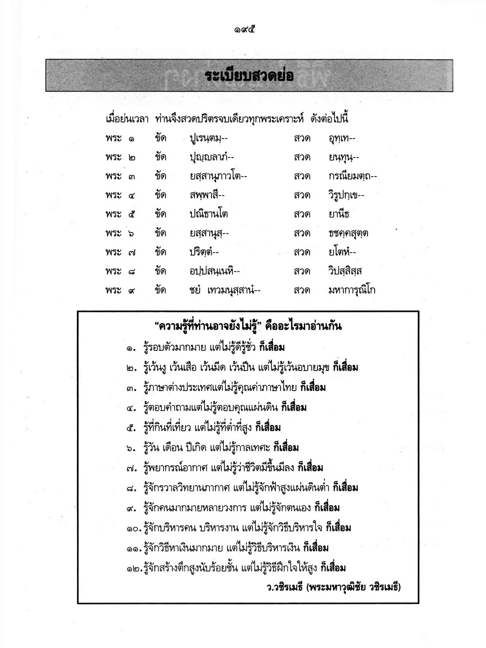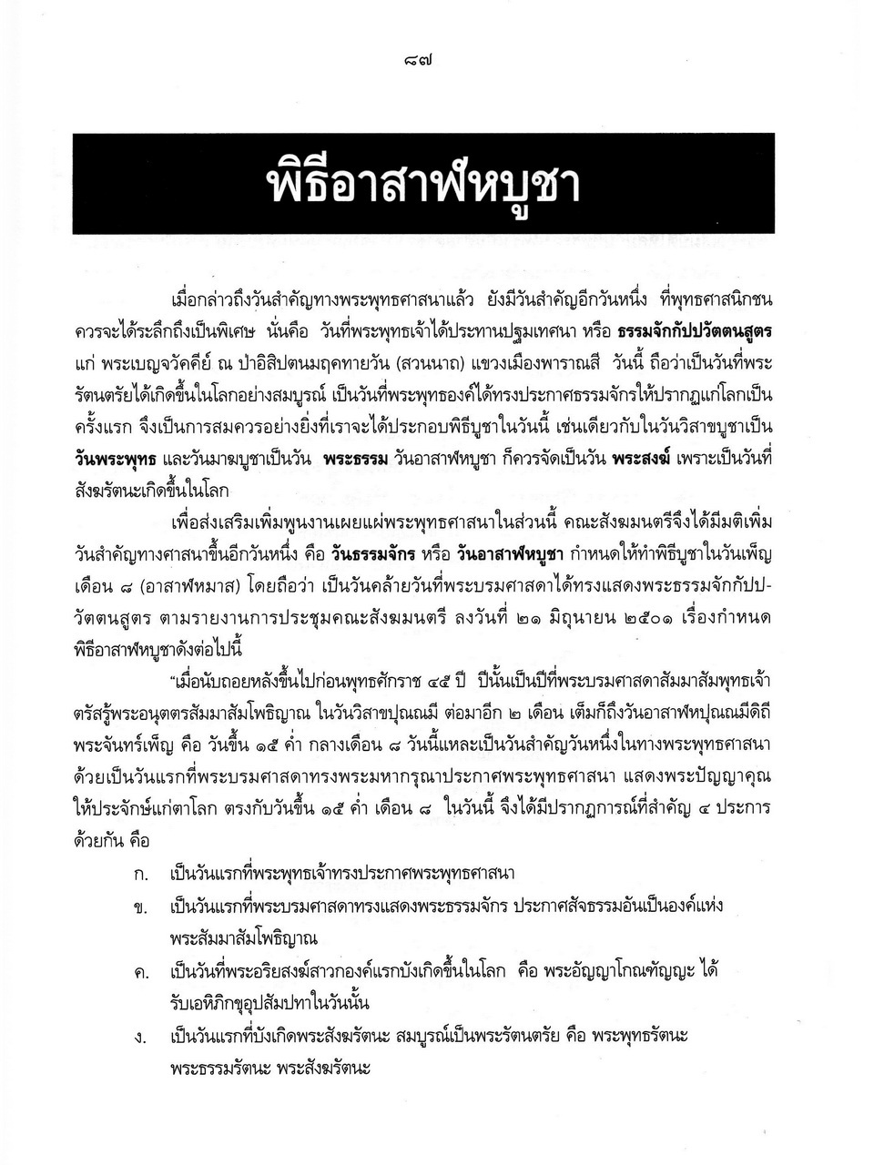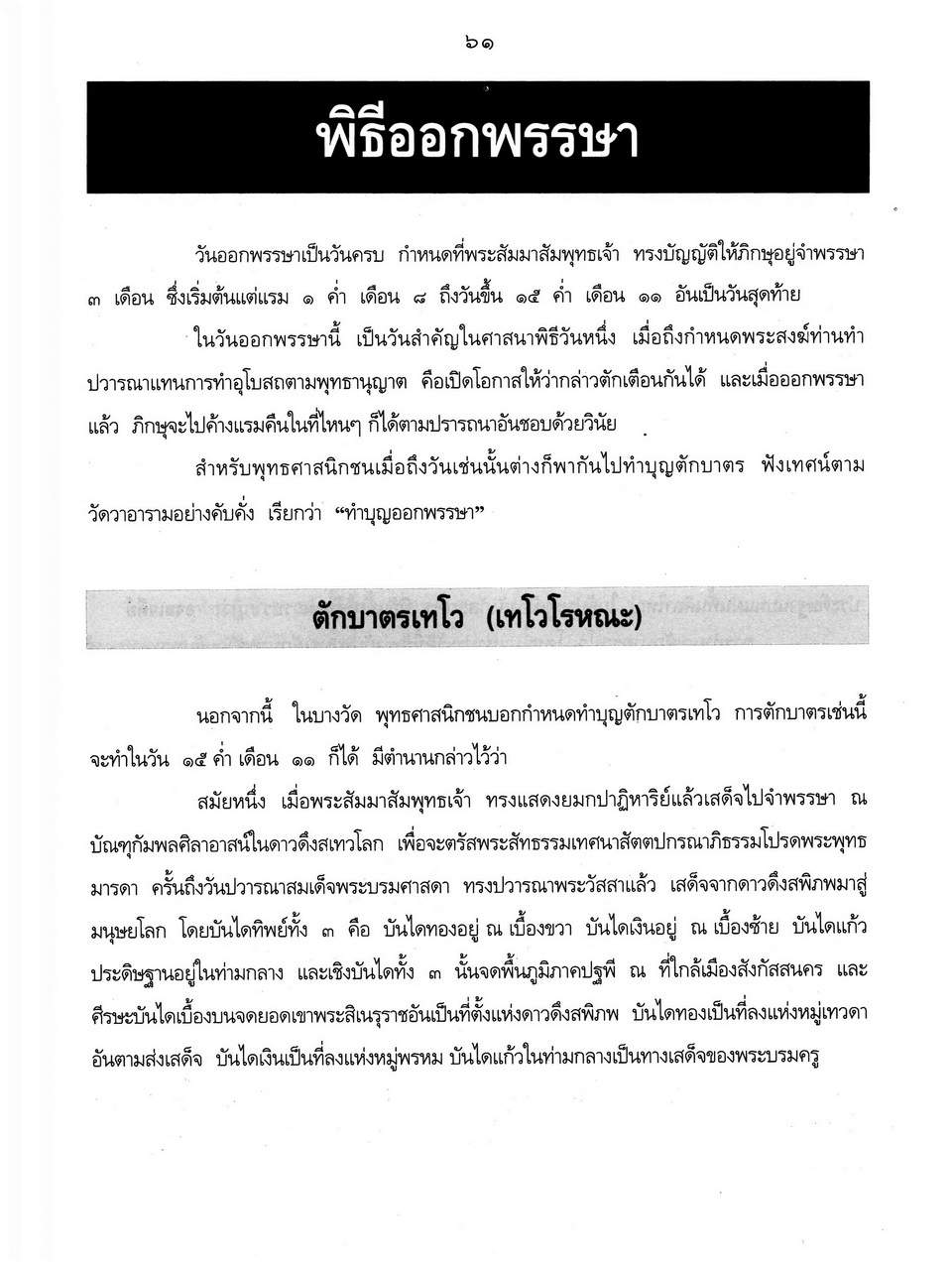 - เริ่มเรื่องเป็นประวัติของพระราชจันทโมลี(ประเสริฐ วิมโล)และต่อด้วย เรื่องประมวลพิธีมงคลไทย ได้แก่ ระเบียบการทำบุญทั่วไป พิธีมงคลทำขวัญวัน -เดือน พิธีมงคลโกนผมไฟ พิธีมงคลการตั้งชื่อ พิธีมงคลโกนจุก พิธีบายศรี พิธีมงคลบรรพชา พิธีมงคลอุปสมบท พิธีเข้าพรรษา พิธีออกพรรษา พิธีทอดกฐิน พิธีกราลกฐินพิธีมาฆบูชา พิธีทอดผ้าป่า พิธีวิสาขบูชา พิธีอาสาฬหบูชา พิธีมงคลแต่งงาน พิธีปลูกบ้าน พิธีตั้งศาลพระภูมิ พิธีทำขวัญขึ้นบ้านใหม่ พิธีการทำบุญบ้าน พิธีทำบุญอายุ พิธีตรุษ พิธีสงกรานต์ พิธีแรกนาขวัญ พิธีพืชมงคล พิธีสารท พิธีลอยกระทง พิธีทำบุญปีใหม่ พิธีสวดมนต์ พิธีทำบุญต่างๆ