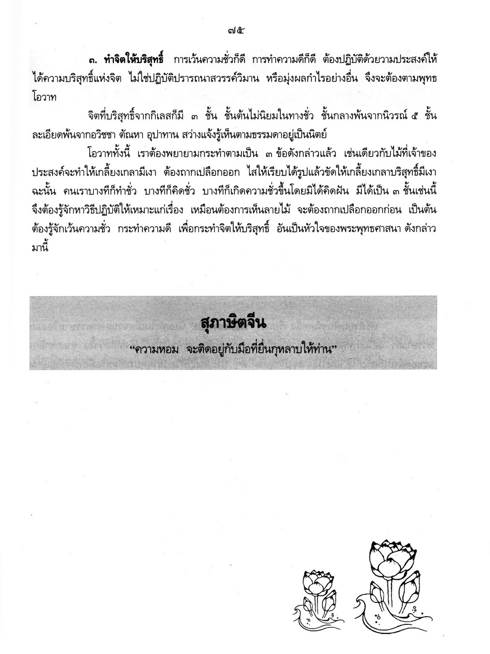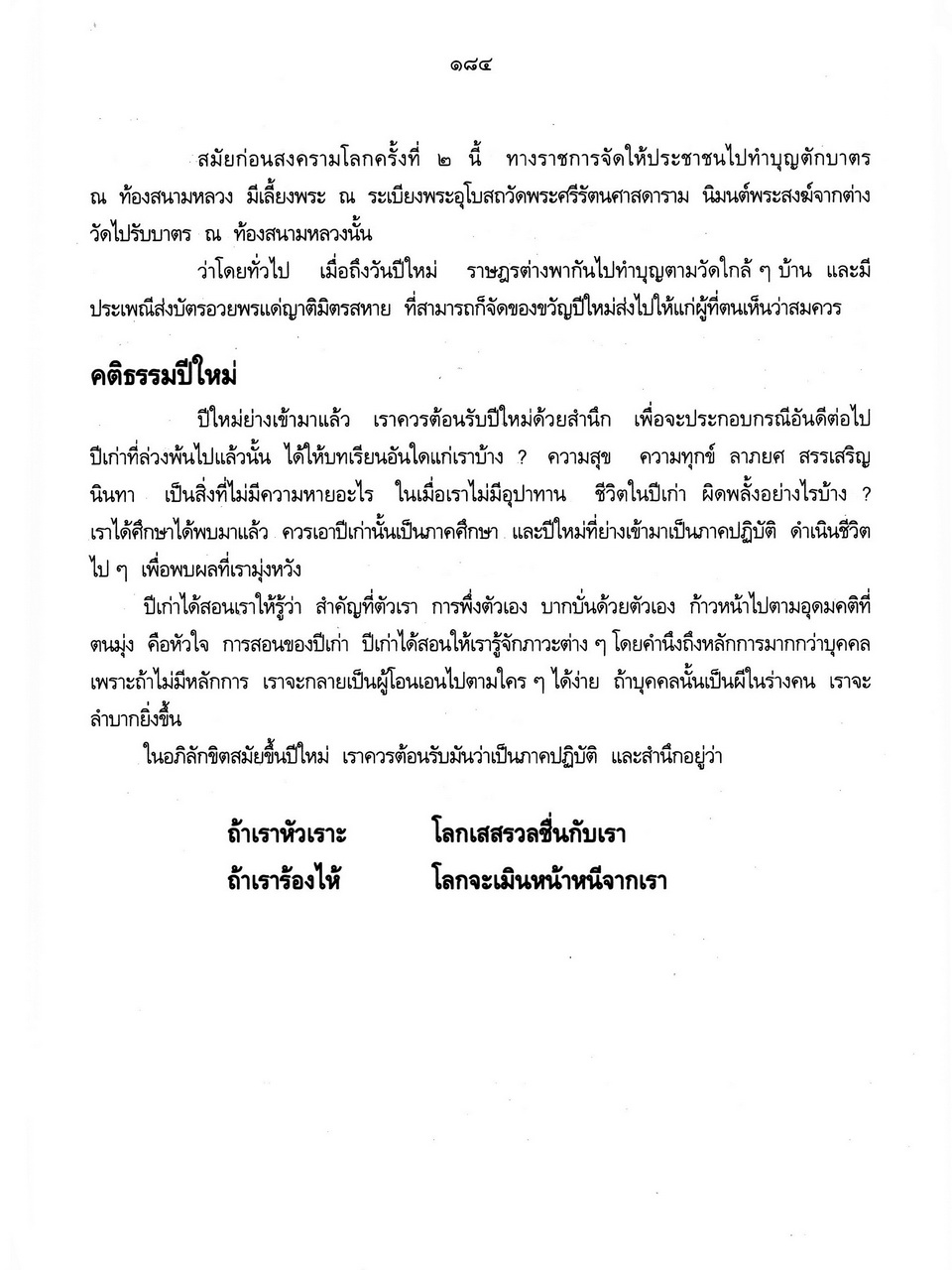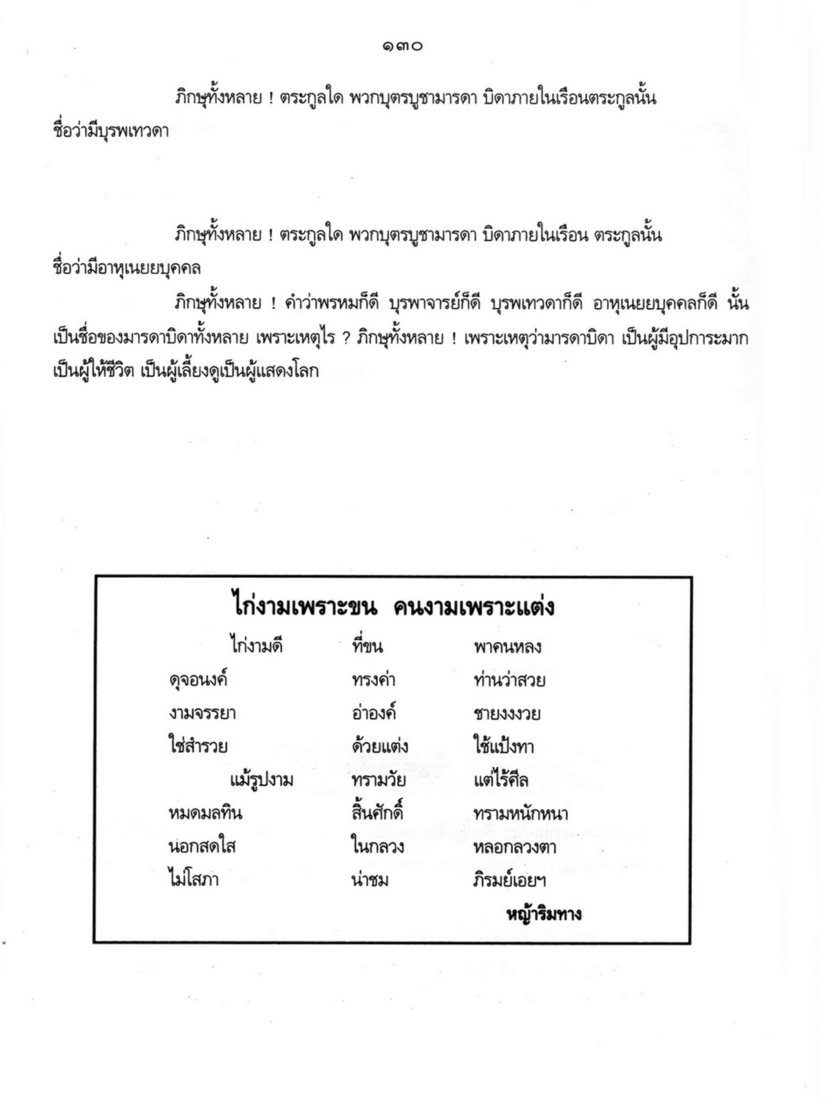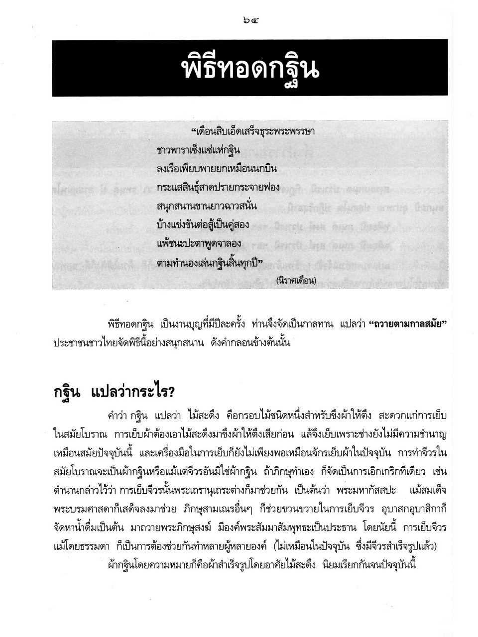 - เริ่มเรื่องเป็นประวัติของพระราชจันทโมลี(ประเสริฐ วิมโล)และต่อด้วย เรื่องประมวลพิธีมงคลไทย ได้แก่ ระเบียบการทำบุญทั่วไป พิธีมงคลทำขวัญวัน -เดือน พิธีมงคลโกนผมไฟ พิธีมงคลการตั้งชื่อ พิธีมงคลโกนจุก พิธีบายศรี พิธีมงคลบรรพชา พิธีมงคลอุปสมบท พิธีเข้าพรรษา พิธีออกพรรษา พิธีทอดกฐิน พิธีกราลกฐินพิธีมาฆบูชา พิธีทอดผ้าป่า พิธีวิสาขบูชา พิธีอาสาฬหบูชา พิธีมงคลแต่งงาน พิธีปลูกบ้าน พิธีตั้งศาลพระภูมิ พิธีทำขวัญขึ้นบ้านใหม่ พิธีการทำบุญบ้าน พิธีทำบุญอายุ พิธีตรุษ พิธีสงกรานต์ พิธีแรกนาขวัญ พิธีพืชมงคล พิธีสารท พิธีลอยกระทง พิธีทำบุญปีใหม่ พิธีสวดมนต์ พิธีทำบุญต่างๆ