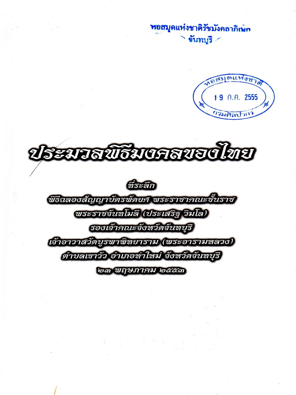 “ประมวลพิธีมงคลของไทย,” D-Library | National Library of Thailand, accessed April 2, 2026, http://164.115.27.97/digital2024/items/show/7321.