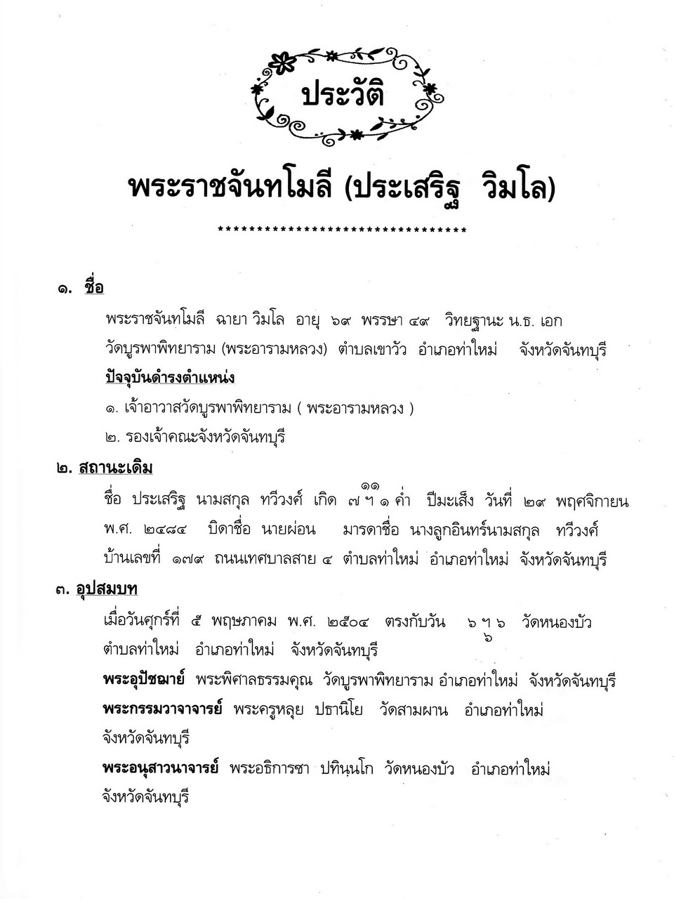- 1.พระราชจันทโมลี(ประเสริฐ วิมโล)