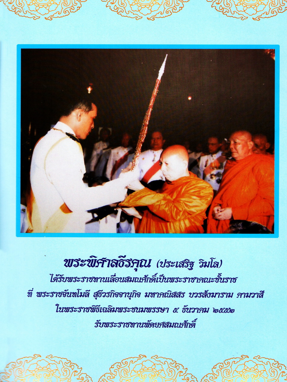 - ที่ระลึกพิธีฉลองสัญญาบัตรพัดยศ พระราชาคณะชั้นราช พระราชจันทโมลี (ประเสริฐ วิมโล) รองเจ้าคณะจังหวัดจันทบุรี เจ้าอาวาสวัดบูรพาพิทยาราม(พระอารามหลวง)ตำบลเขาวัว อำเภอท่าใหม่ จังหวัดจันทบุรี 23 พฤษภาคม 2553