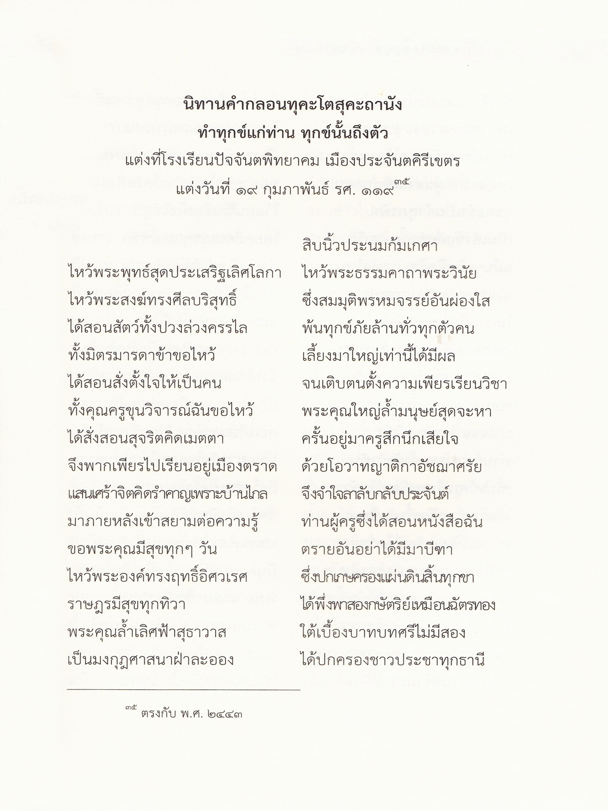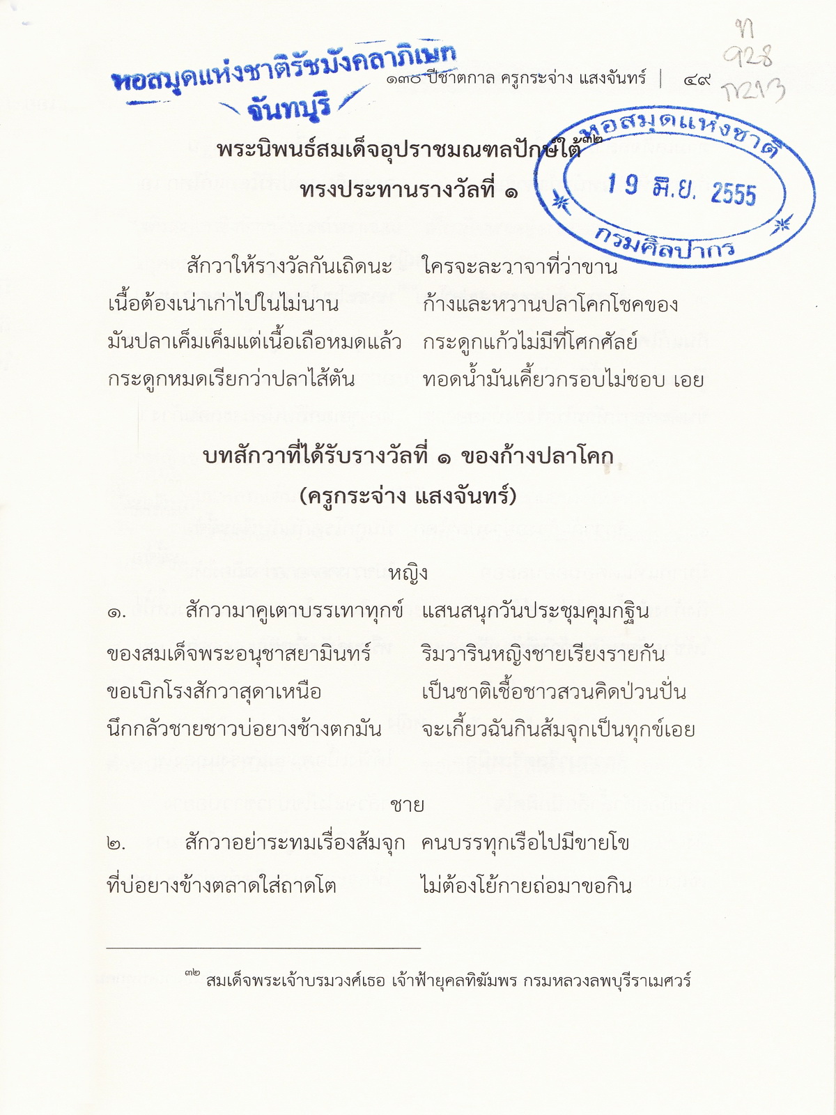 - ต้นฉบับอยู่ที่ หอสมุดแห่งชาติรัชมังคลาภิเษก จันทบุรี