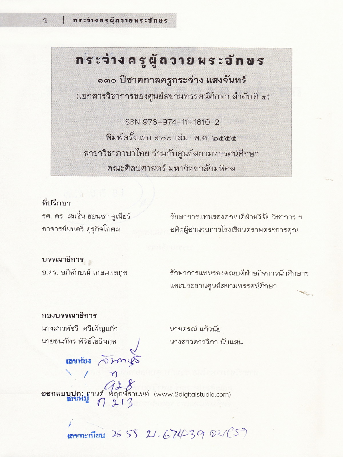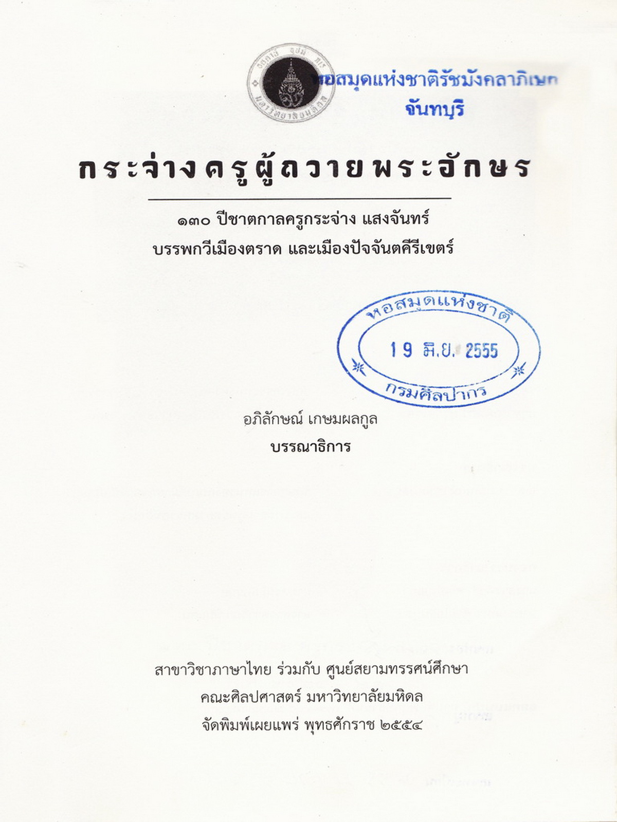 “กระจ่างครูผู้ถวายพระอักษร,” D-Library | National Library of Thailand, accessed April 2, 2026, http://164.115.27.97/digital2024/items/show/7322.