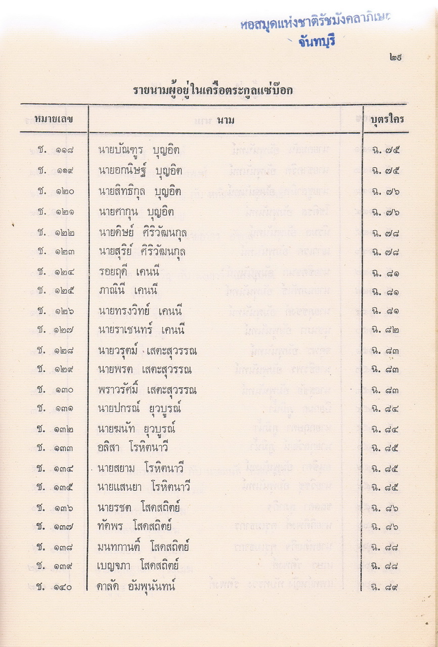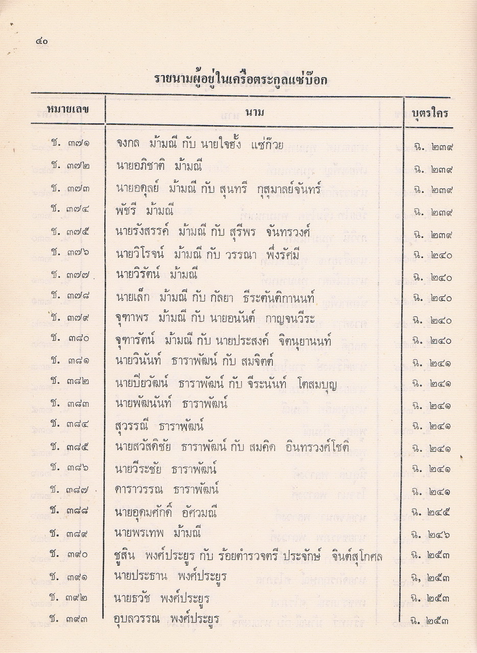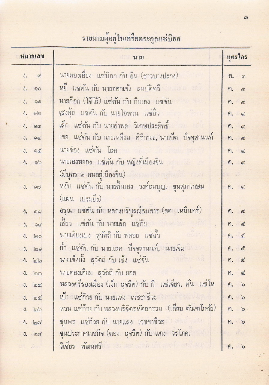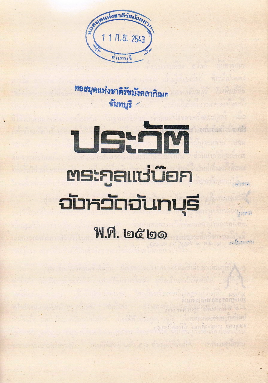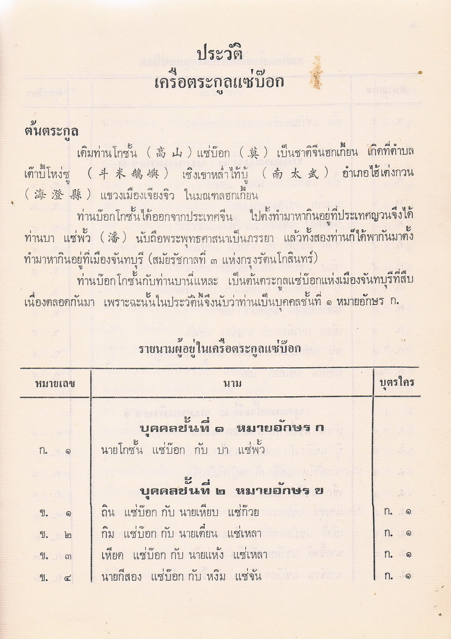 - ประวัติตระกูลแซ่บ๊อก จังหวัดจันทบุรี พ.ศ.2521