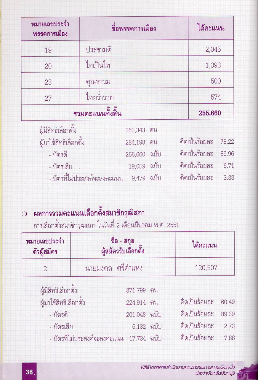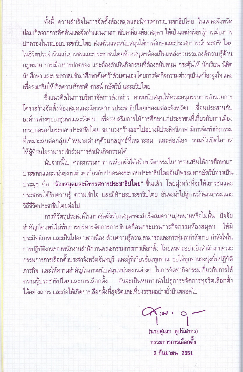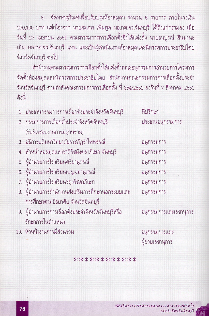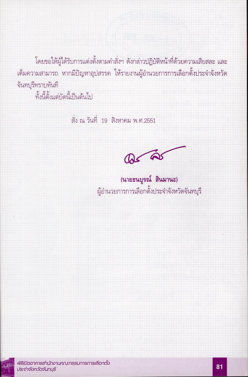- พิมพ์เป็นที่ระลึกในพิธีเปิดสำนักงานคณะกรรมการการเลือกตั้งประจำจังหวัดจันทบุรีและห้องสมุดและนิทรรศการประชาธิปไตย 26 กันยายน 2551