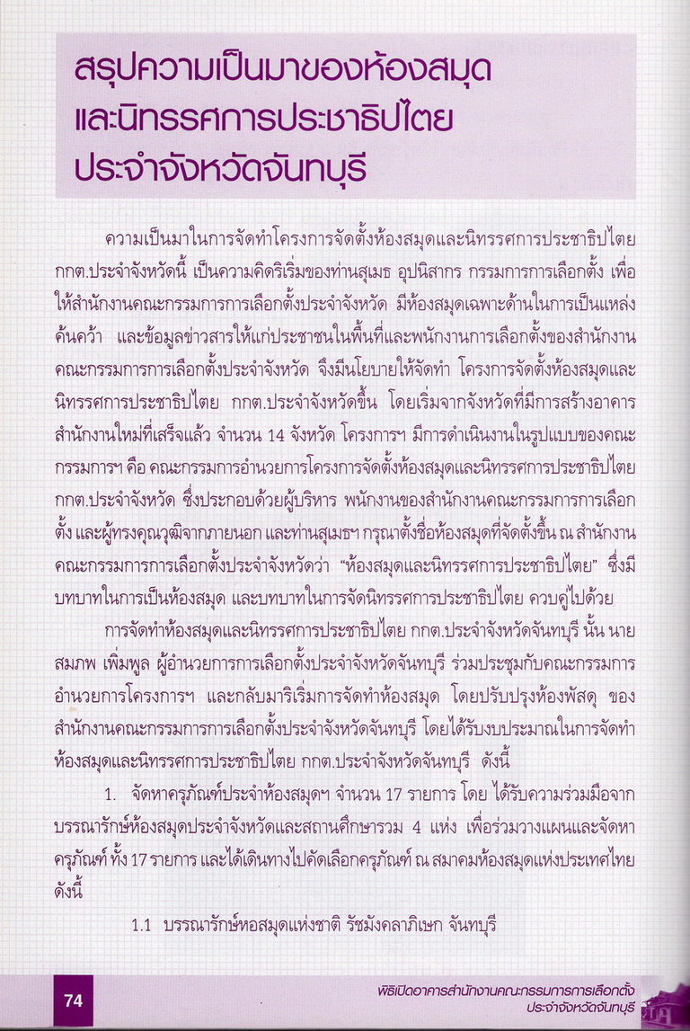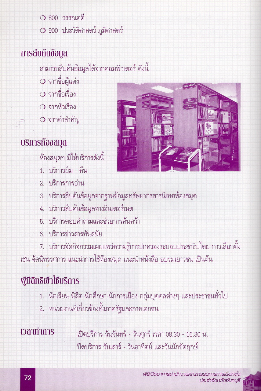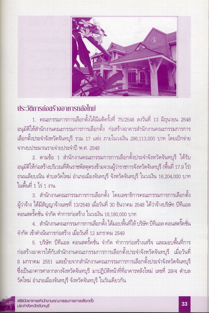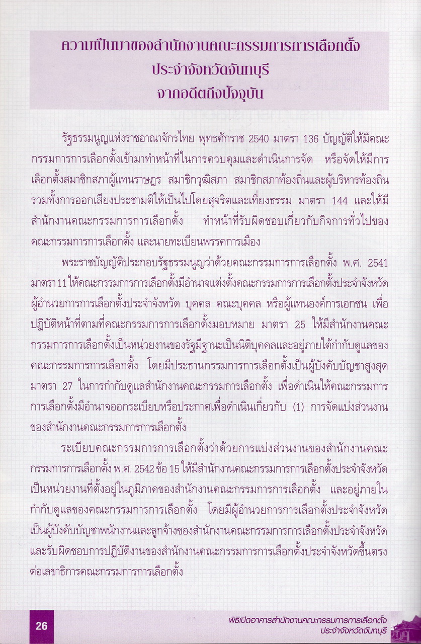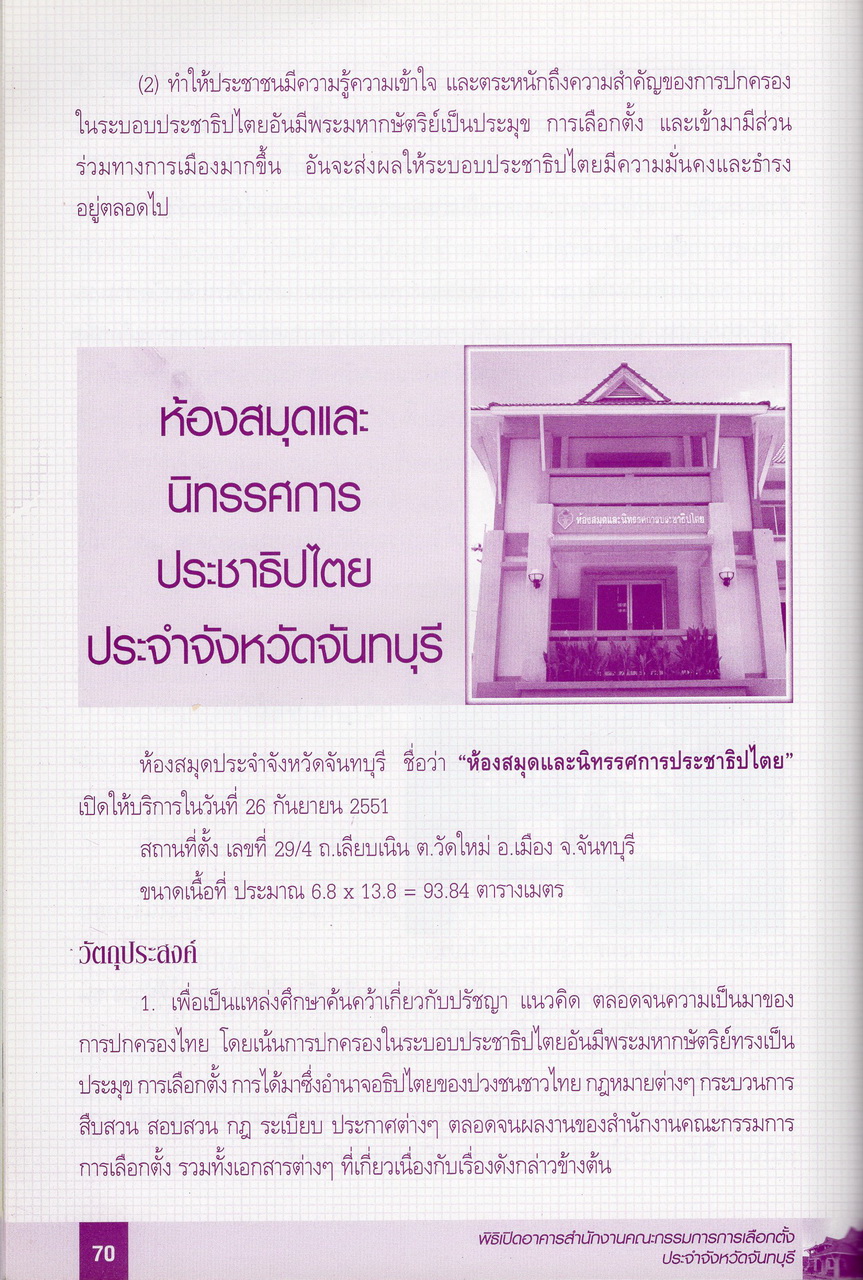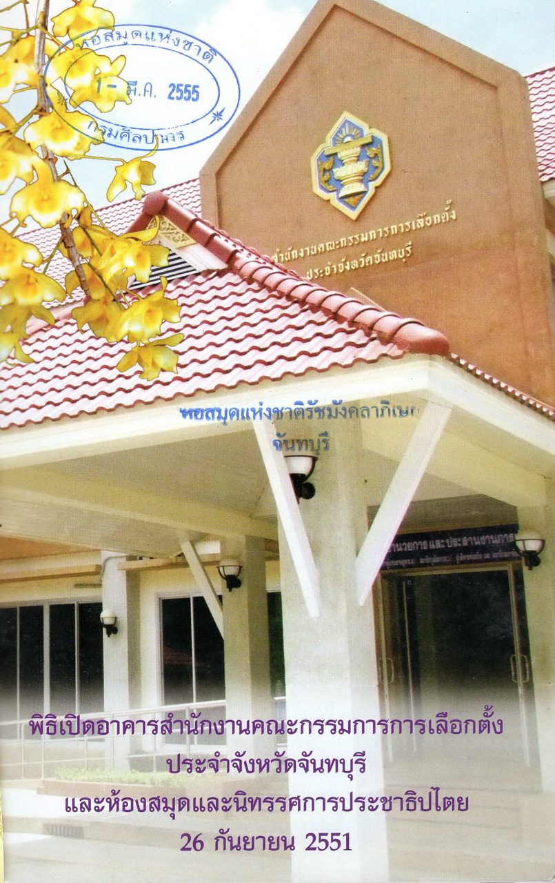 สำนักงานคณะกรรมการการเลือกตั้งประจำจังหวัดจันทบุรี , “พิธีเปิดอาคารสำนักงานคณะกรรมการการเลือกตั้งประจำจังหวัดจันทบุรี และห้องสมุดและนิทรรศการ,” D-Library | National Library of Thailand, accessed April 2, 2026, http://164.115.27.97/digital2024/items/show/7324.