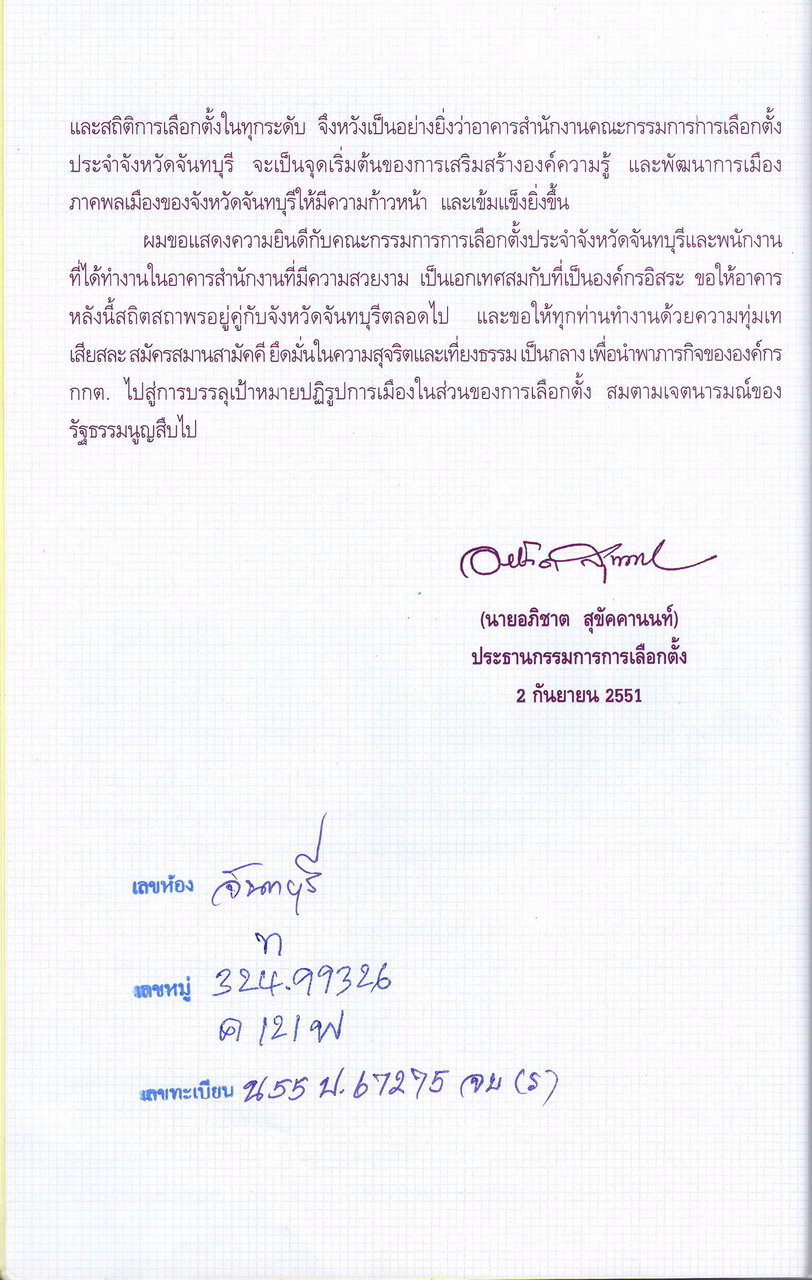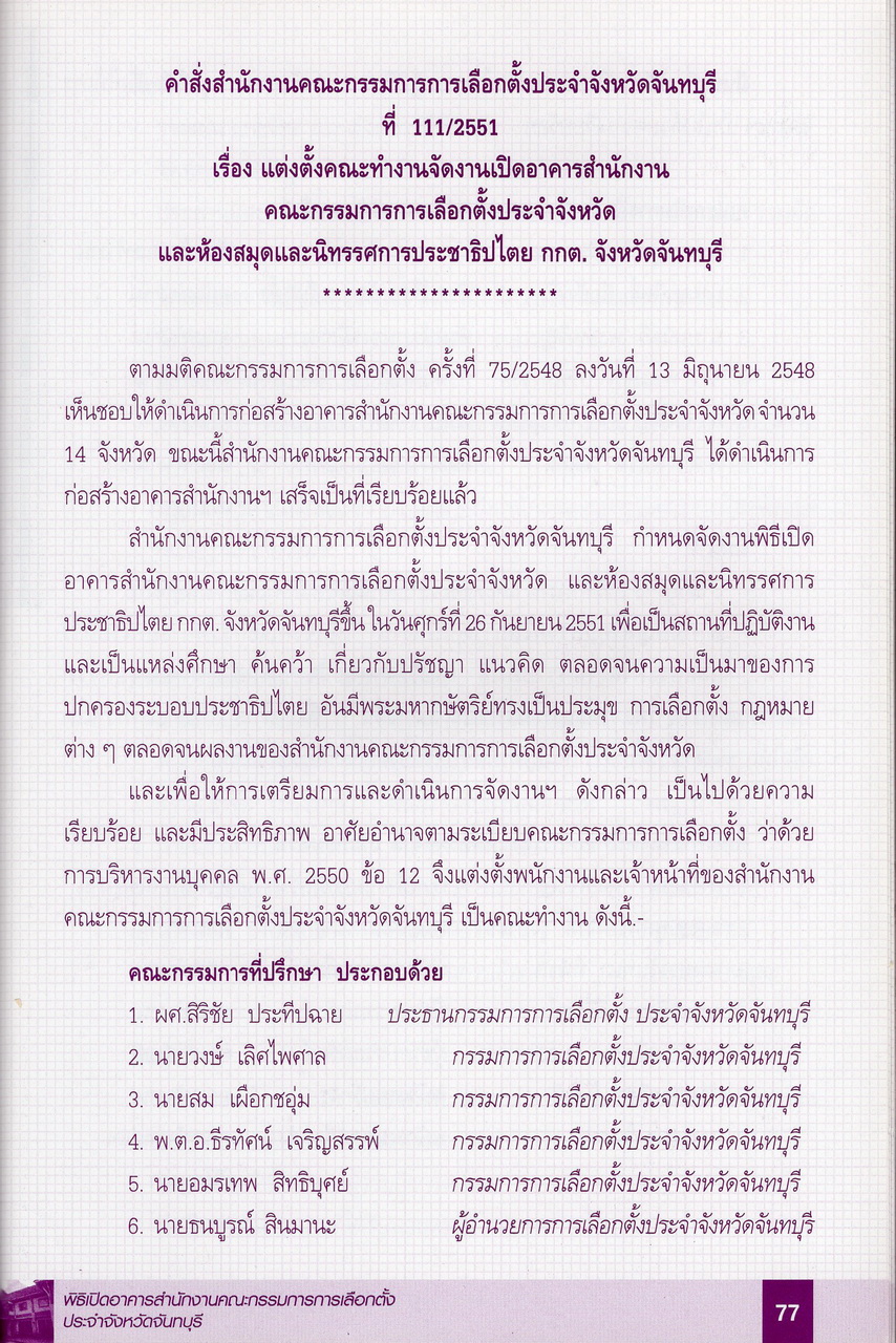 - พิธีเปิดอาคารสำนักงานคณะกรรมการการเลือกตั้งประจำจังหวัดจันทบุรี และห้องสมุดและนิทรรศการ