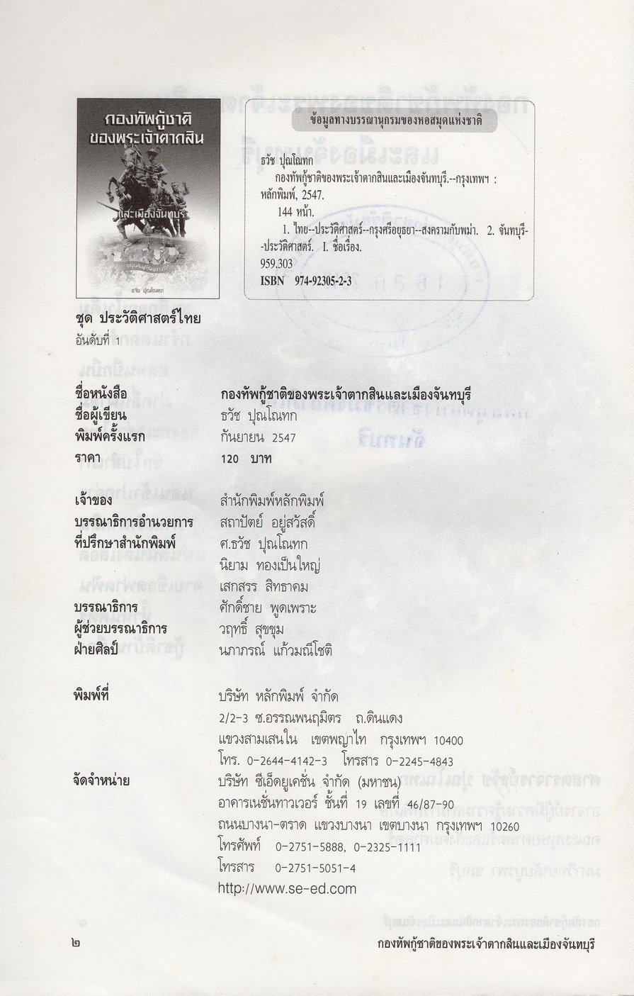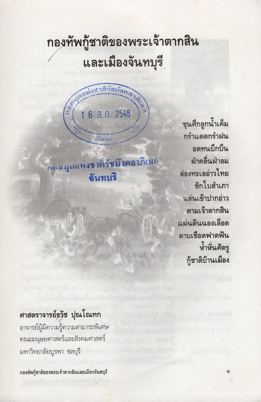 ธวัช ปุณโณทก, “กองทัพกู้ชาติของพระเจ้าตากสินและเมืองจันทบุรี,” D-Library | National Library of Thailand, accessed April 2, 2026, http://164.115.27.97/digital2024/items/show/7340.