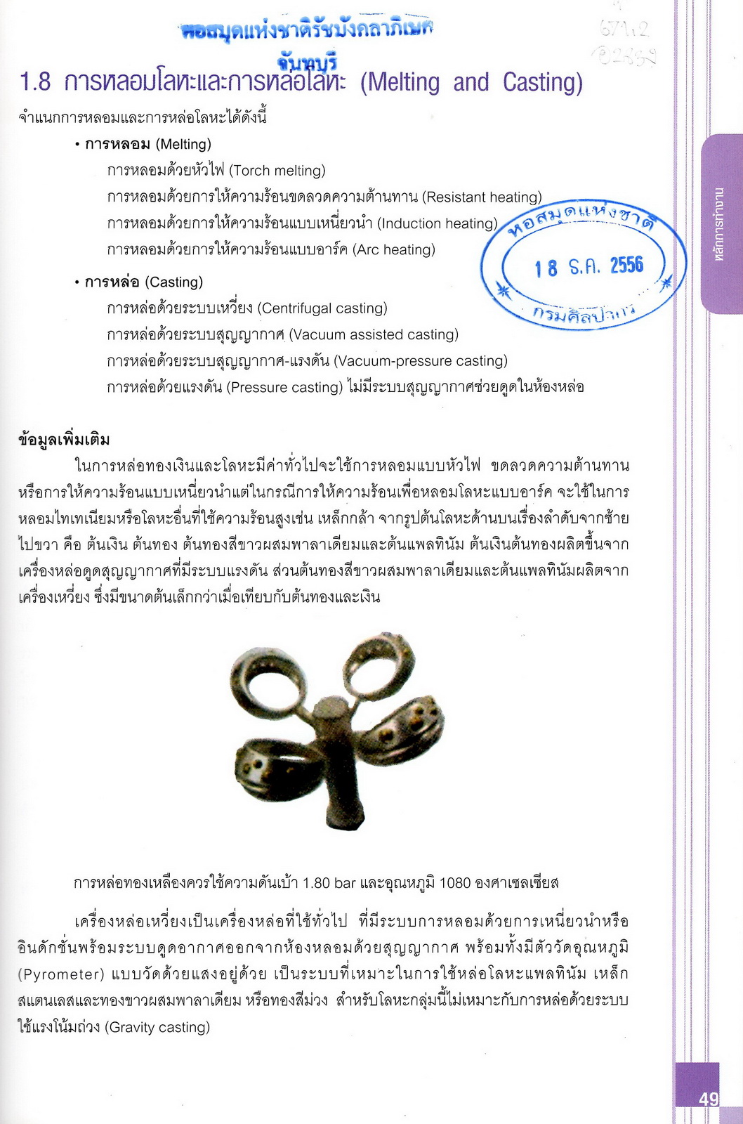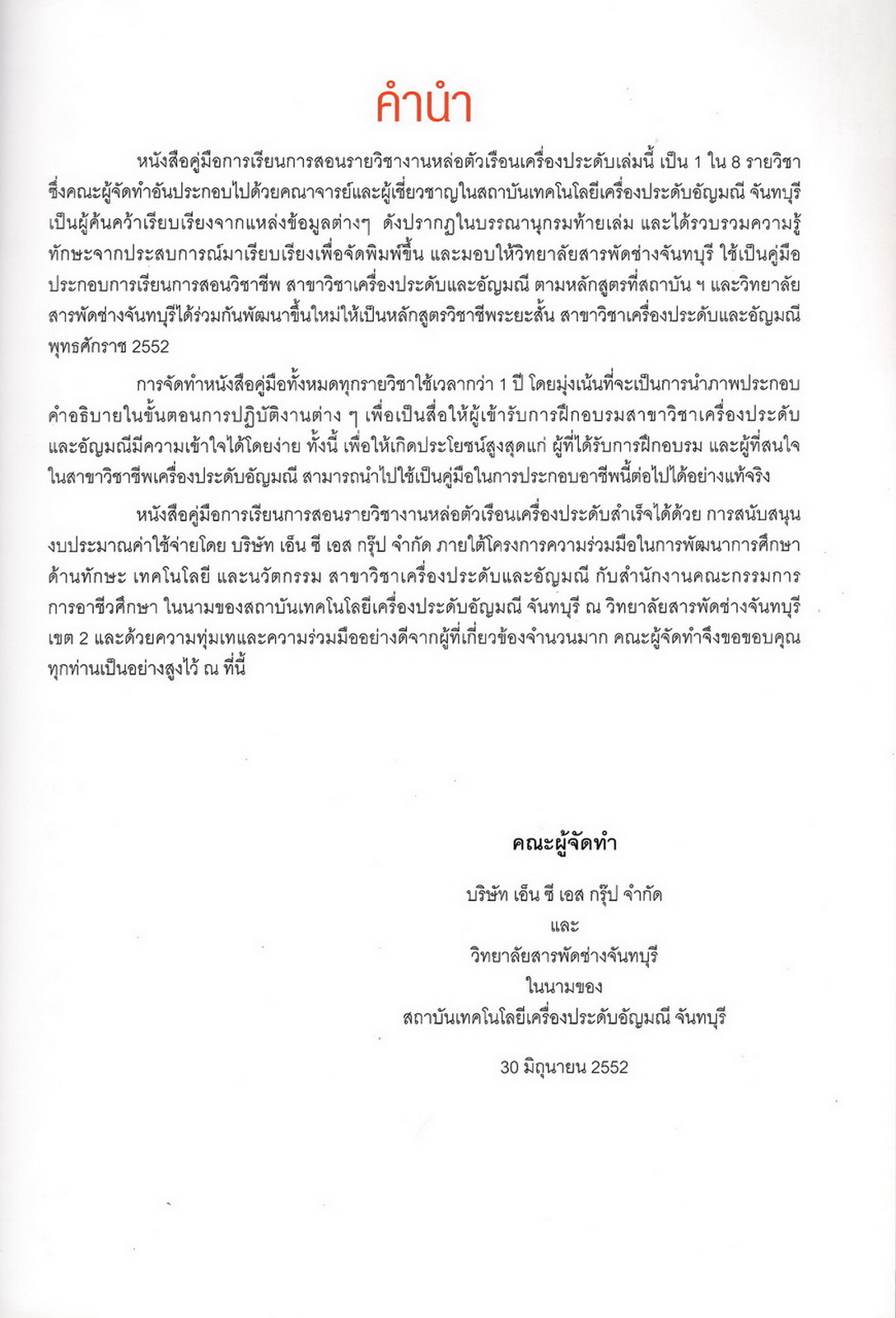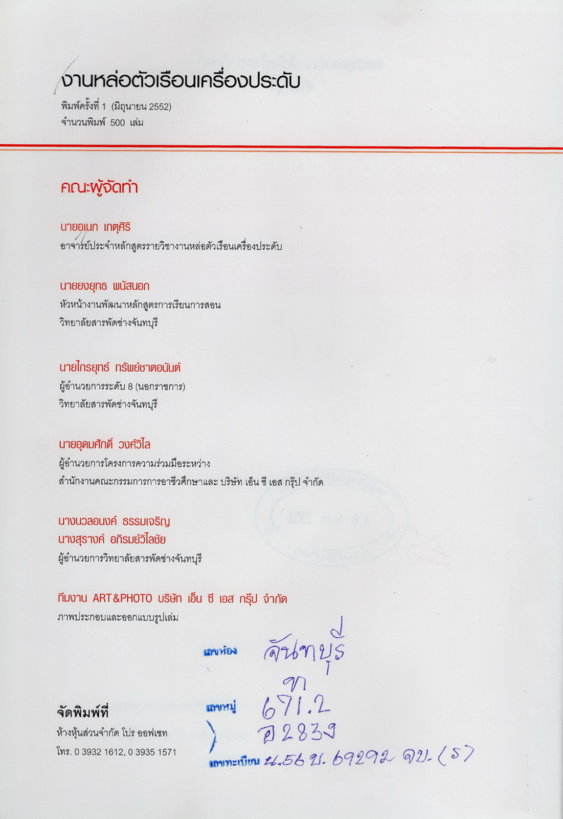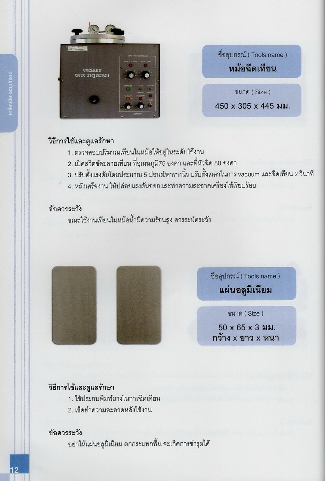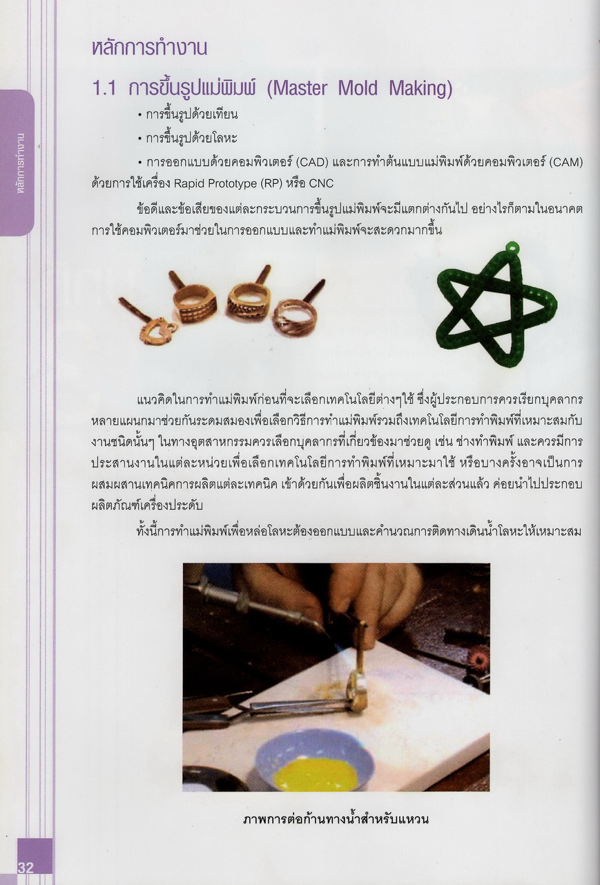- เน้นหนังสือคู่มือการเรียนการสอนรายวิชางานหล่อตัวเรือนเครื่องประดับของวิทยาลัยสารพัดช่าง จันทบุรี
