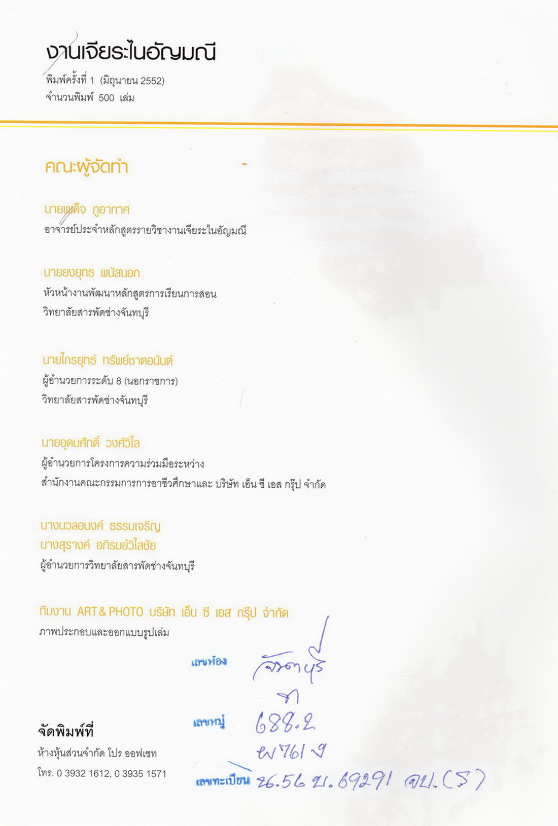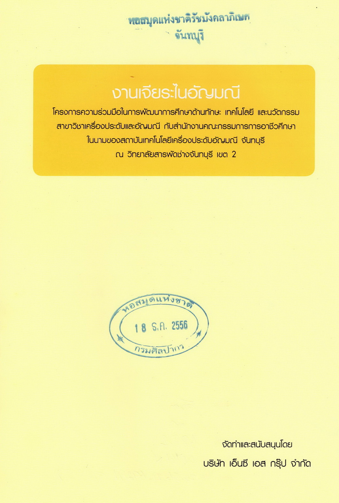 - จัดพิมพ์เป็นหนังสือคู่มือการเรียนการสอนรายวิชางานเจียระไนอัญมณี สถาบันเทคโนโลยีเครื่องประดับอัญมณีจันทบุรี วิทยาลัยสารพัดช่างจันทบุรี