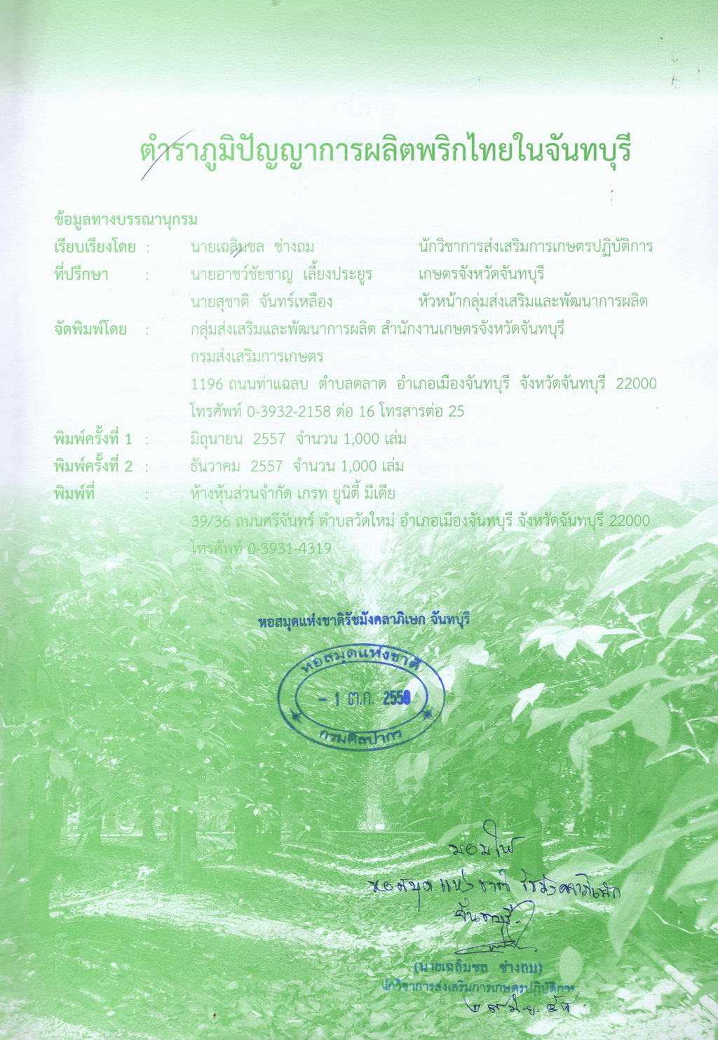 - ตำราภูมิปัญญาการผลิตพริกไทยในจันทบุรี