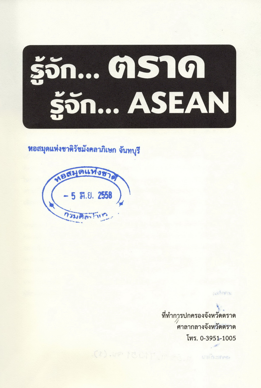 ที่ทำการปกครองจังหวัดตราด, “รู้จักตราด รู้จักอาเซี่ยน,” D-Library | National Library of Thailand, accessed April 2, 2026, http://164.115.27.97/digital2024/items/show/7351.