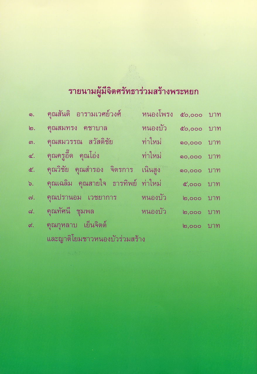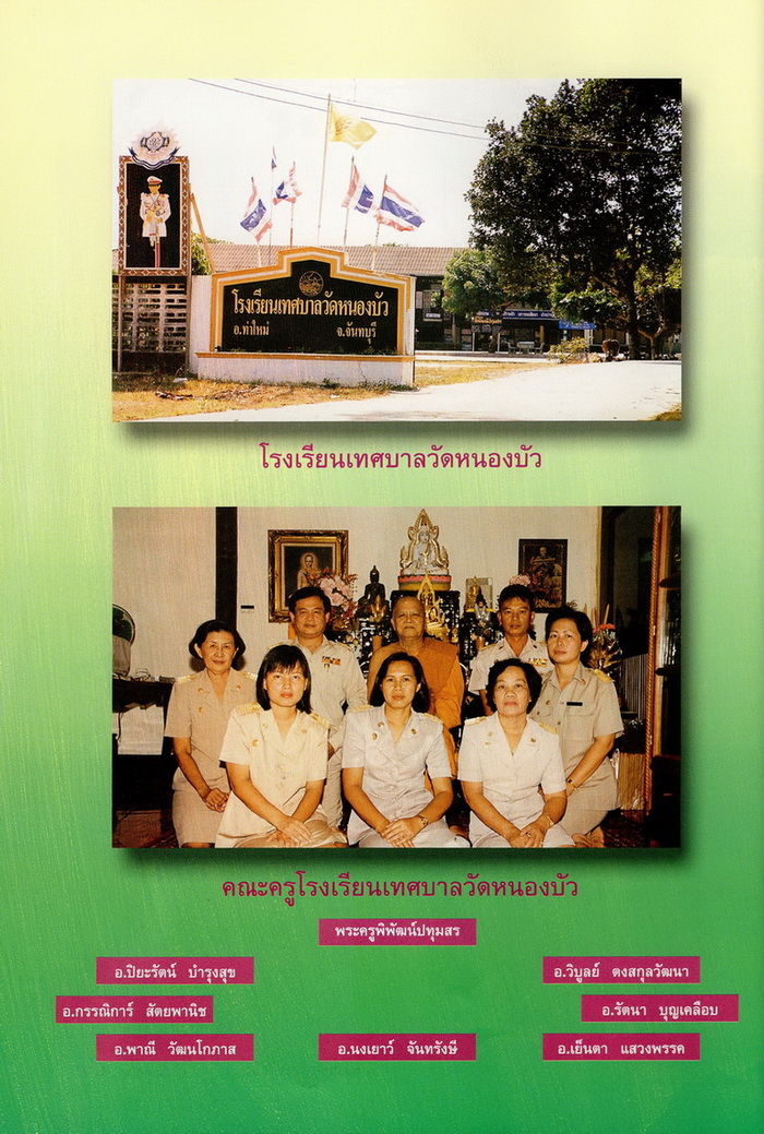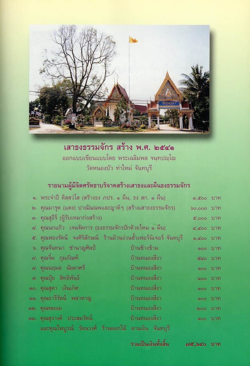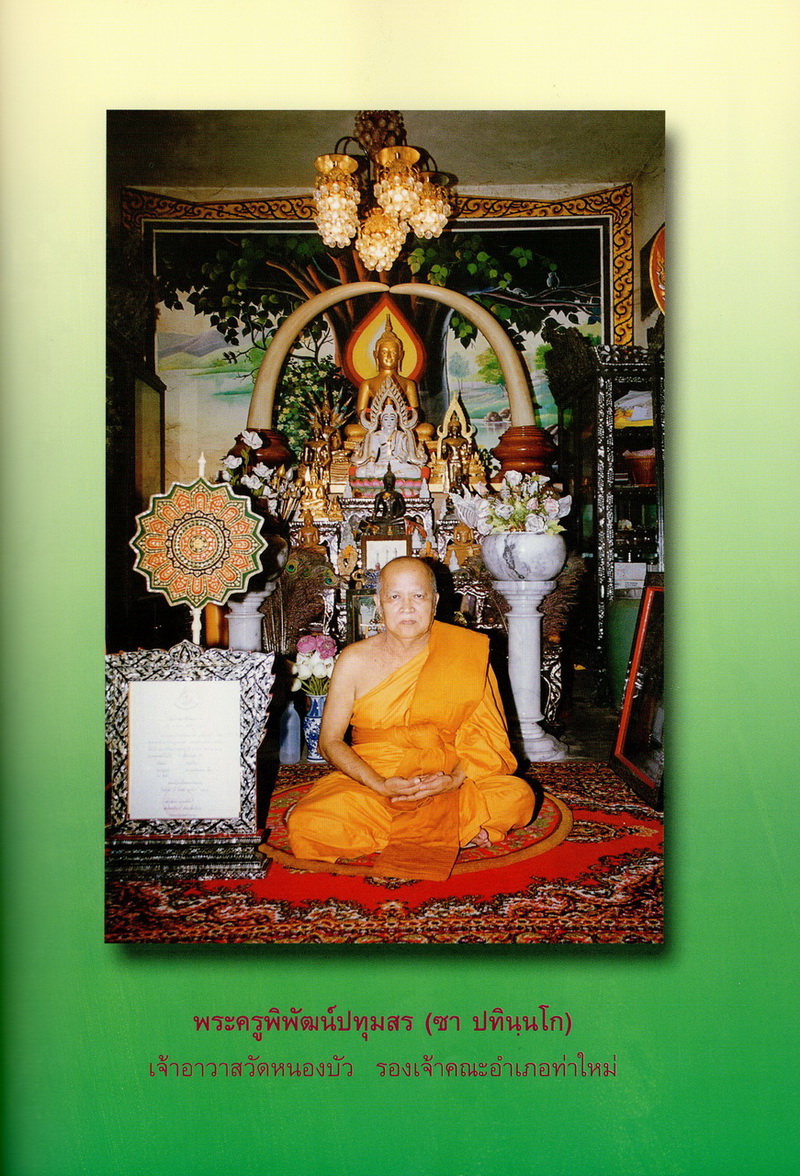 - ที่ระลึกงานฉลองอายุครบ 72 ปี พระครูพิพัฒน์ปทุมสร เจ้าอาวาสวัดหนองบัว รองเจ้าคณะอำเภอท่าใหม่ ตำบลท่าใหม่ จังหวัดสระบุรี 18 ตุลาคม 2543