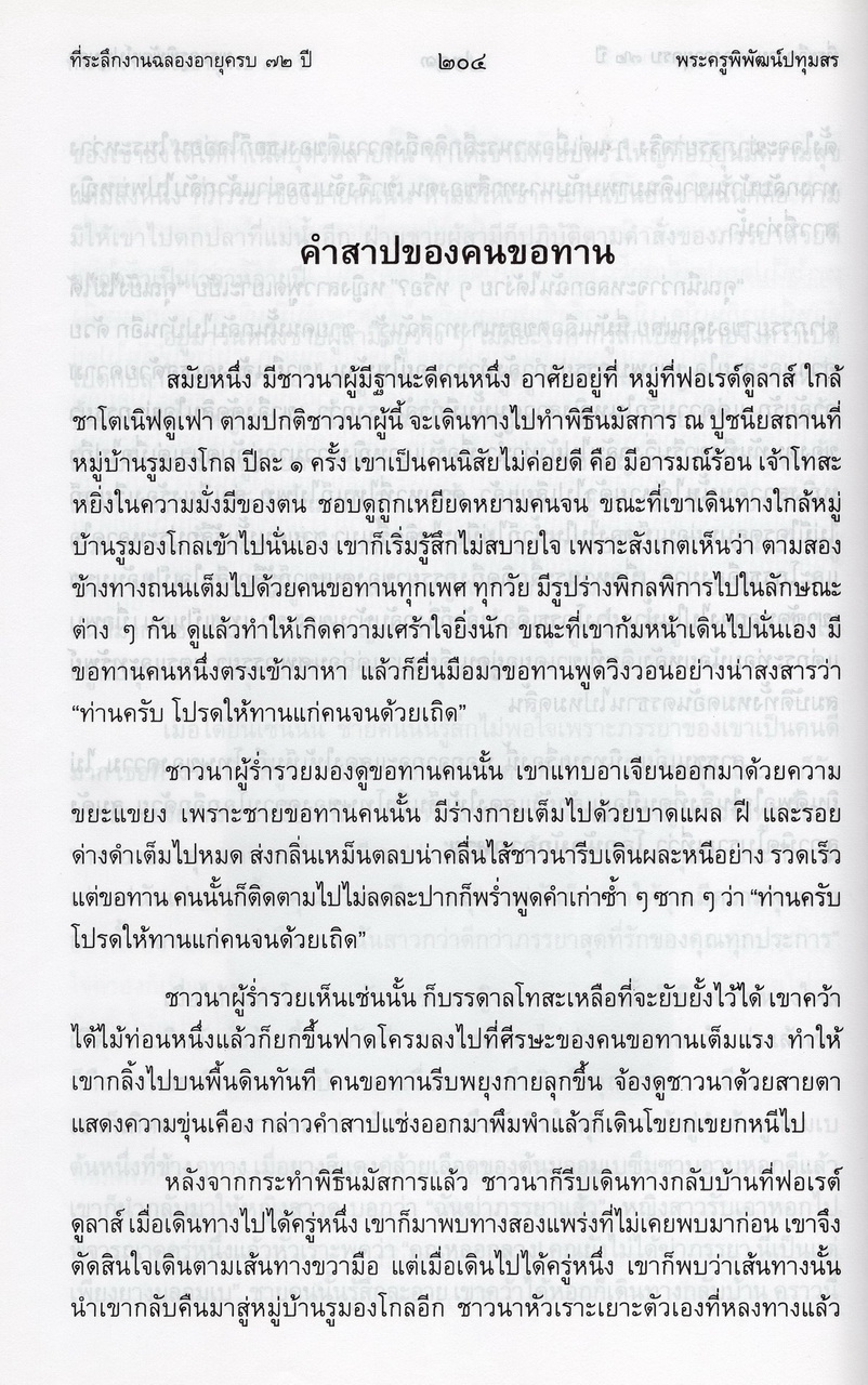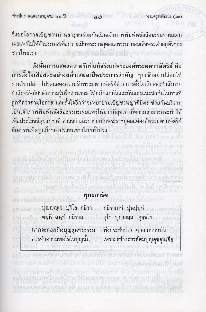 ที่ระลึกงานฉลองอายุครบ 72 ปี พระครูพิพัฒน์ปทุมสร