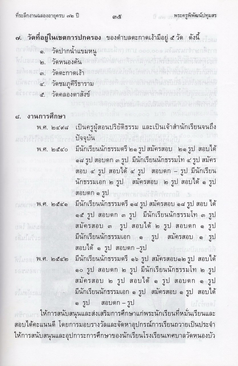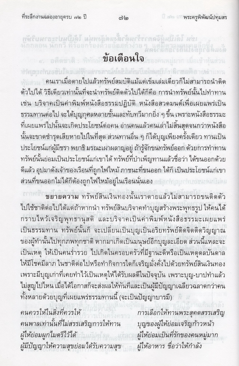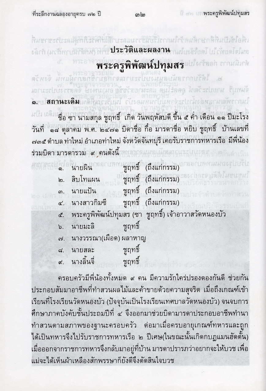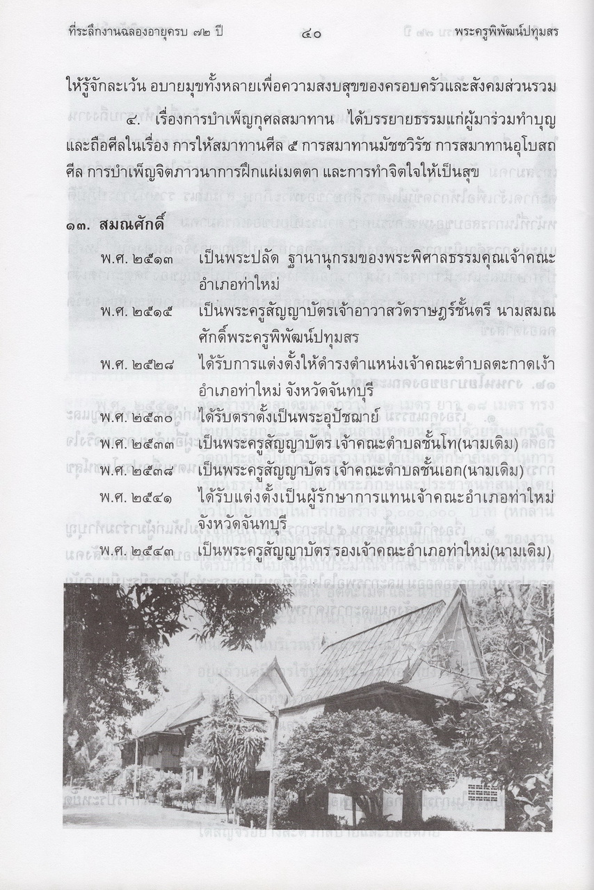 - ที่ระลึกงานฉลองอายุครบ 72 ปี พระครูพิพัฒน์ปทุมสร